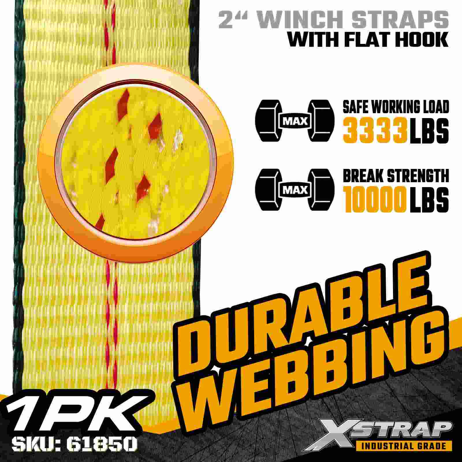 Curea de troliu standard Xstrap 61850 2" × 30ft este construită pentru fixarea fiabilă a încărcăturii, având un cârlig plat ranforsat și chingă din poliester de înaltă rezistență. Cu o limită de sarcină de lucru de 3.333 lbs și 10.000 lbs rezistență la rupere, oferă performanță de încărcare zilnică, țevi de transport, cherestea, transport zilnic aplicatii logistice.