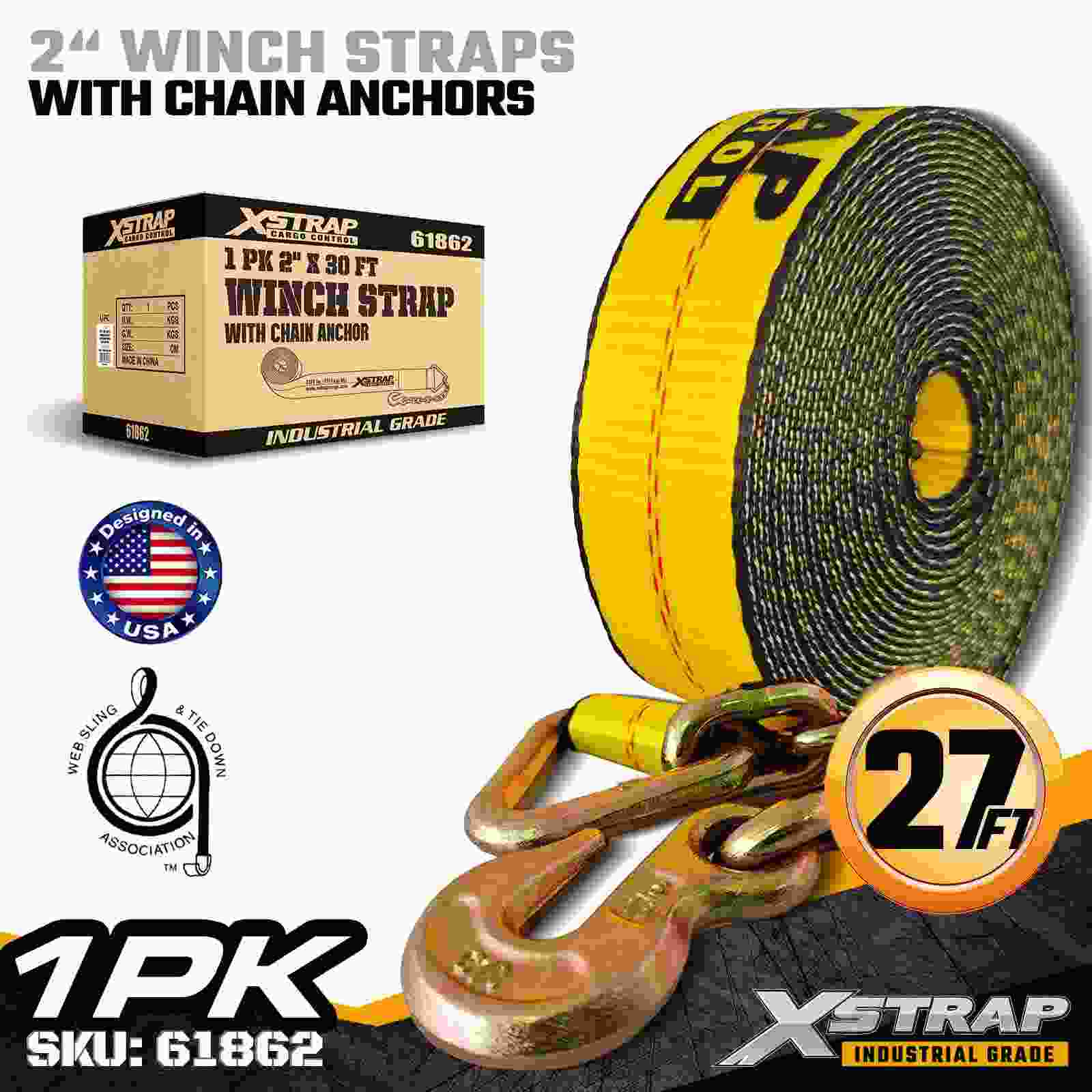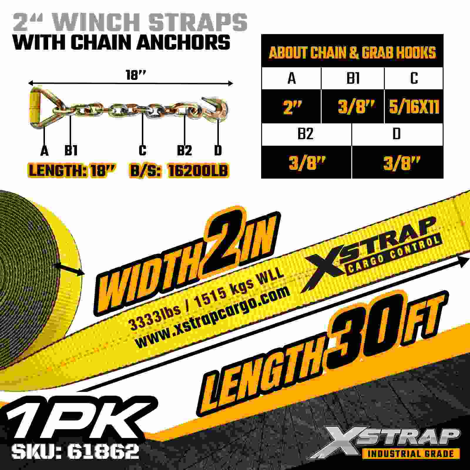 Cureaua standard de troliu Xstrap 61862 2" × 30ft este construită pentru fixarea fiabilă a încărcăturii, având ancore de lanț durabile și chingă din poliester de înaltă rezistență. Cu o sarcină limită de lucru de 3.333 lb și rezistența la rupere de 10.000 lbs, oferă performanțe de încredere pentru transportul zilnic de mărfuri, țevi de logistică și paleți aplicatii.