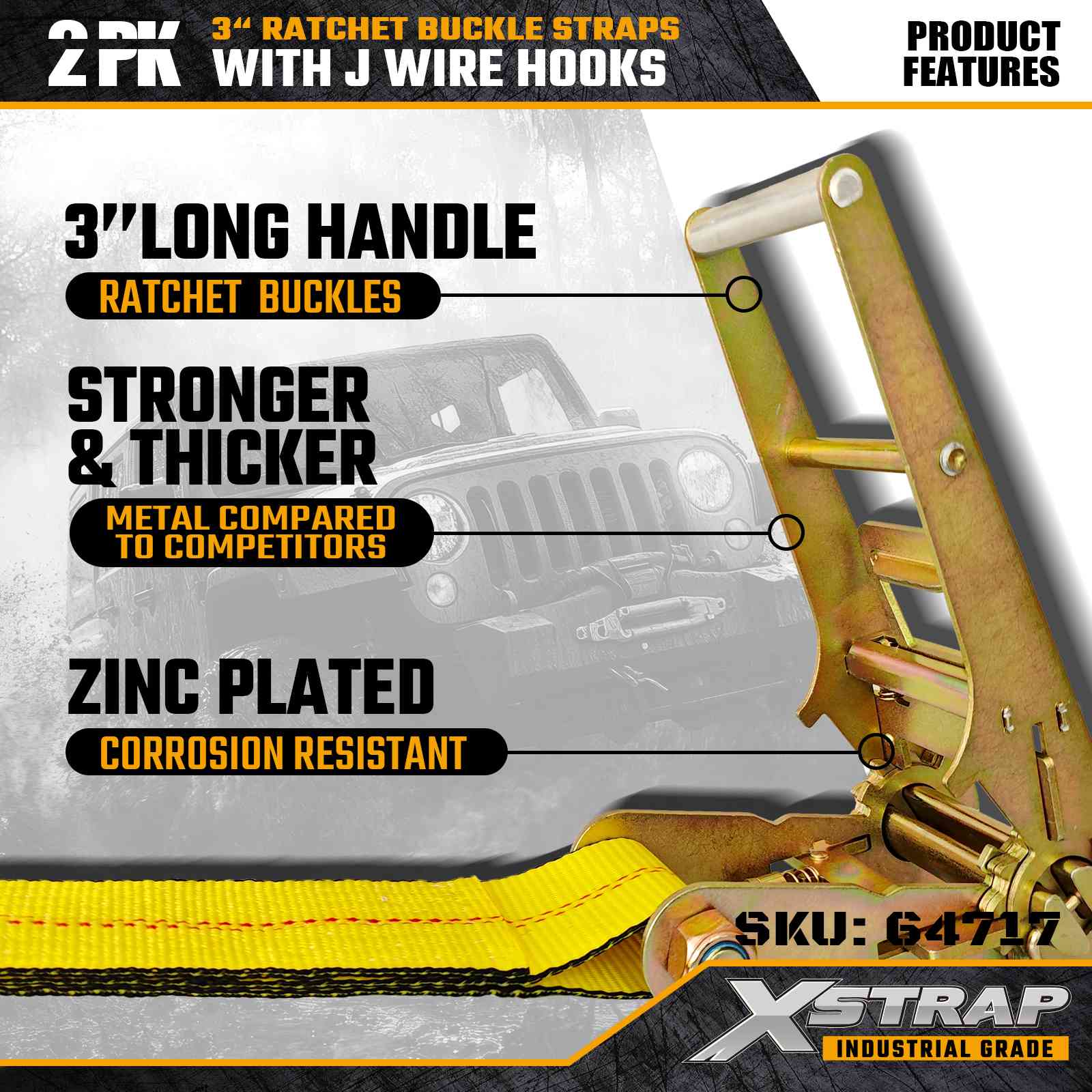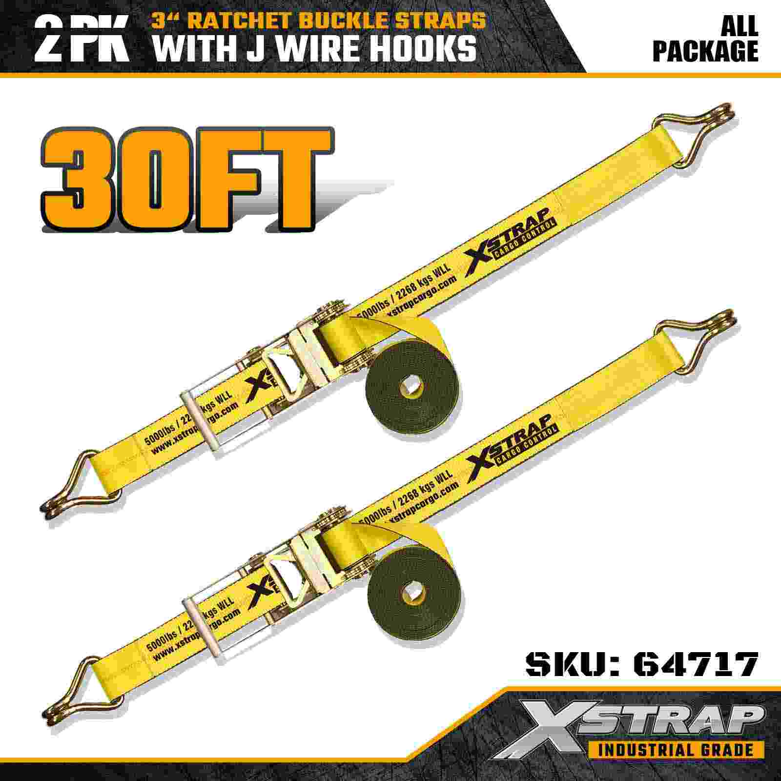 Curelele cu cataramă cu clichet Xstrap 64717 3" × 30ft (pachet de 2) sunt proiectate pentru asigurarea profesională a încărcăturii, având cârlige de sârmă întărite și un mecanism de clichet rezistent. Cu o sarcină limită de lucru de 5.000 lbs și 15.000 lbs operațiuni de transport.