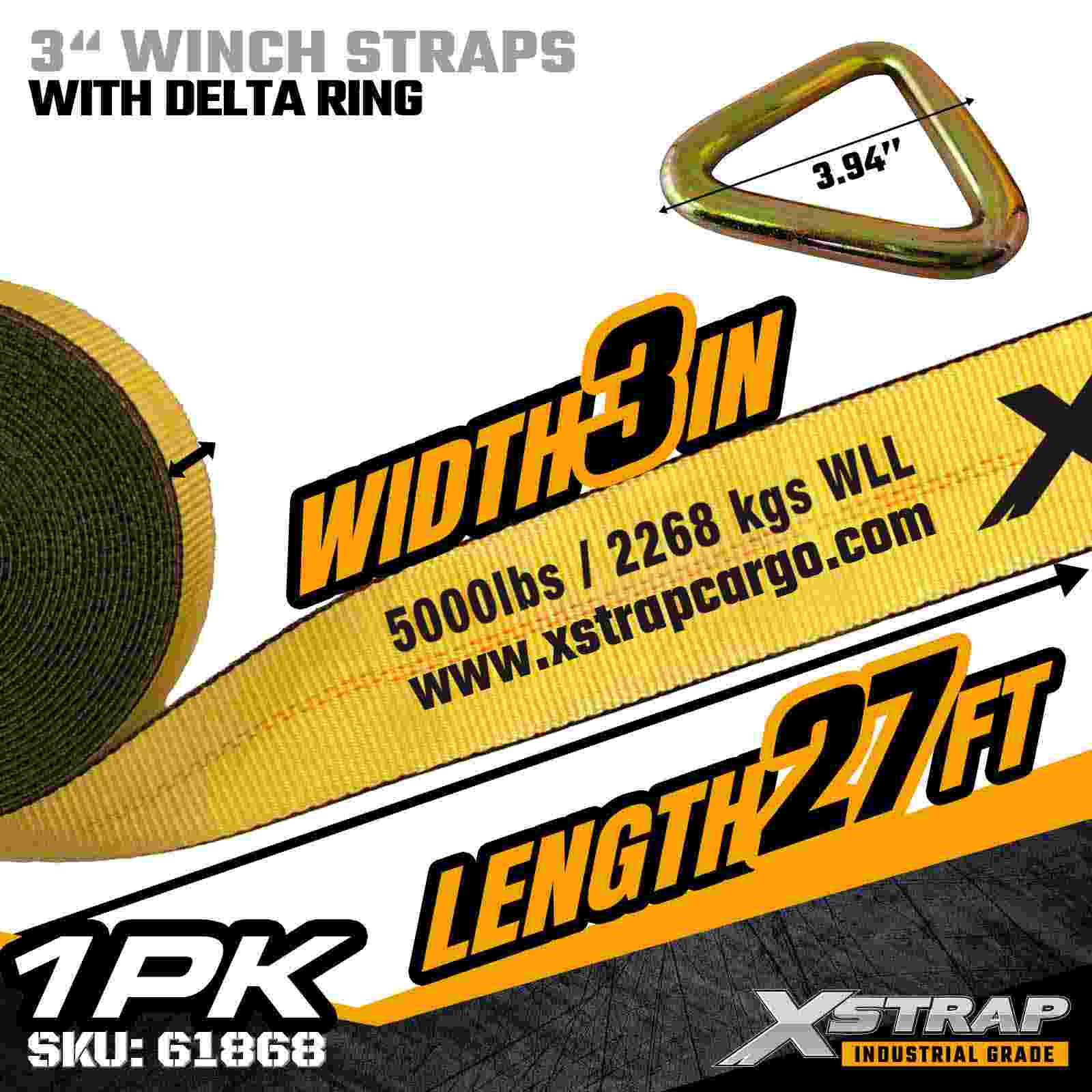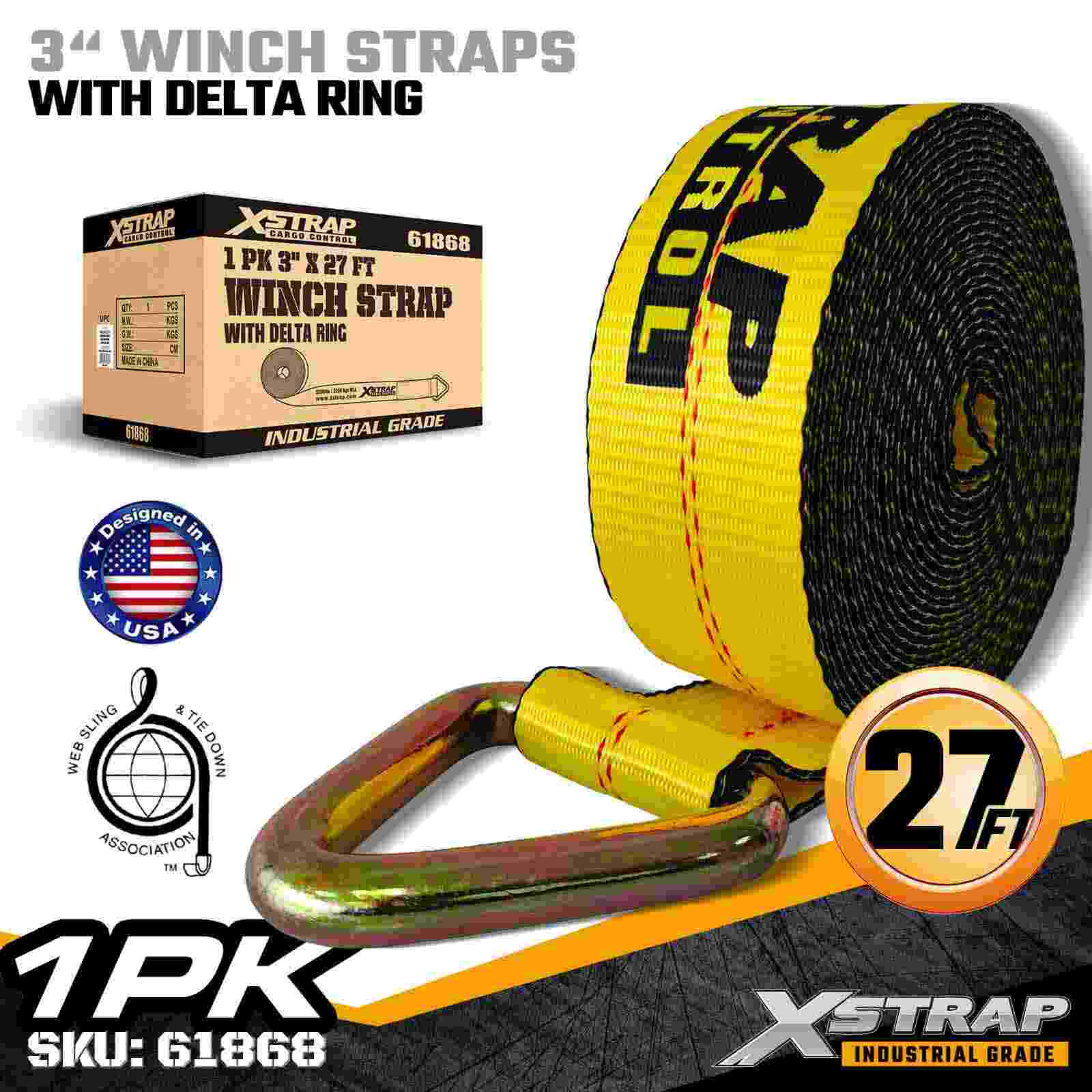 Curea de troliu standard de 3" × 27ft cu inel Delta
