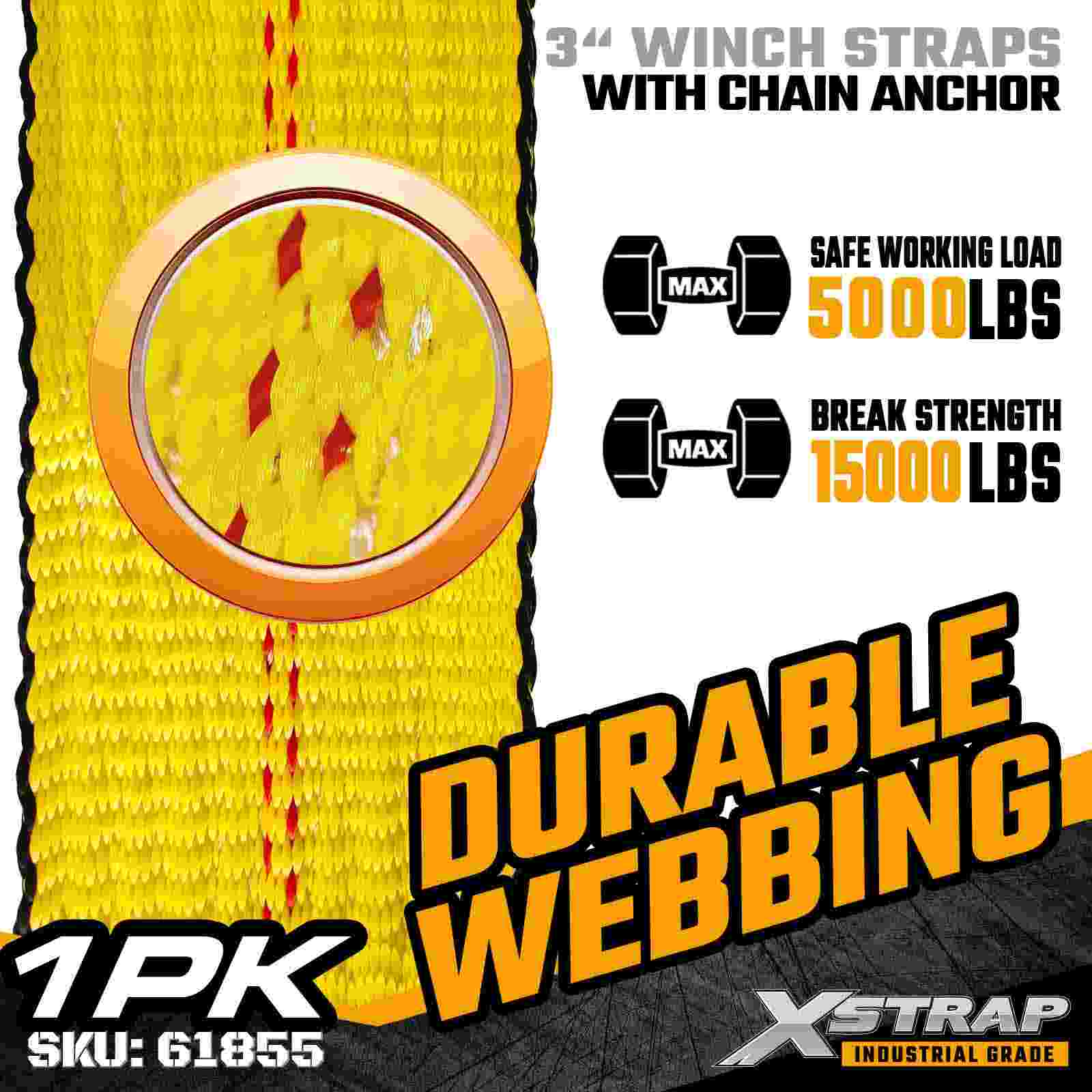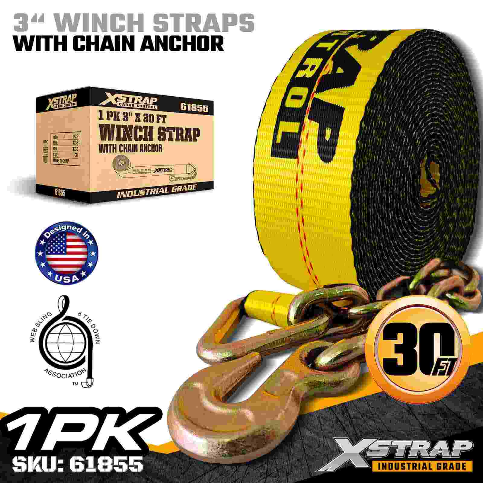 Cureaua de troliu standard Xstrap 61855 3" × 30ft este o curea de fixare a încărcăturii industriale de mare rezistență, concepută pentru remorci cu platformă și mărfuri supradimensionate. Echipată cu o ancoră de lanț forjată și o chingă de poliester foarte lată de 3 inchi, această curea de troliu de 3 inchi oferă o limită de lucru de 5.000,000 lb. Rezistență Lungimea extinsă de 30 de metri îl face ideal pentru asigurarea încărcăturilor mai largi, mai înalte sau cu formă neregulată care necesită o rază și stabilitate suplimentare.