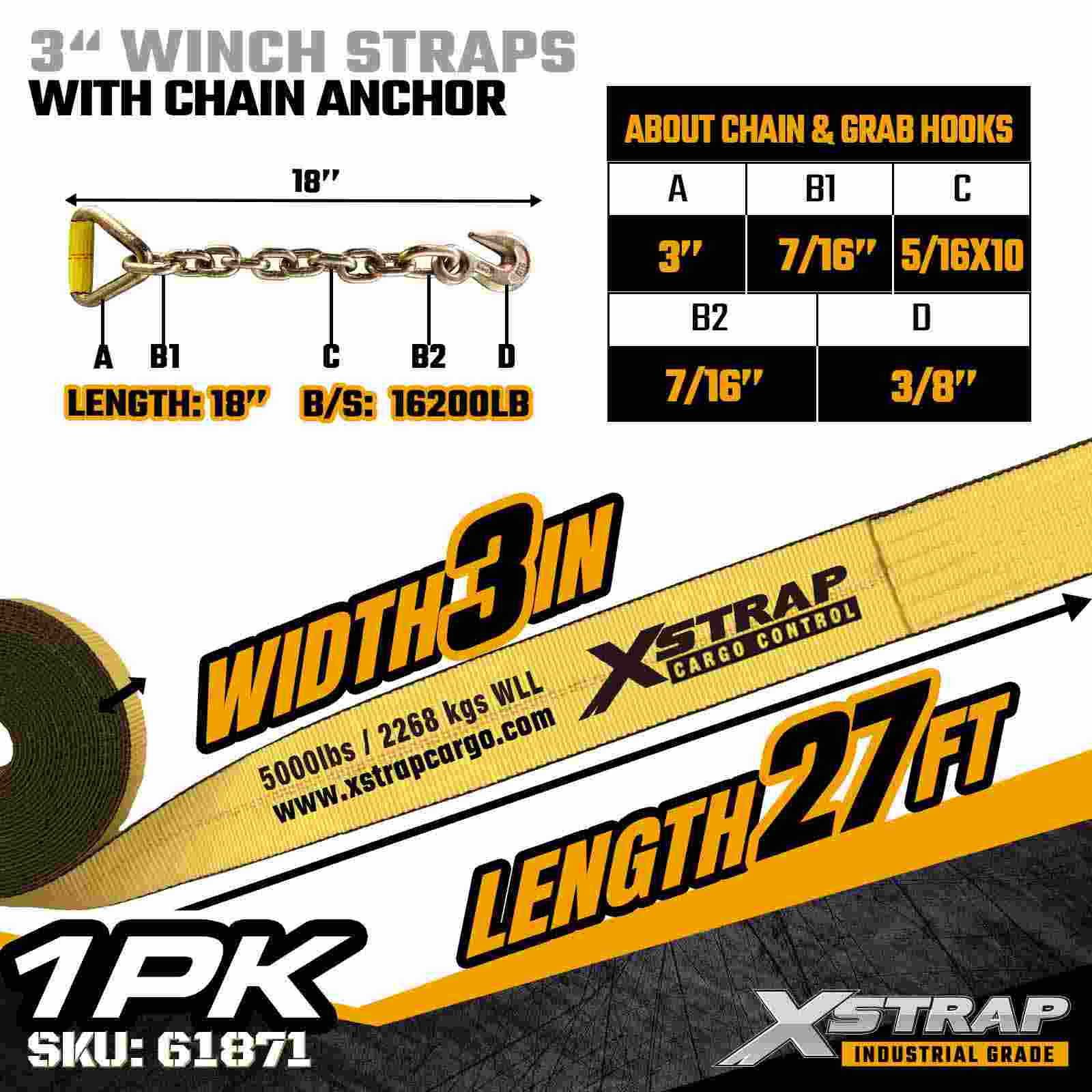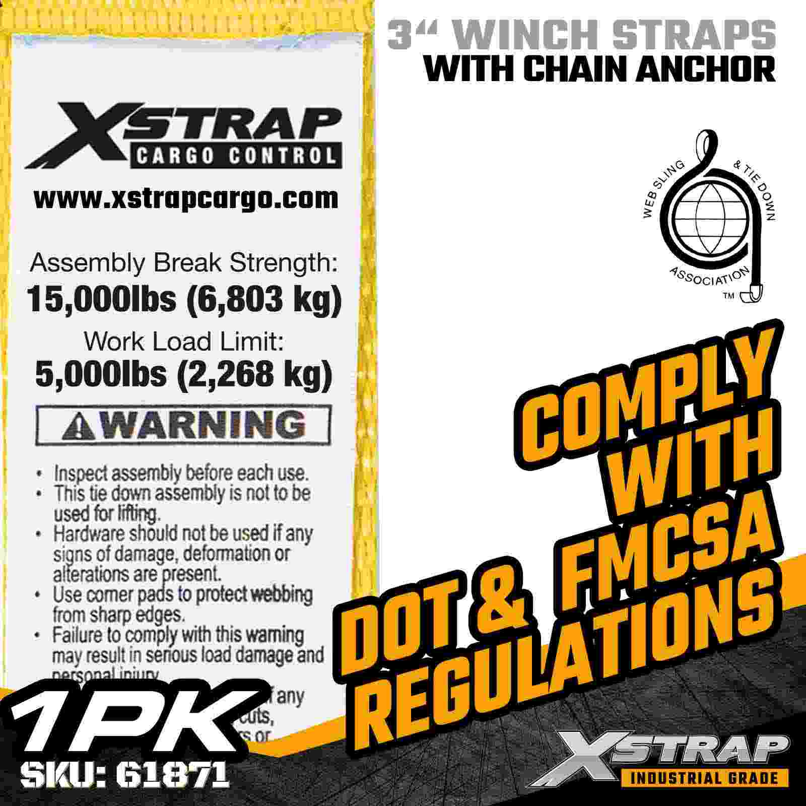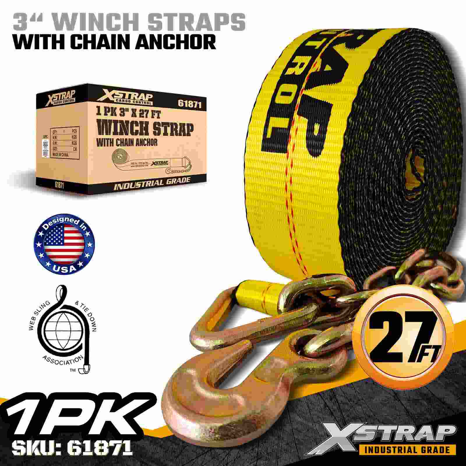 Cureaua de troliu standard Xstrap 61871 3" × 27ft este proiectată pentru asigurarea încărcăturii grele pe remorci cu platformă. Dispunând de o ancoră de lanț forjată și o chingă de poliester foarte lată de 3 inchi, această curea de troliu de 3 inchi oferă o sarcină de lucru de 5.000 lbs și este proiectată pentru o sarcină de lucru de 5.000 lbs. pentru aplicații industriale solicitante unde sunt necesare rezistență și stabilitate maxime.