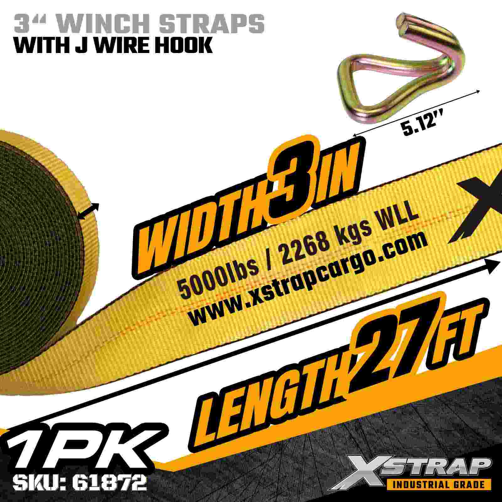 Curea de troliu standard de 3" × 27ft cu cârlig de sârmă