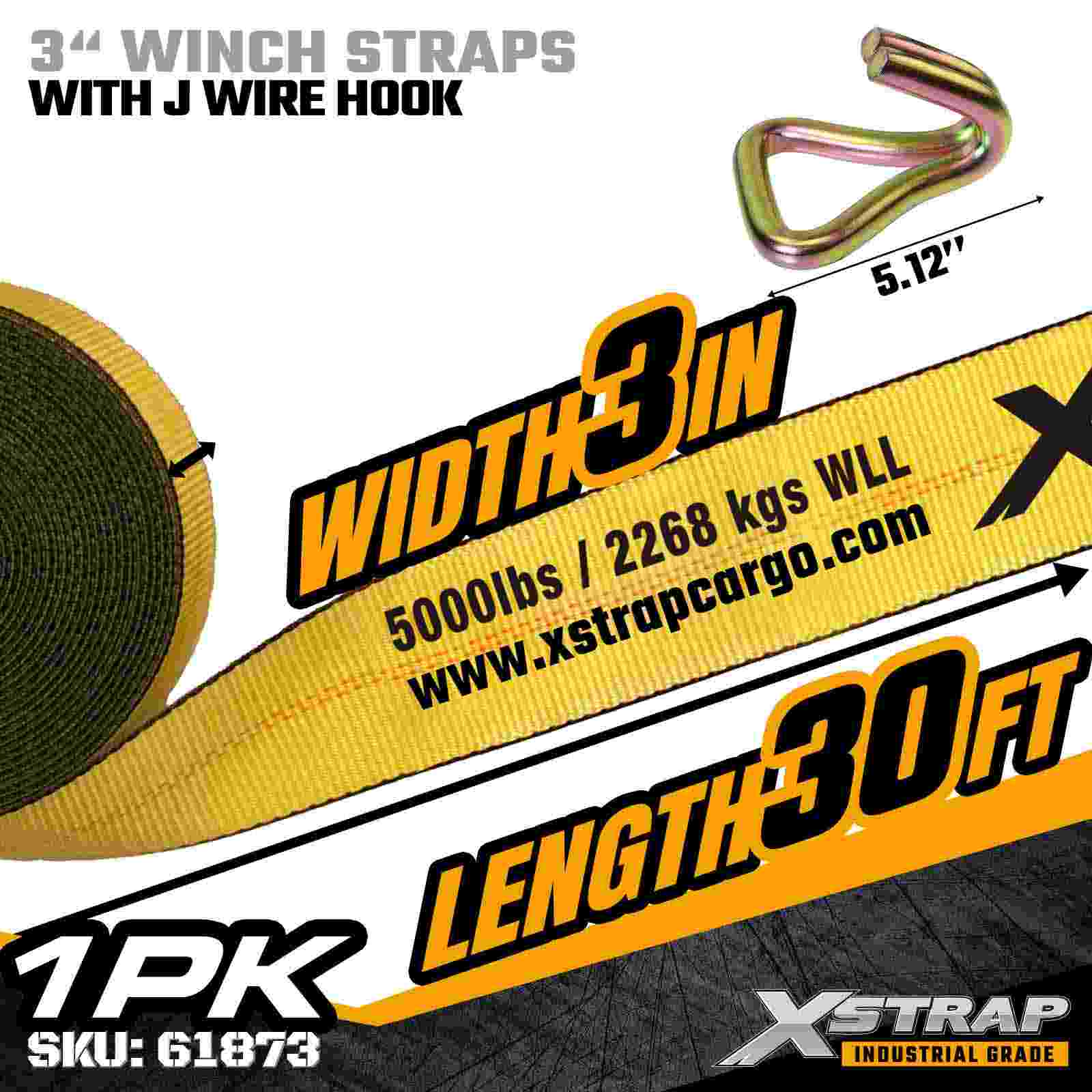 Curea de troliu standard de 3" × 30ft cu cârlig de sârmă
