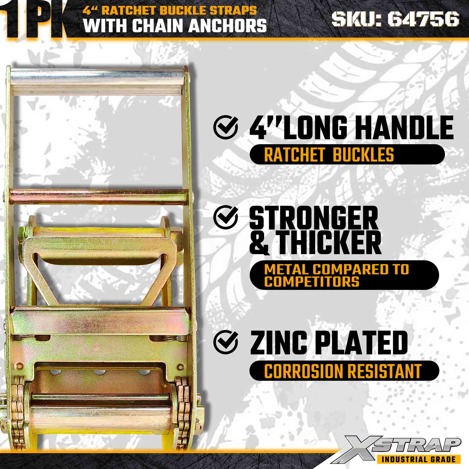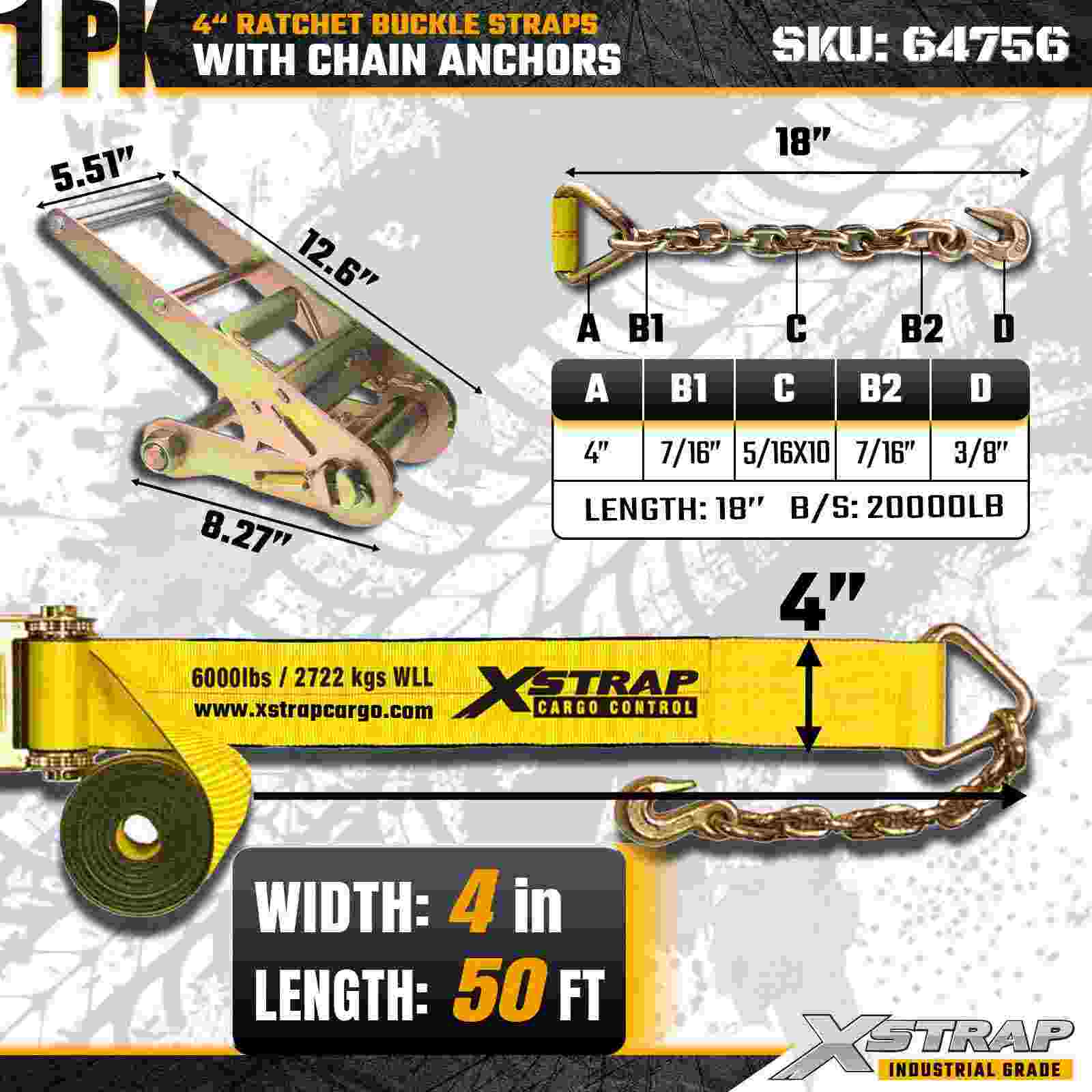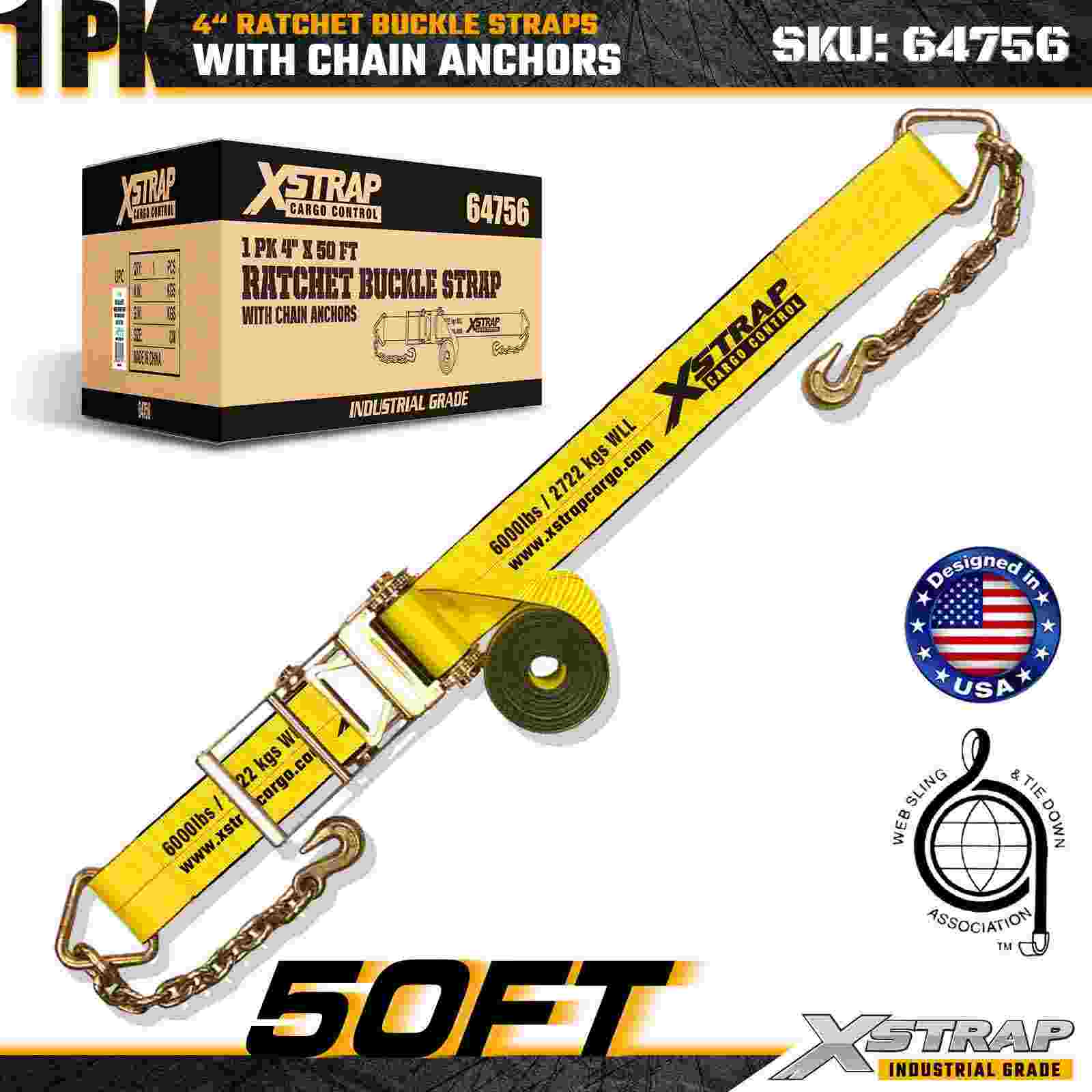 Xstrap 64756 Cureaua cu cataramă cu clichet de 4" × 50 ft cu ancore de lanț Rezistență la rupere 18.000 lbs (1 pachet)