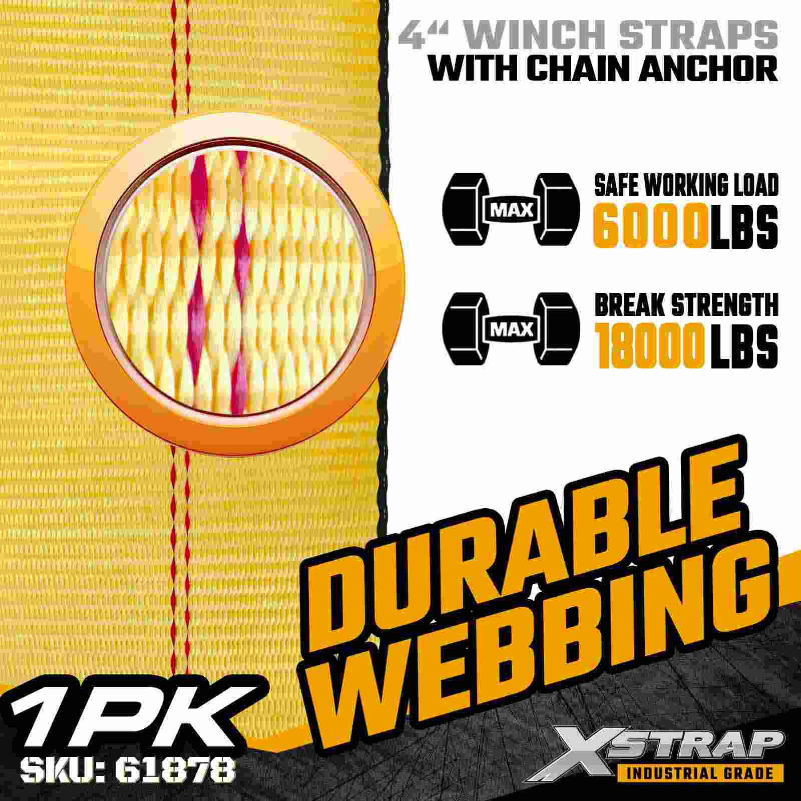 Cureaua de troliu standard Xstrap 61878 4" × 27ft este o curea de fixare a încărcăturii industriale de mare rezistență, concepută pentru remorci cu platformă și condiții extreme de încărcare. Dispunând de o ancoră de lanț forjată și o chingă de poliester ultra-largă de 4 inchi, această curea de troliu de 4 inchi oferă o limită de lucru de 6.000 și 1800 lbs. Rezistență la rupere Designul ancorei cu lanț oferă o aderență și o durabilitate de neegalat, făcându-l ideal pentru asigurarea oțelului, a mașinilor și a altor mărfuri de înaltă tensiune.