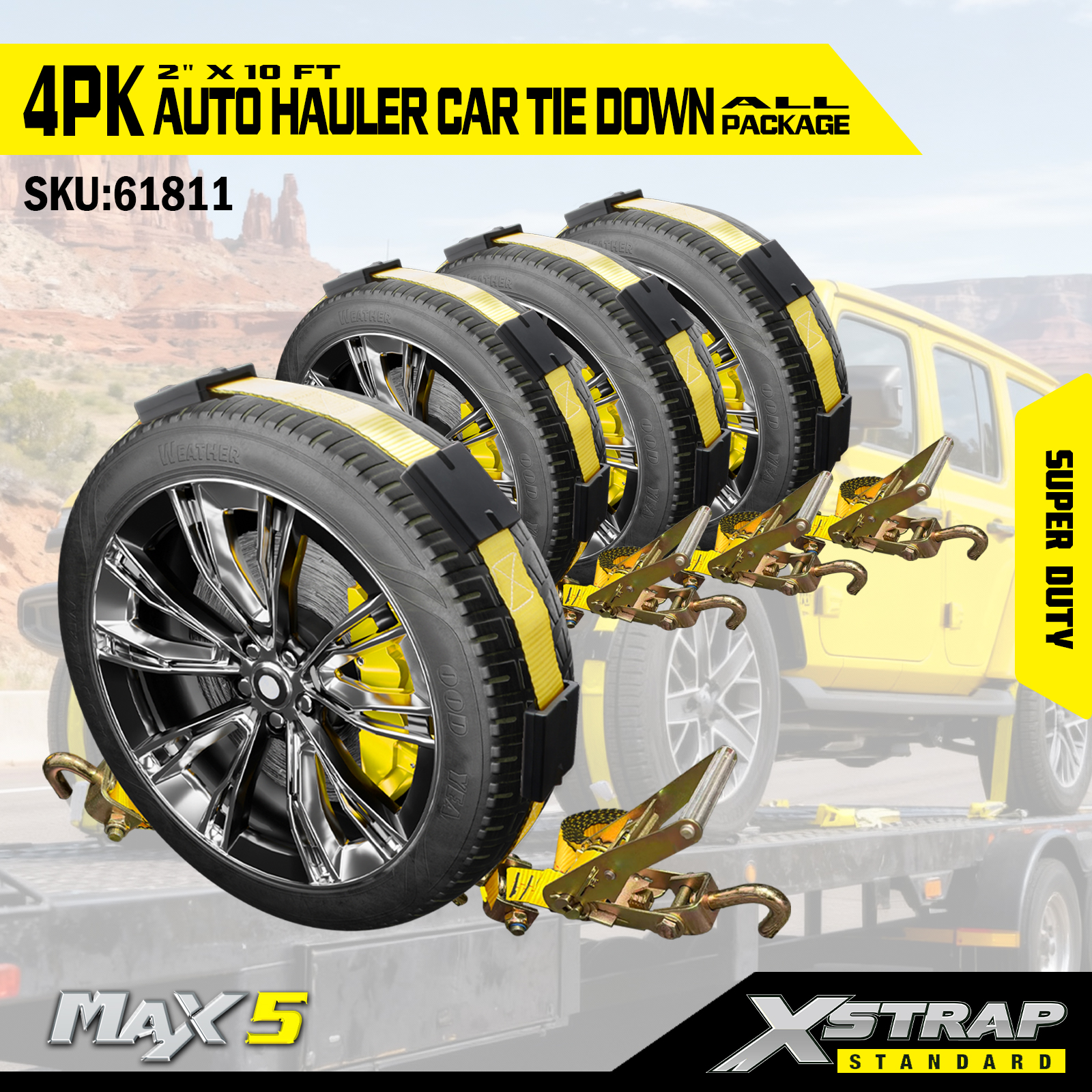 Curele de transport auto Xstrap Rezistenta la rupere 6.600 lbs - Curele de fixare a anvelopelor pentru remorci, fixare peste roata cu crampoane din cauciuc pentru SUV, camion, ATV, UTV