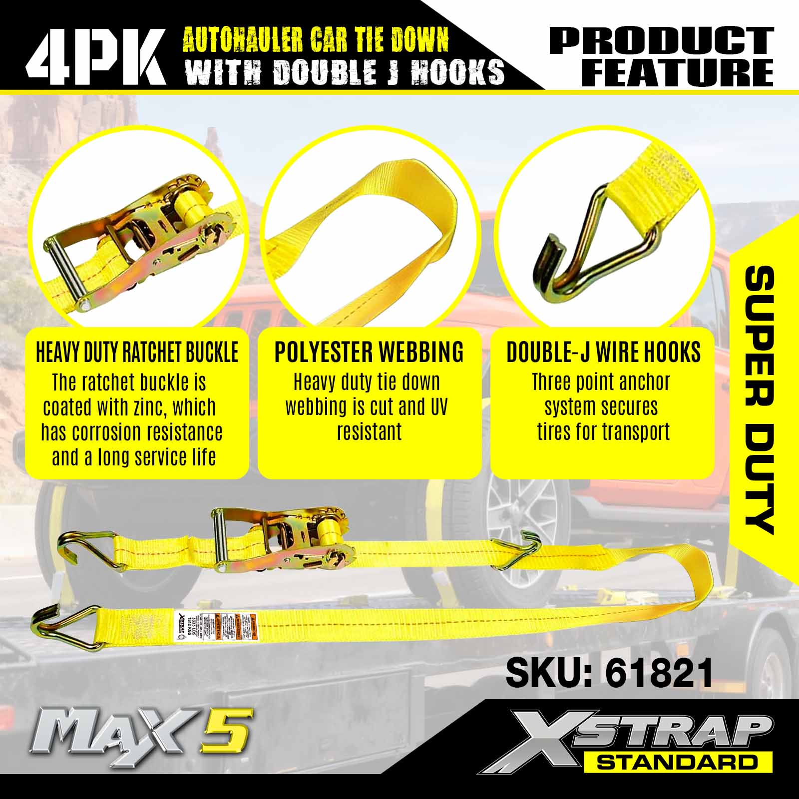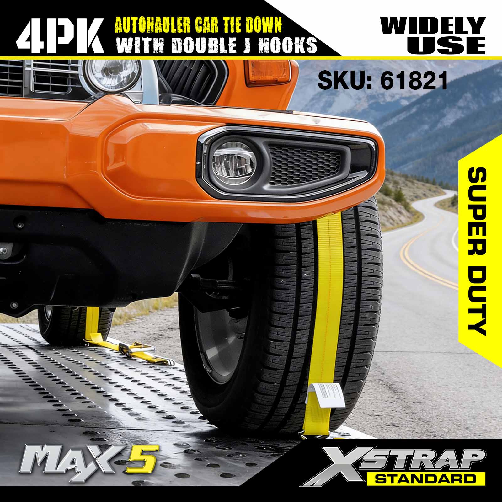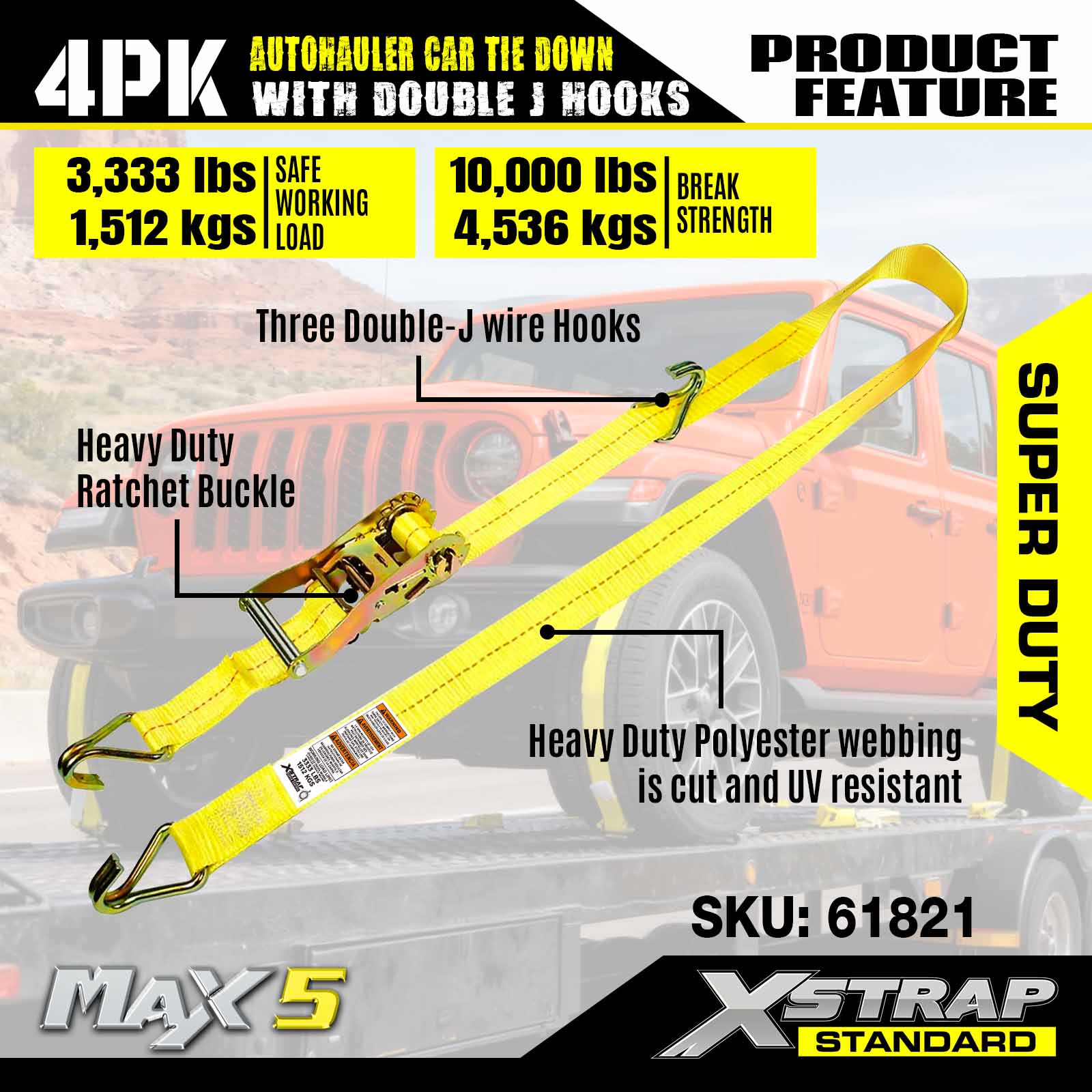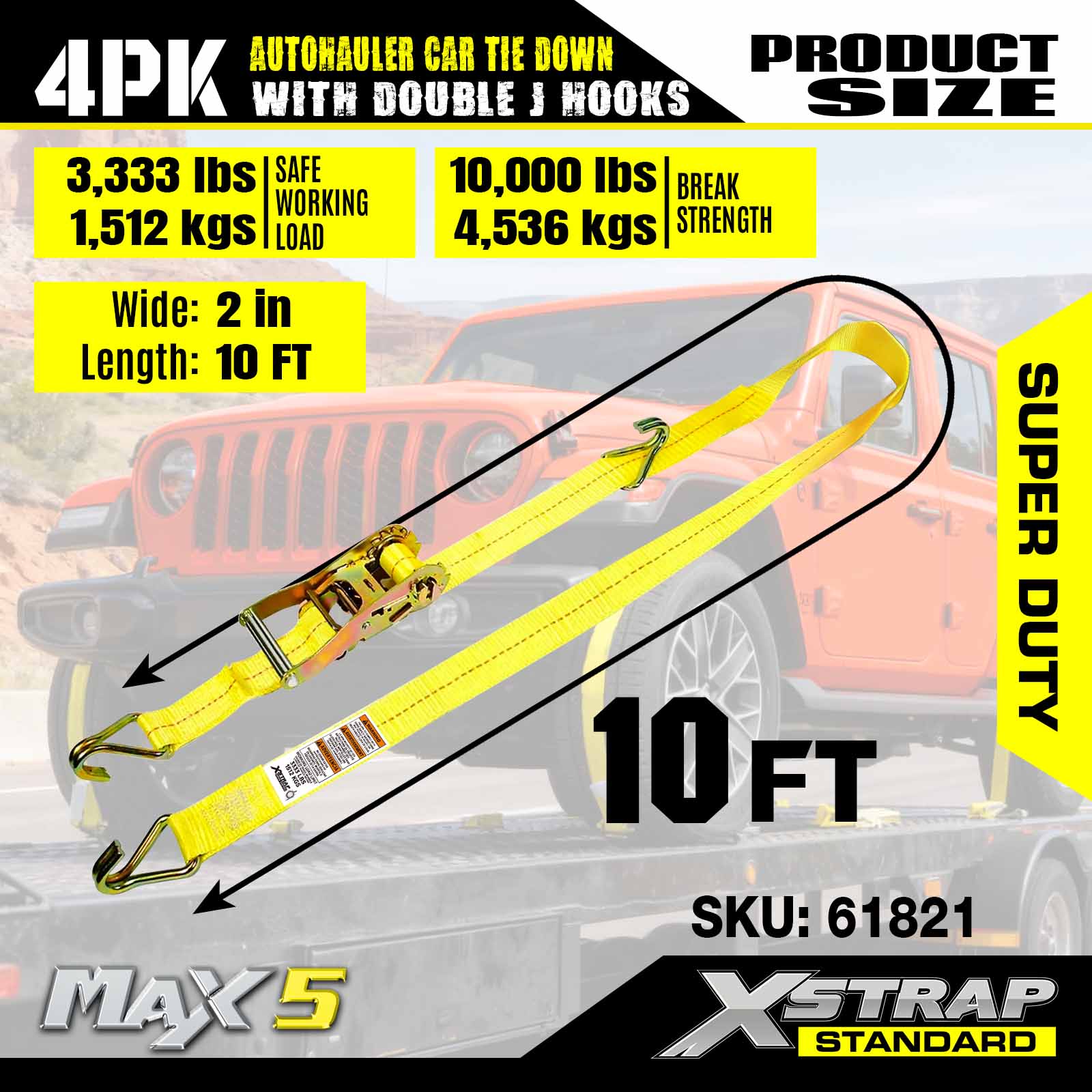 Curele de transport auto Xstrap Rezistenta la rupere de 10.000 lbs - Curele de fixare a anvelopelor pentru remorci, prindere peste roata cu crampoane din cauciuc pentru SUV, camion, ATV, UTV