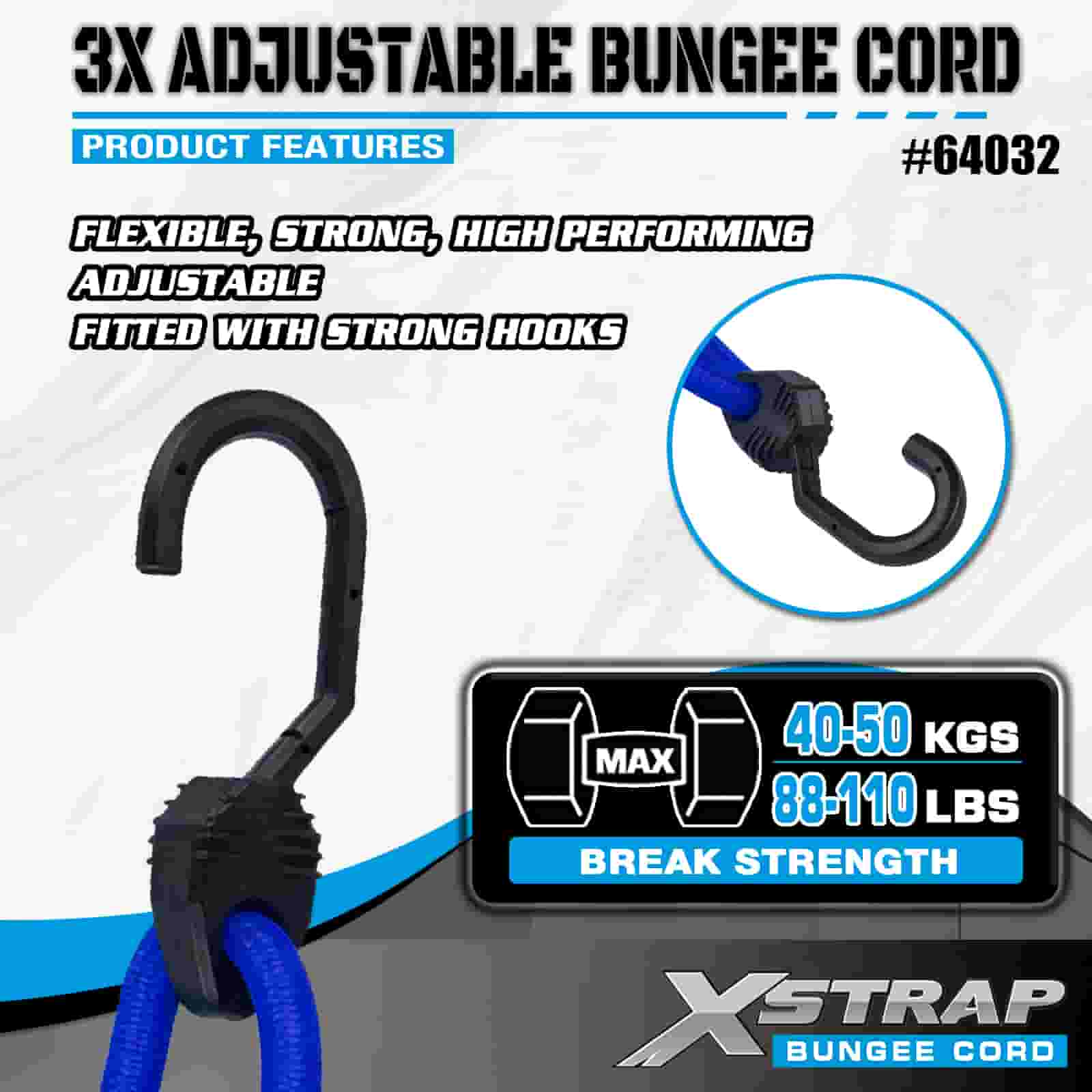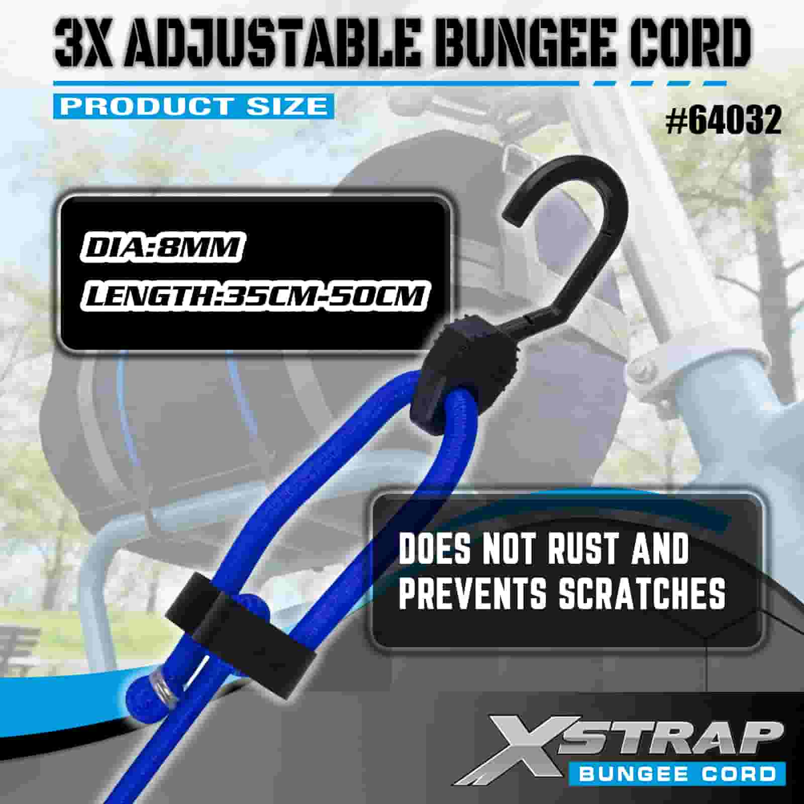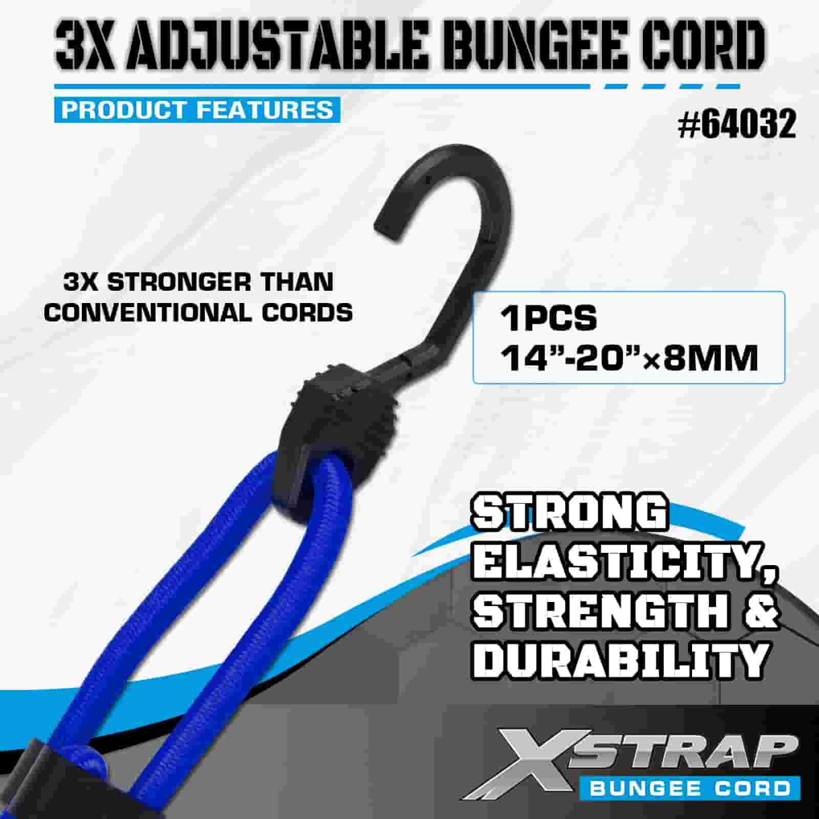 Corzi elastice ajustabile Xstrap 3X 8 mm x 14”-20”, 132-165 lbs rezistență la rupere cu cârlige puternice pentru controlul încărcăturii .
