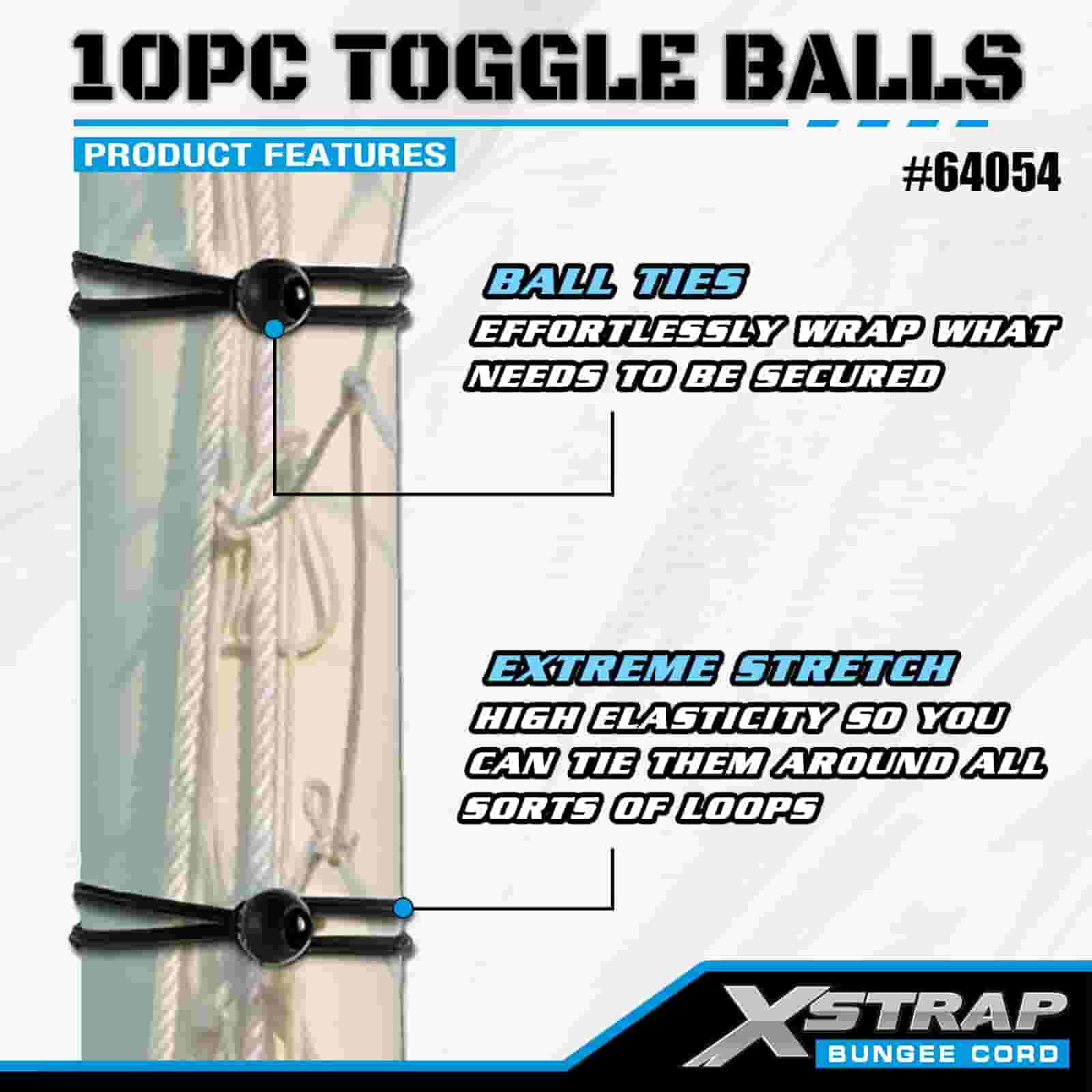 Xstrap 10PK bile de comutare 4mm x 2”-12”, bile bungee de diferite dimensiuni pentru controlul încărcăturii.
