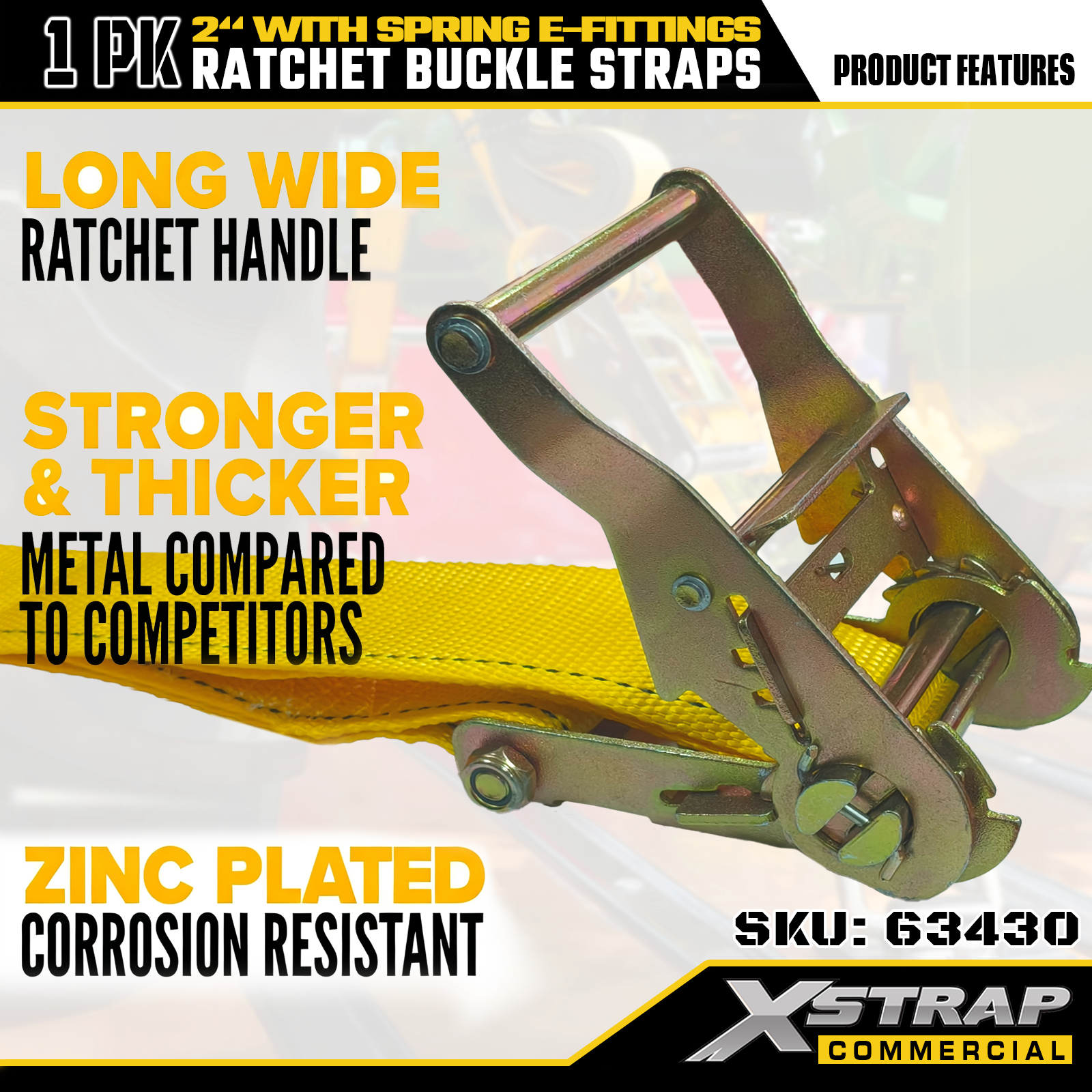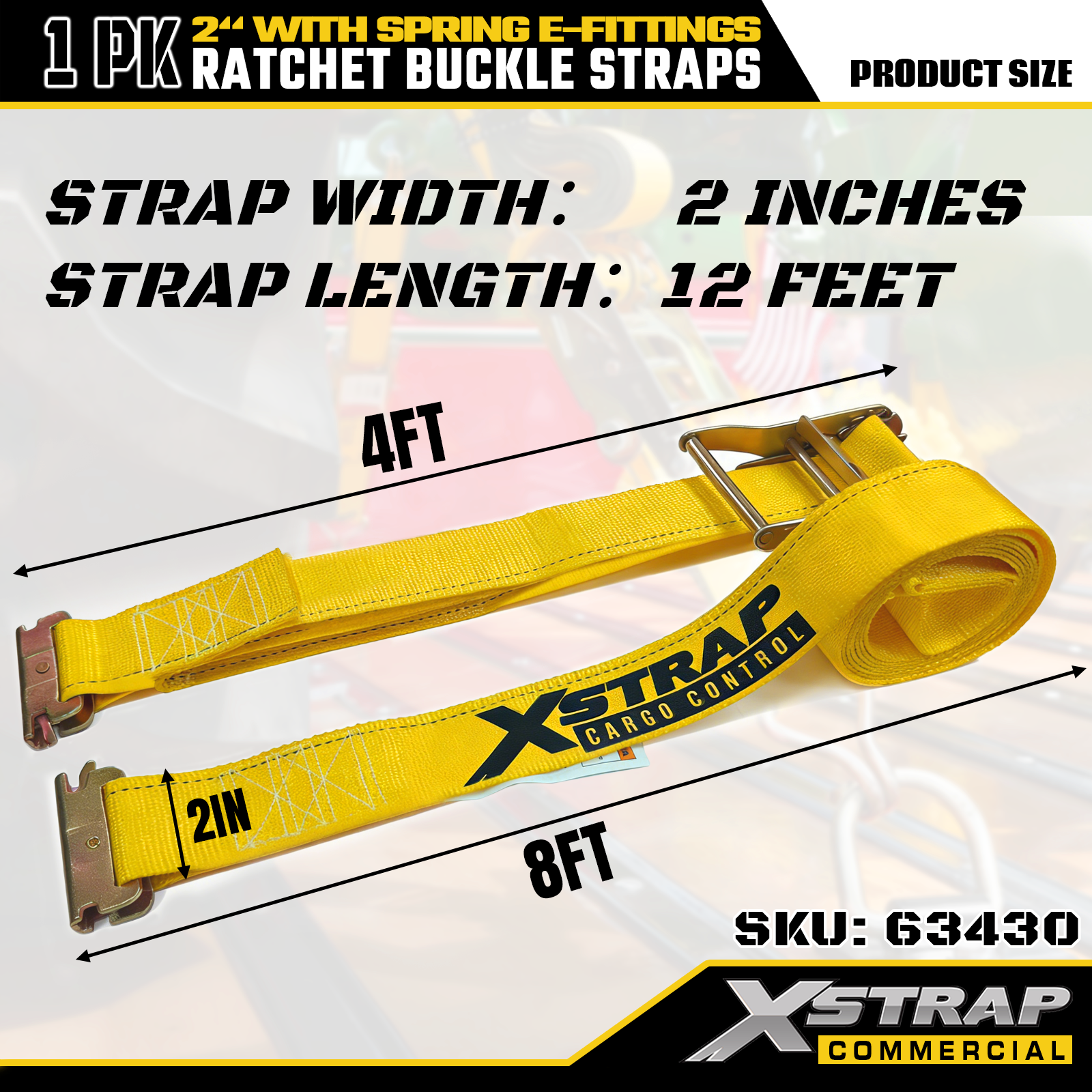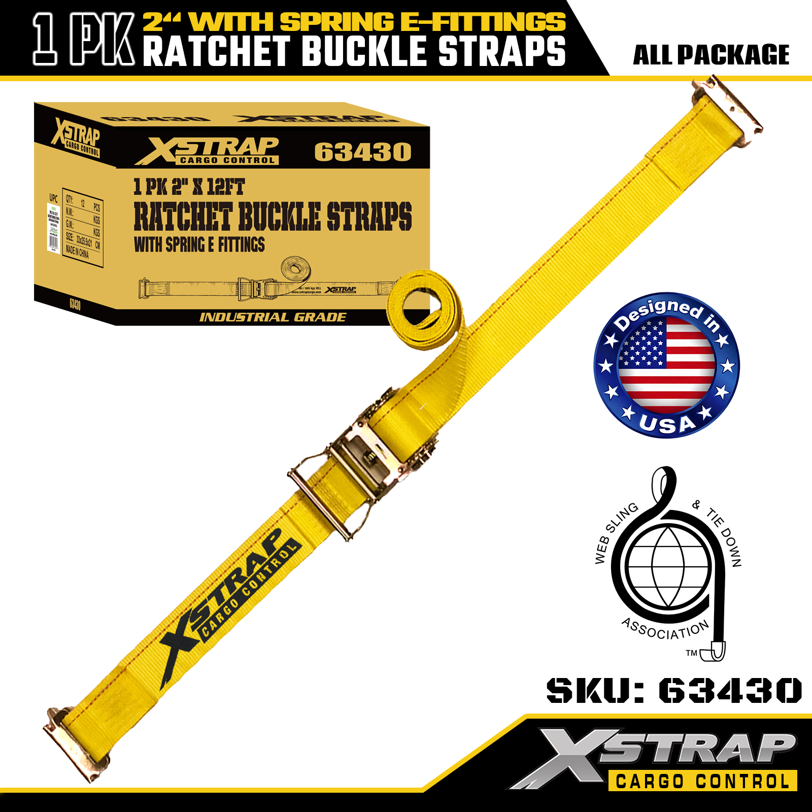 Xstrap 1 pachet de curele de prindere cu clichet din poliester cu accesorii cu arc E, curele de fixare pentru încărcătură de 2" x 12 pi, capacitate de 4401 lbs (1467lbs) pentru camioane, mașini de tuns iarbă, ATV-uri