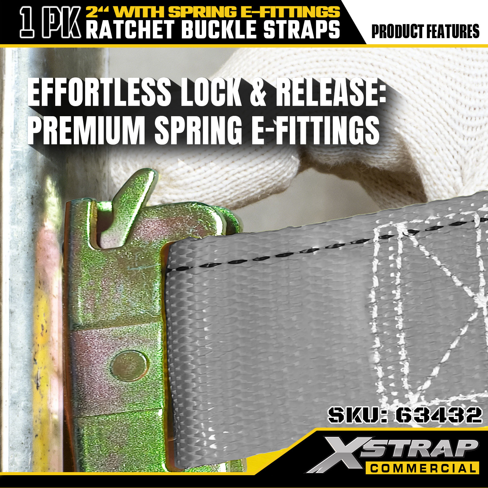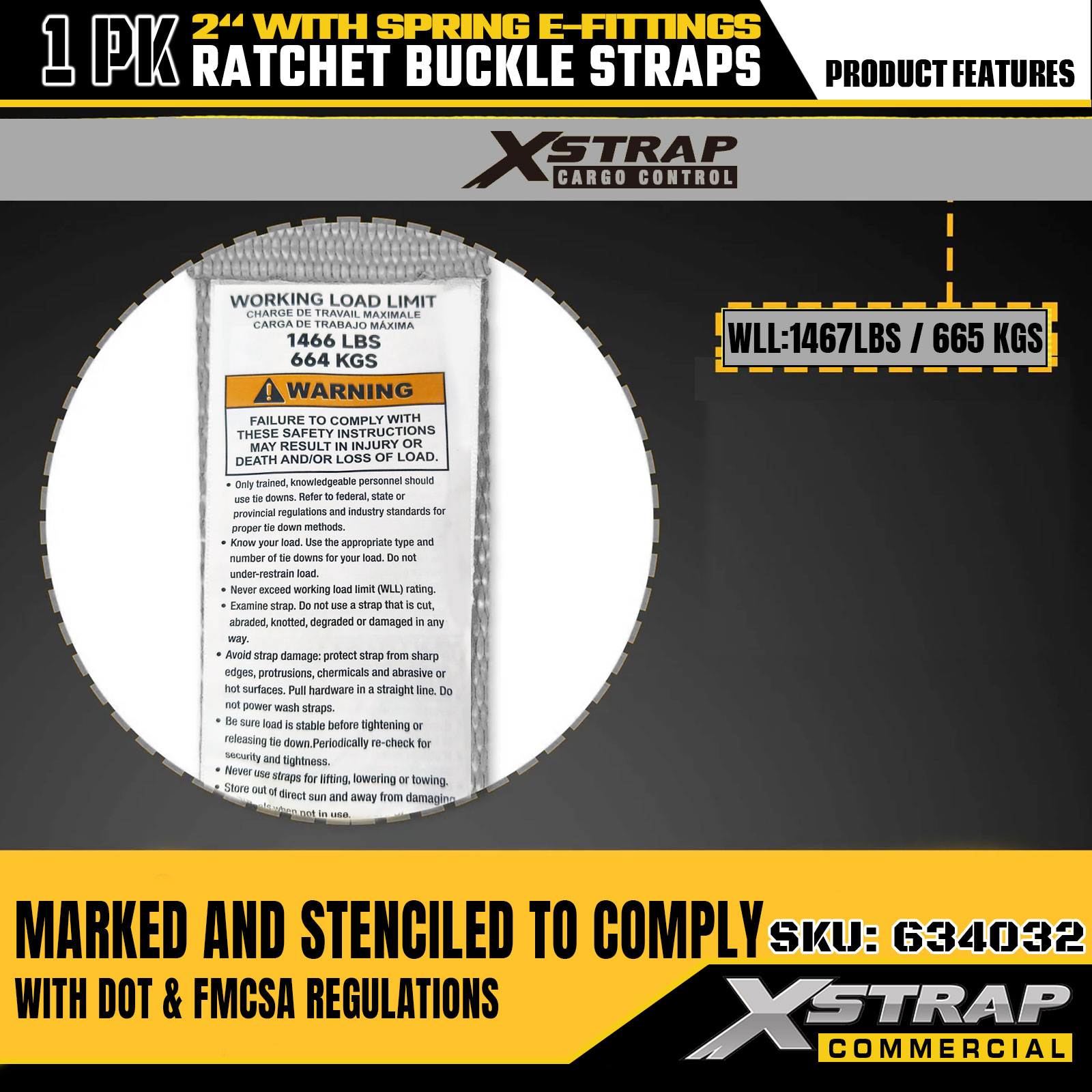 Xstrap 1 pachet de curele de fixare cu clichet, curele de fixare a încărcăturii din poliester de 2" x 16 pi, sarcină de lucru sigură de 1467 lbs și rezistență la rupere de 4401 lbs, cu armături electrice pentru camioane, mașini de tuns iarbă, ATV-uri