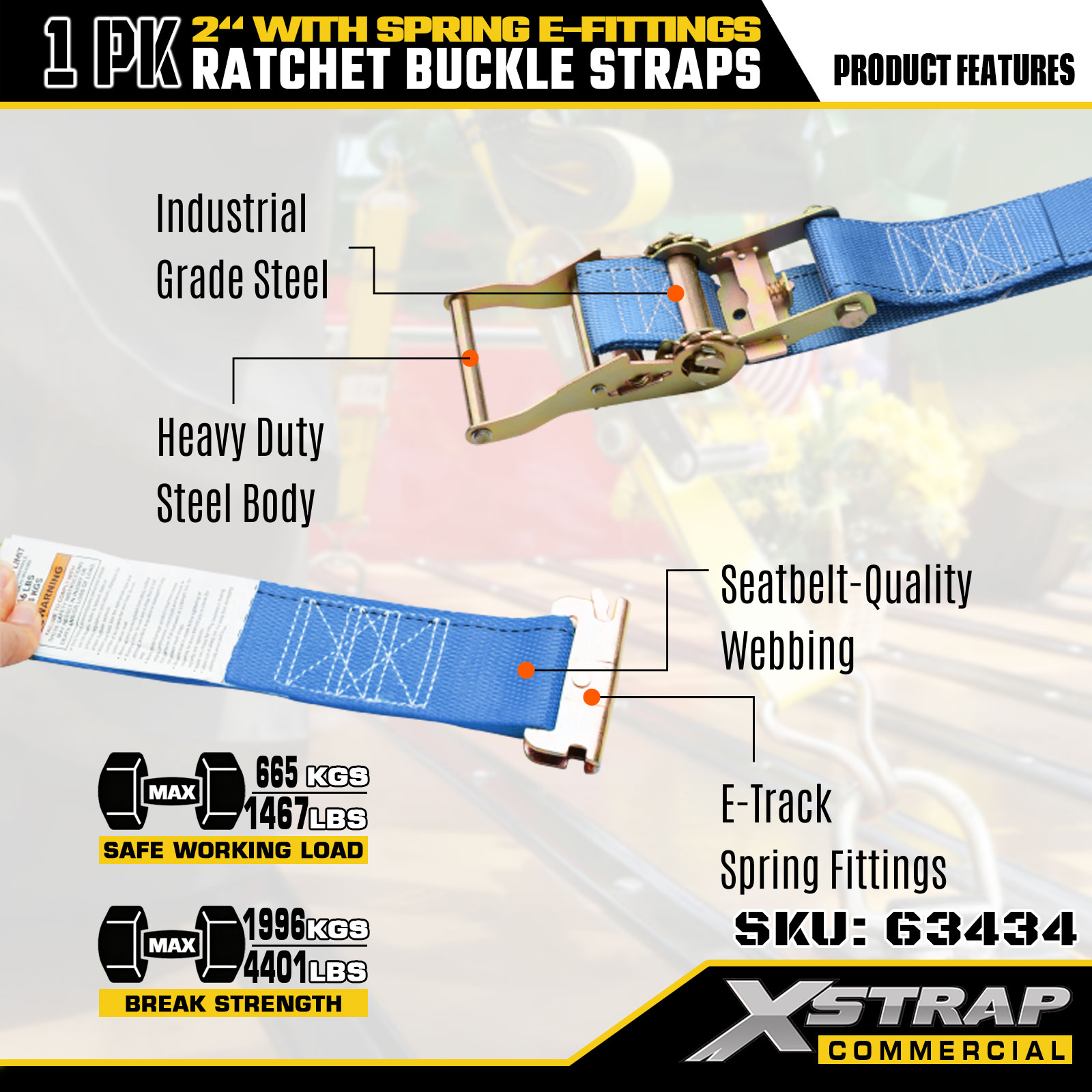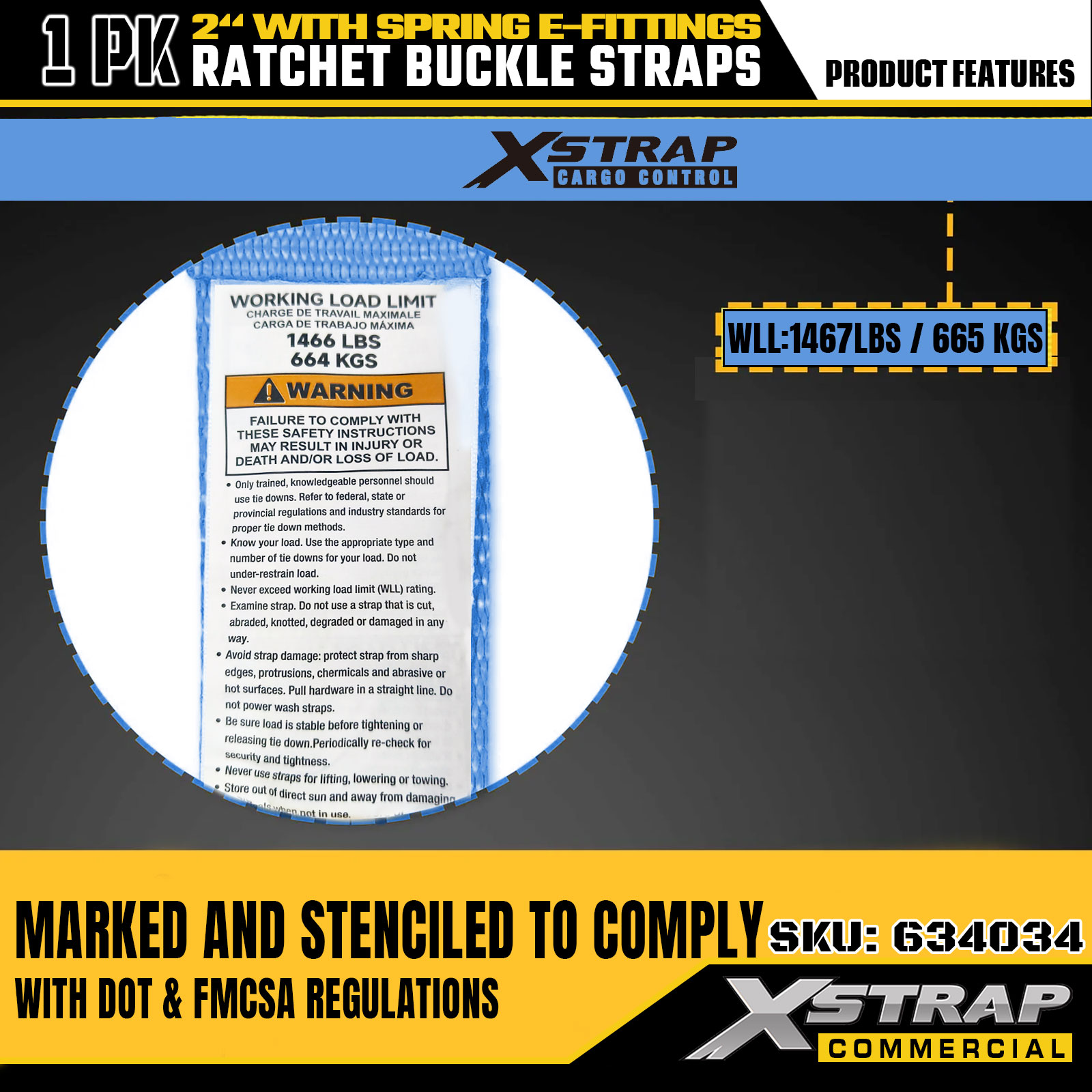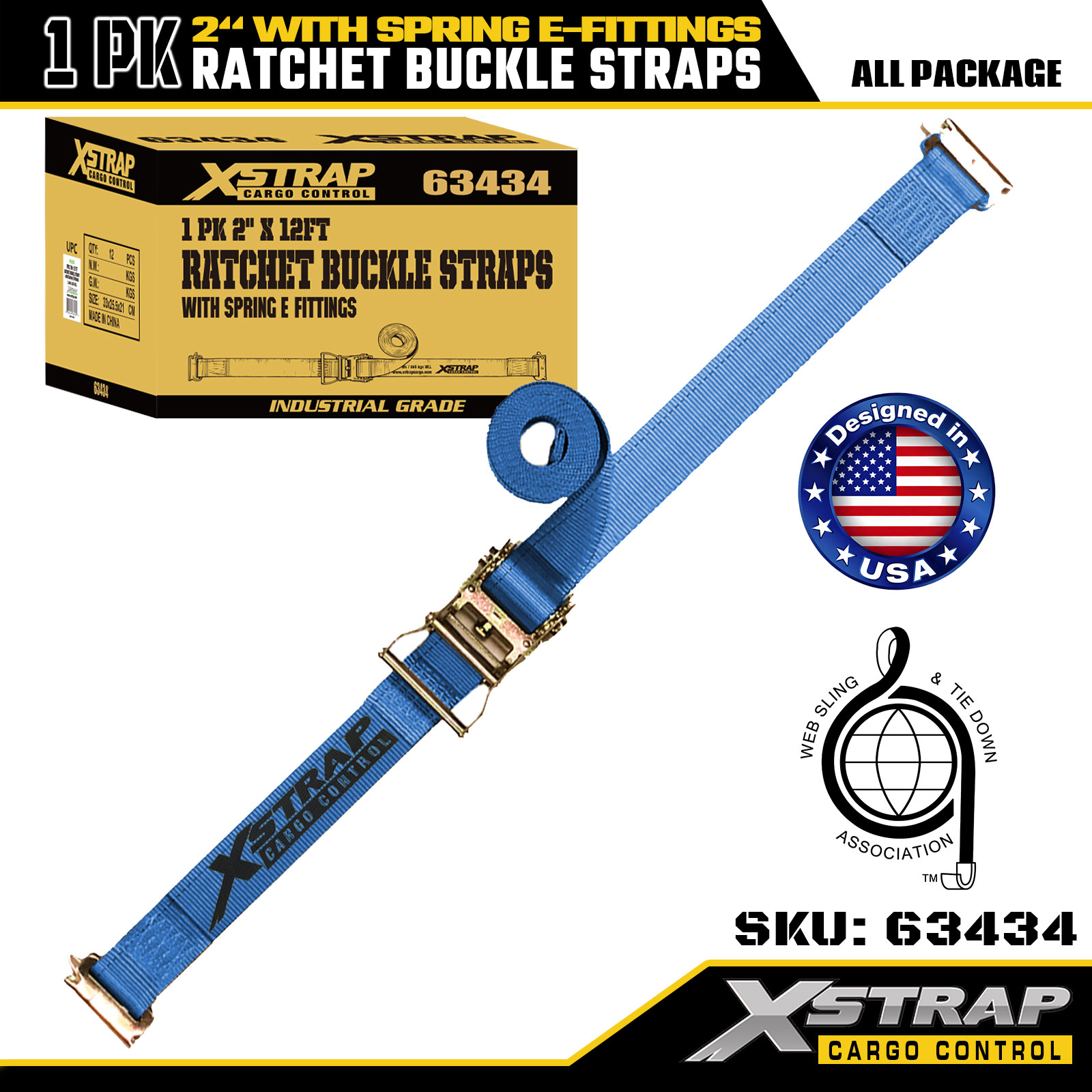Xstrap 1 pachet de curele de fixare cu clichet, curele de fixare a încărcăturii din poliester de 2" x 20 pi, sarcină de lucru sigură de 1467 lbs și rezistență la rupere de 4401 lbs, cu armături electrice pentru camioane, mașini de tuns iarbă, ATV-uri