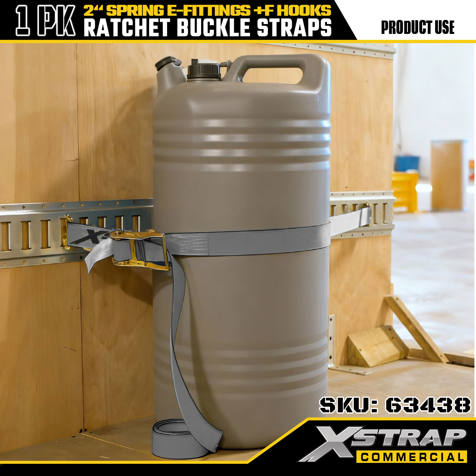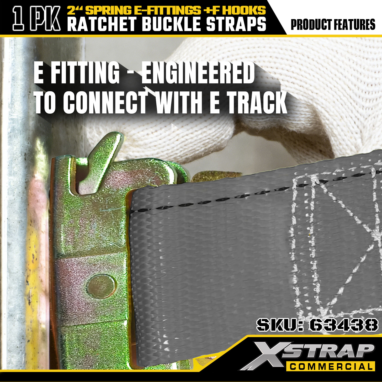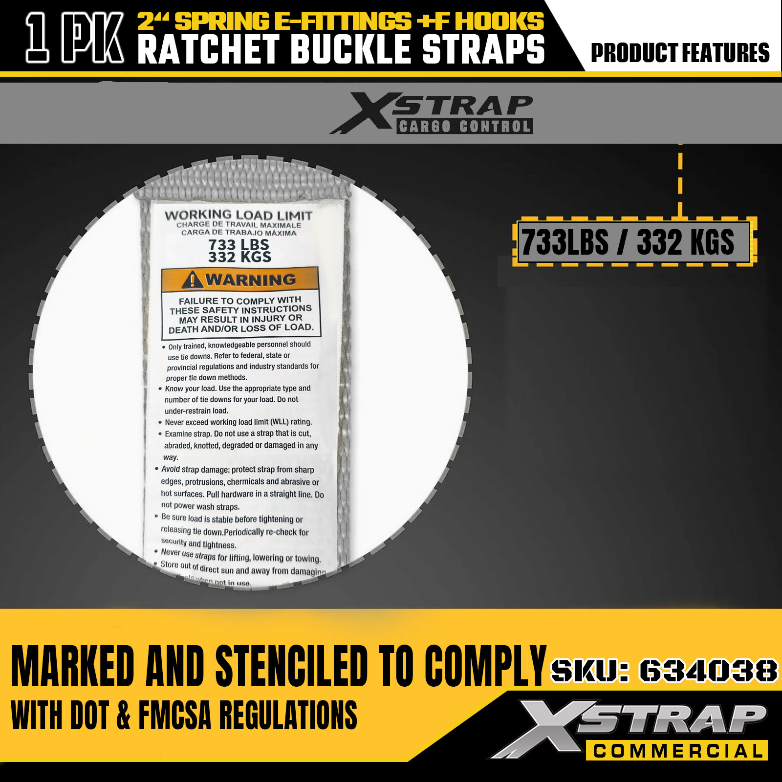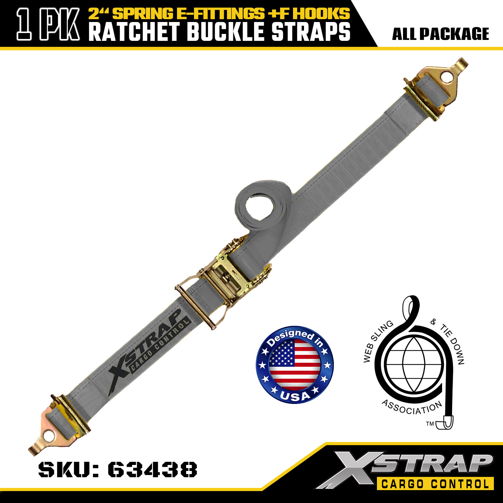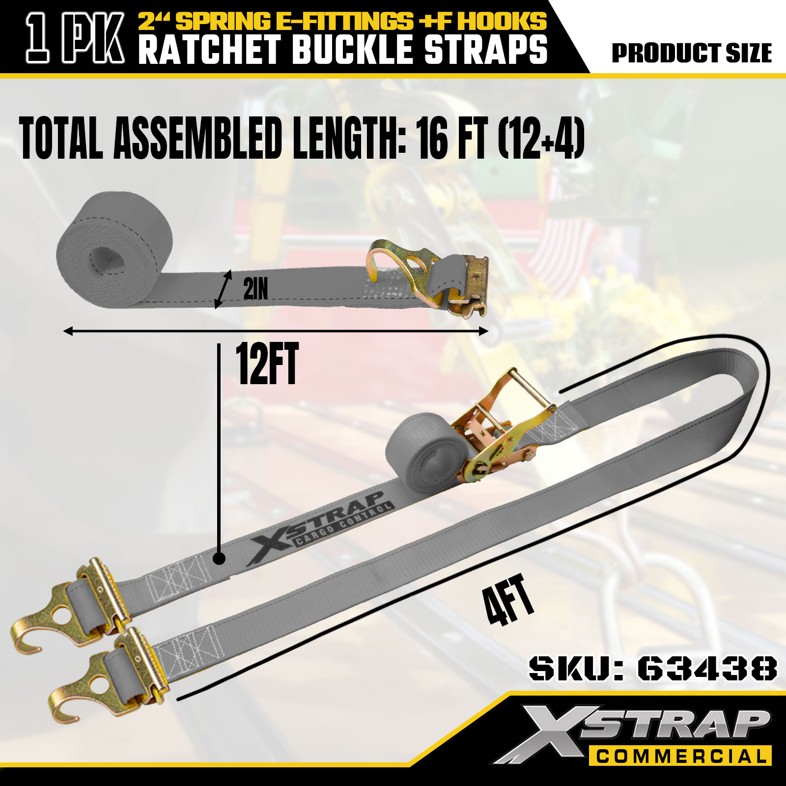 Xstrap 1 pachet de curele de fixare cu clichet 2" x 16 pi poliester cu accesorii E-Arcuri și cârlige F, 733 lbs SWL și 332 lbs rezistență la rupere pentru camion, mutare, transport general de marfă