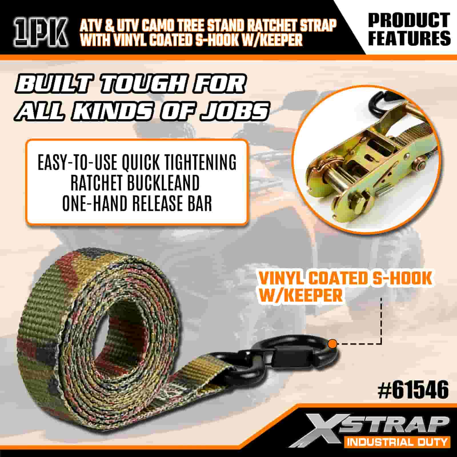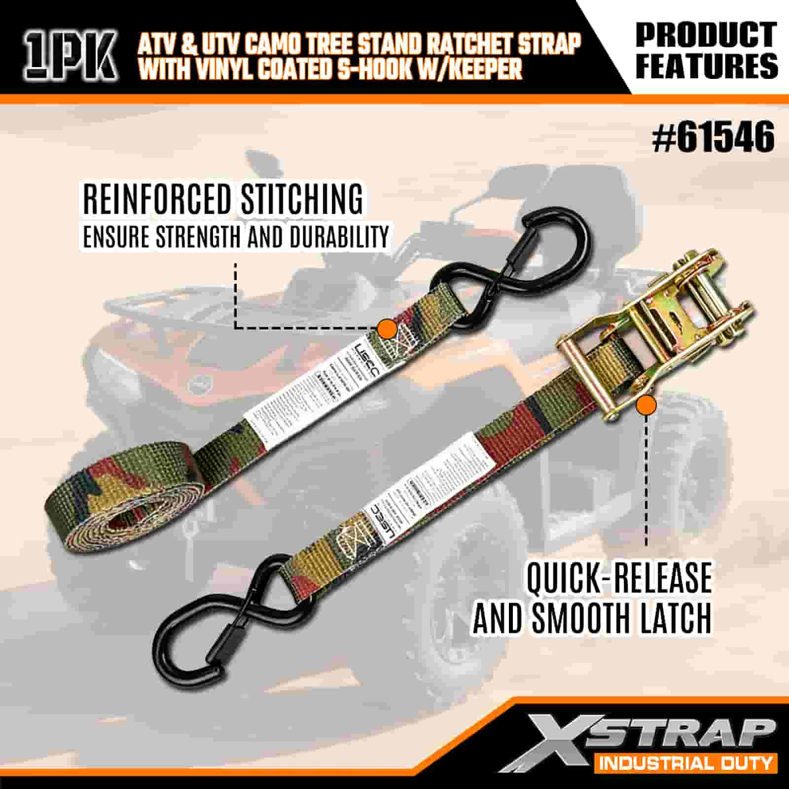 - Combinați, blocați: designul de camuflaj permite curelei să se amestece cu mediul în aer liber, în timp ce cusăturile sale întărite și clichetul rezistent vă țin ATV-ul, suportul de copac sau motocicleta strâns. Nu vă mai faceți griji cu privire la deplasarea sarcinilor pe teren accidentat.