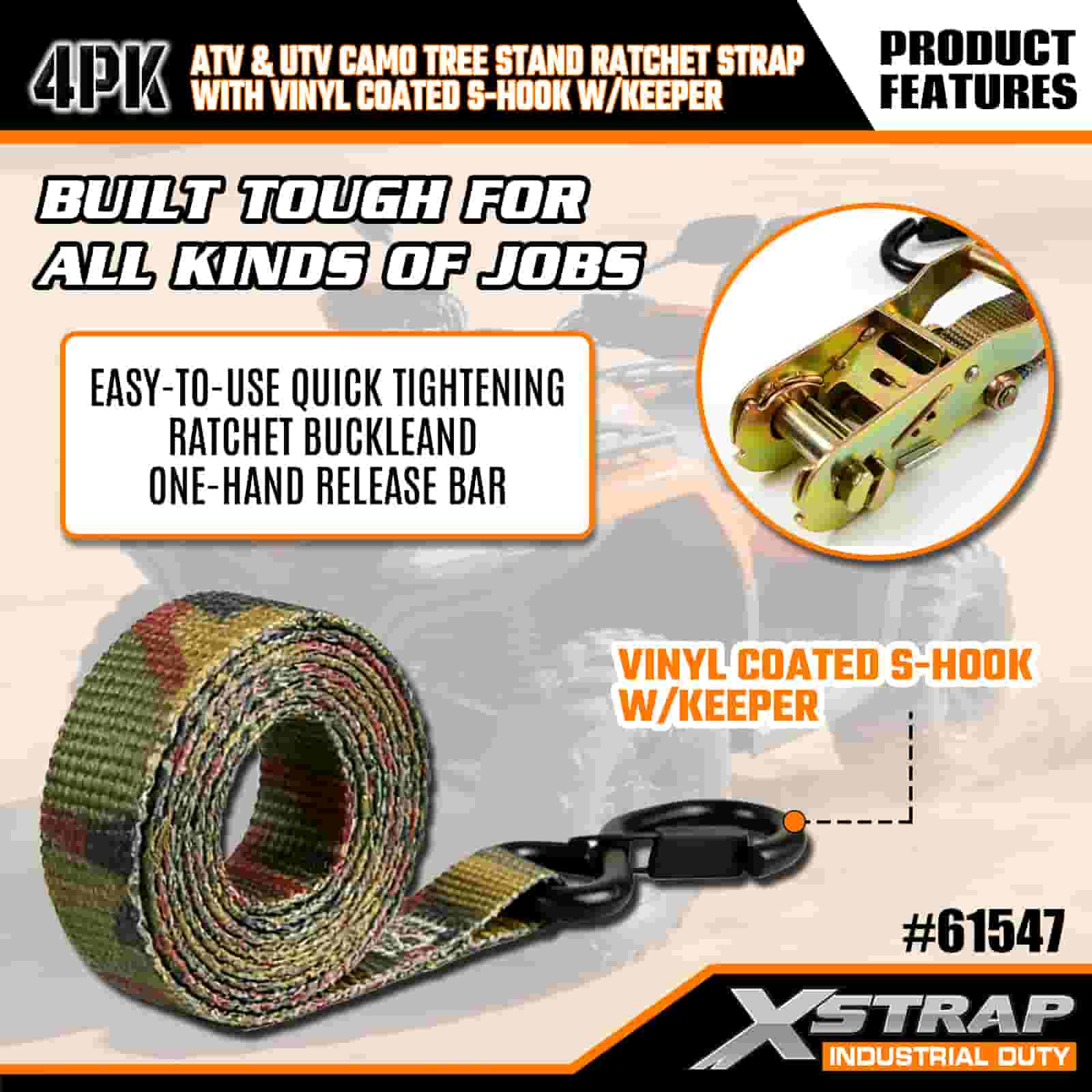 - Construite pentru aventuri în aer liber: fie că transportați un suport de copac la locul dvs. de vânătoare sau asigurați o motocicletă pentru o plimbare de weekend, aceste curele transformă încărcarea stresantă într-un pas rapid și fiabil. Designul camuflaj vă menține echipamentul de profil redus, astfel încât să rămâneți concentrat pe vânătoare sau pe traseu.