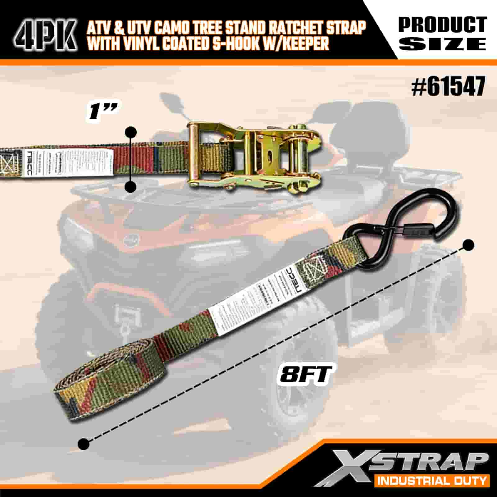 Curea cu clichet Xstrap 4PK cu cârlige S de siguranță acoperite cu vinil, curea cu clichet din poliester de 1 inch x 8 pi, curele de fixare pentru ancorare a încărcăturii cu o capacitate de 400 lbs cu cârlige S de siguranță pentru remorcă, remorcă cu pat plat, barcă de schi, mașină mică, echipament greu.