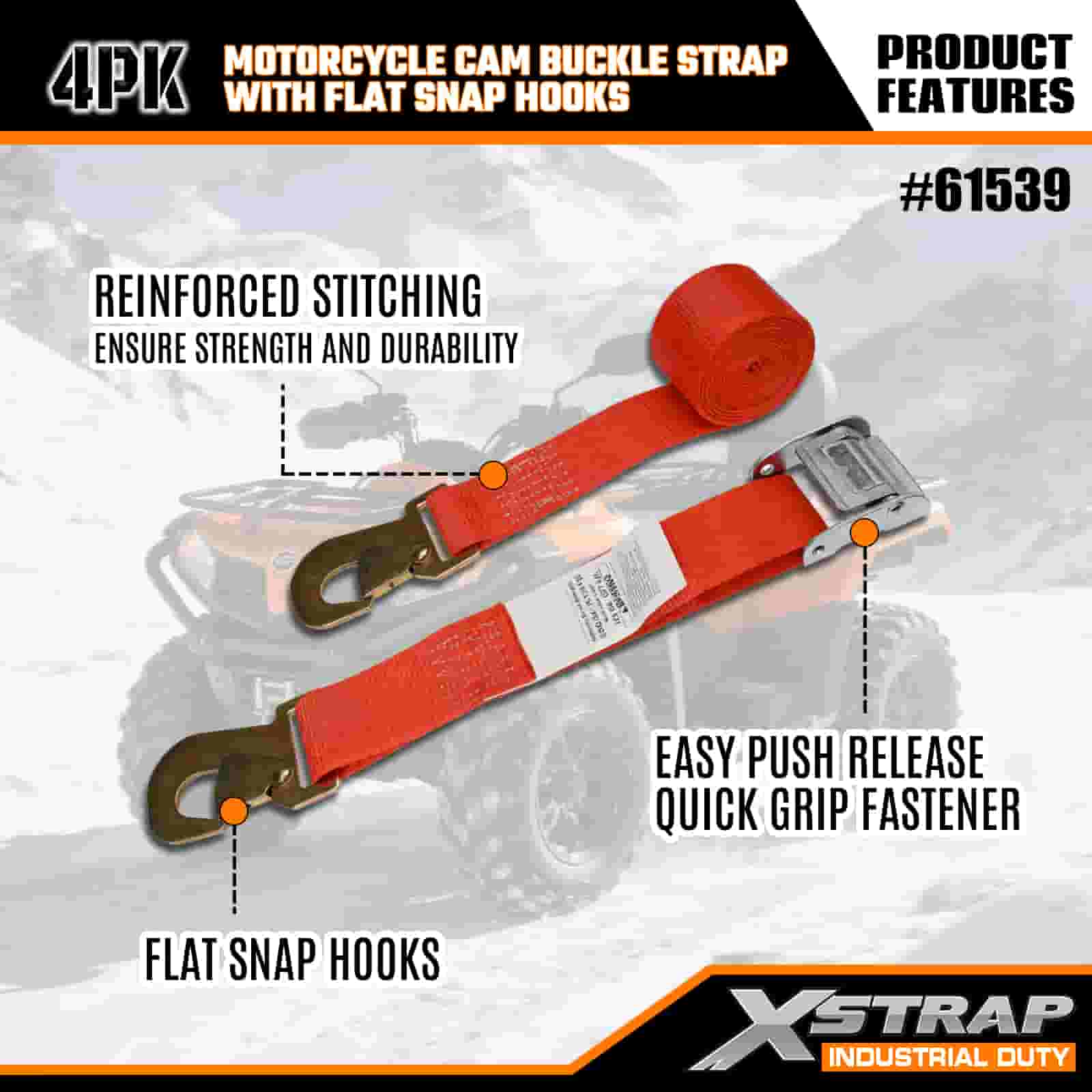 - Pachet de 4 8ft Dimensiune (perfect pentru motociclete): lățimea de 2 inchi distribuie tensiunea în mod uniform (fără deteriorare a cadrului), iar lungimea de 8 picioare se potrivește cu paturile de camioane, remorci sau portbagajul de pe acoperiș. Pachetul de 4 vă oferă suficiente curele pentru a fixa roțile față/spate și ghidonul pentru o stabilitate totală.