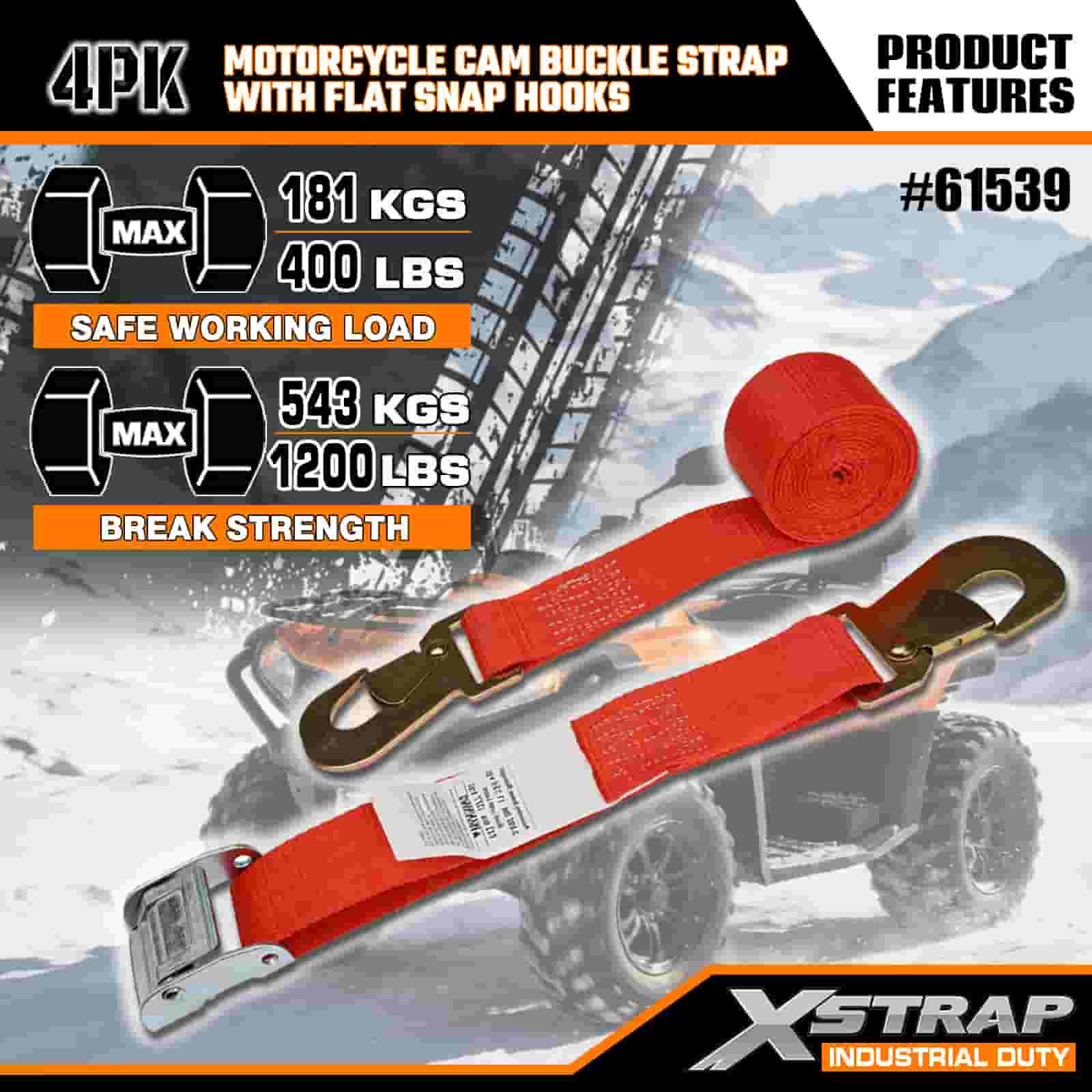 - Evaluări de sarcină certificate (fără presupuneri): Fiecare curea afișează în mod clar o sarcină de lucru sigură de 181 KGS/400 LBS și rezistență la rupere de 543 KGS/1200 LBS (îndeplinește standardele de siguranță în transport). Nu te vei întreba niciodată dacă motocicleta ta este sigură.