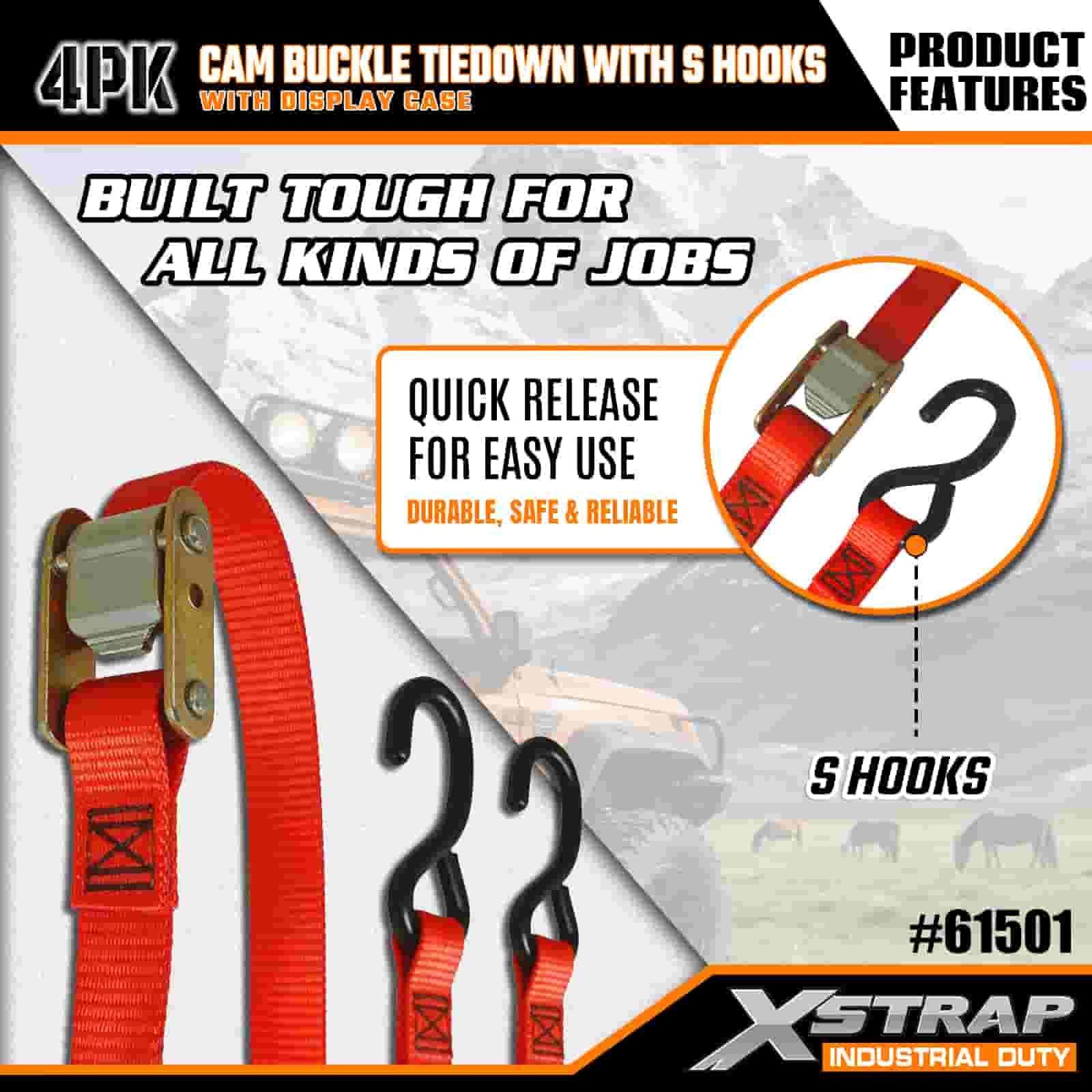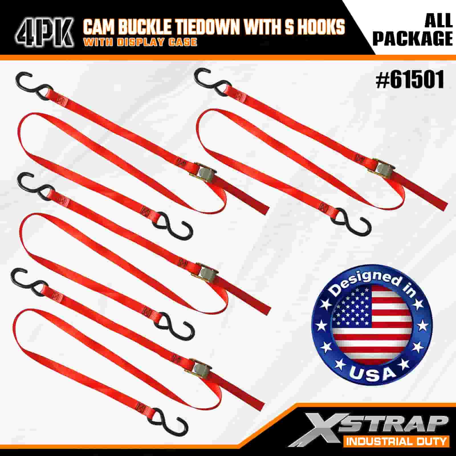 Xstrap 4 pachete de fixare cu cataramă cu cârlige în S, curea de fixare din poliester de 2” x 6 pi cu cataramă cu came, curele de fixare pentru ancorare a încărcăturii cu o capacitate de 400 lbs cu cârlige S pentru profesioniștii serioși să securizeze remorca de marfă, remorca cu pat plat, barca de schi, mașina mică.