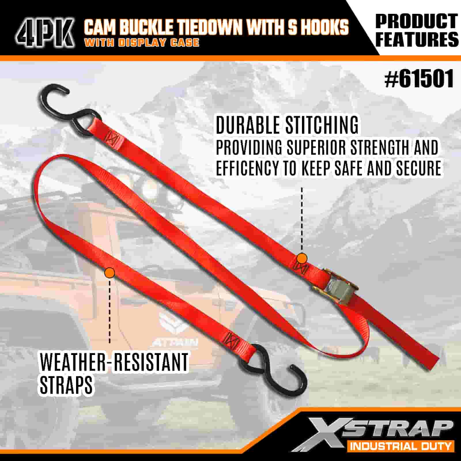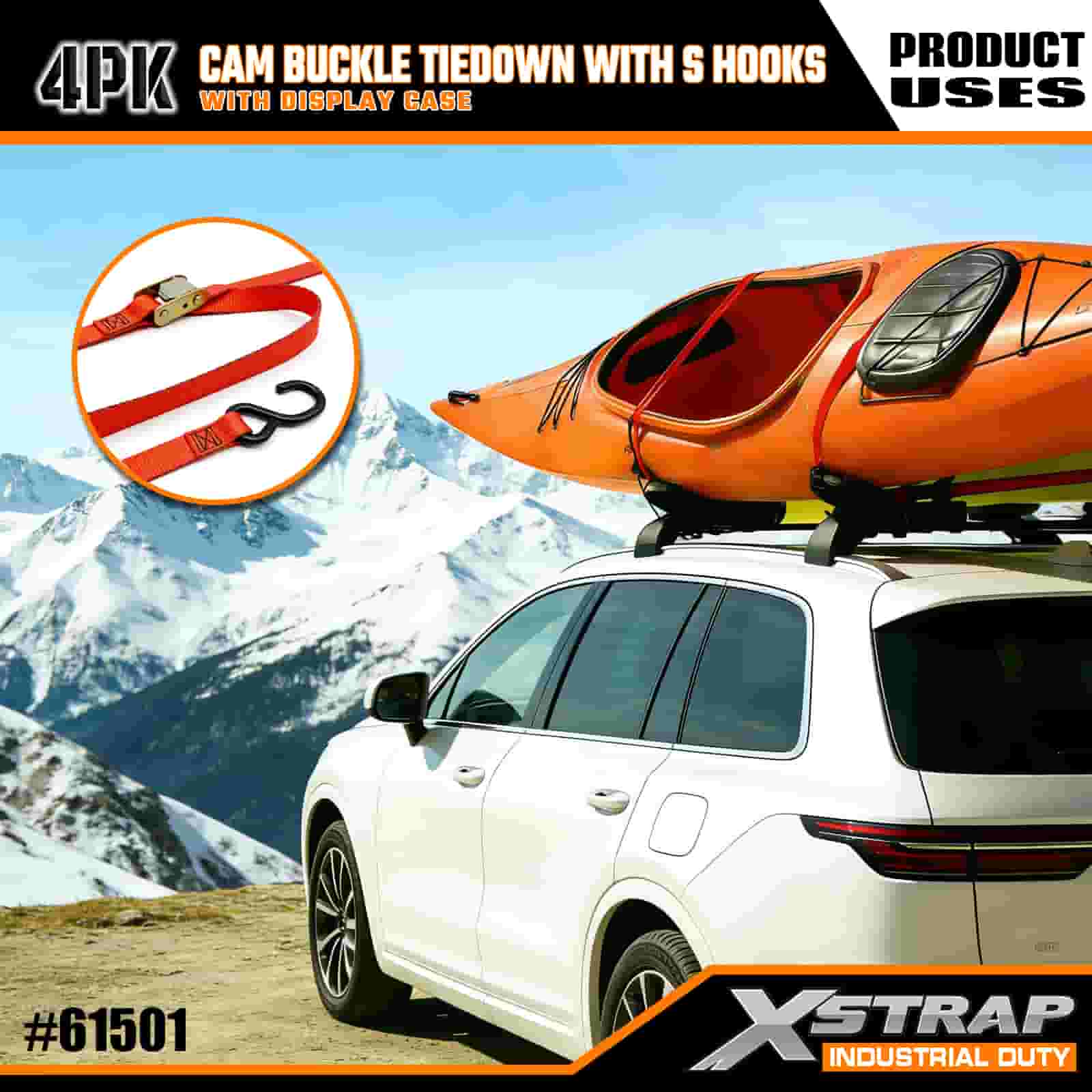 - Pachet practic de 4 cu vitrină: se vinde într-un set de 4 (cu ambalaj pentru afișaj) pentru utilizare în loturi, iar fiecare curea măsoară 2 inchi lățime × 6 picioare lungime, ceea ce este ideal pentru asigurarea articolelor precum caiace, echipament de exterior sau încărcătură.