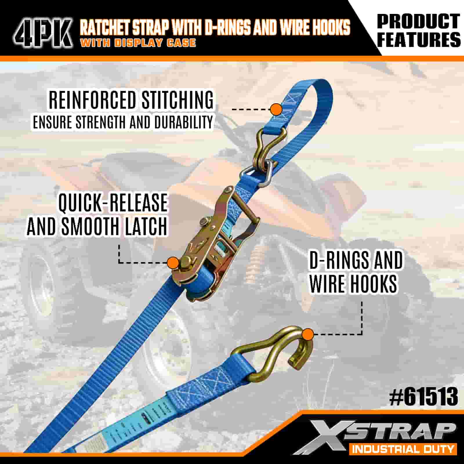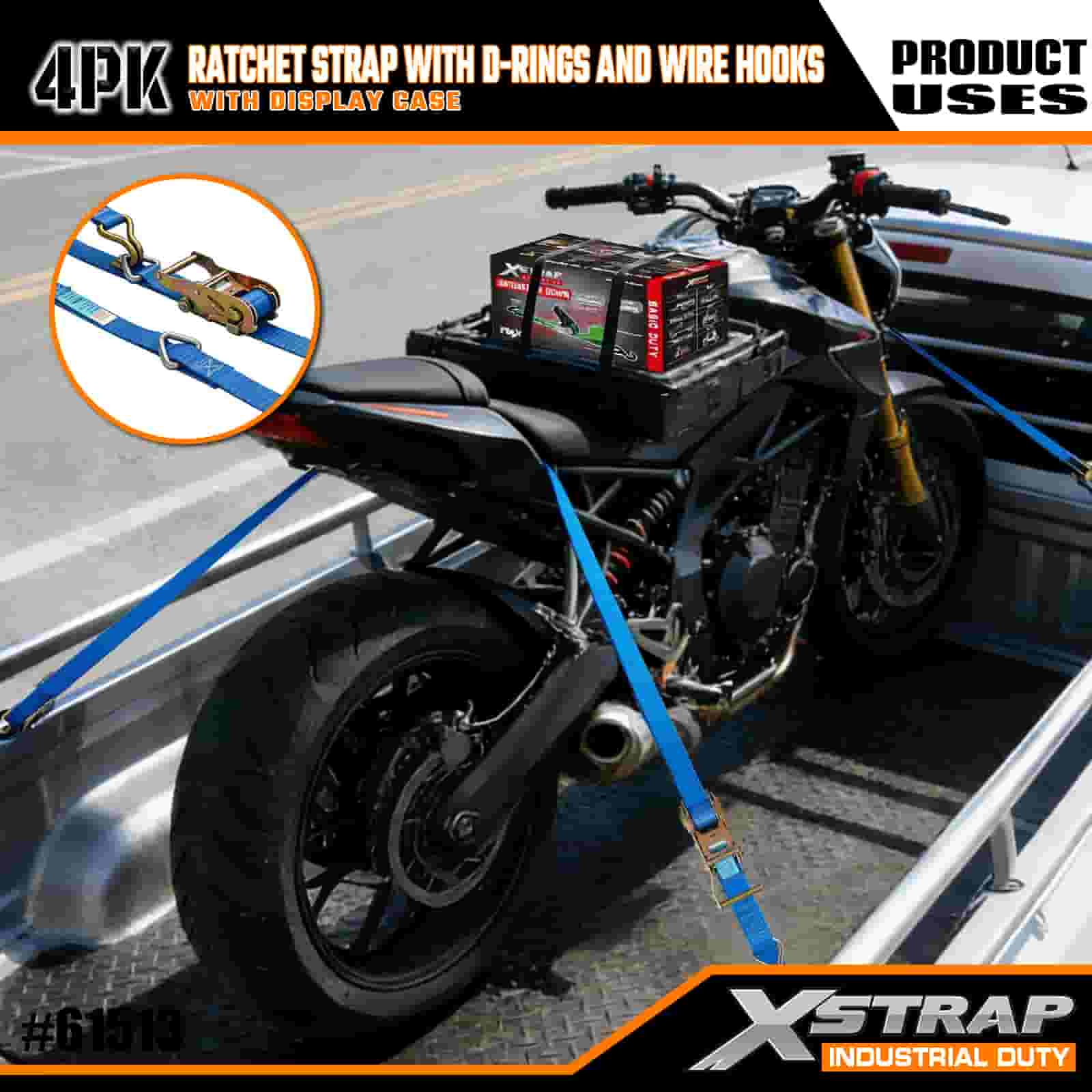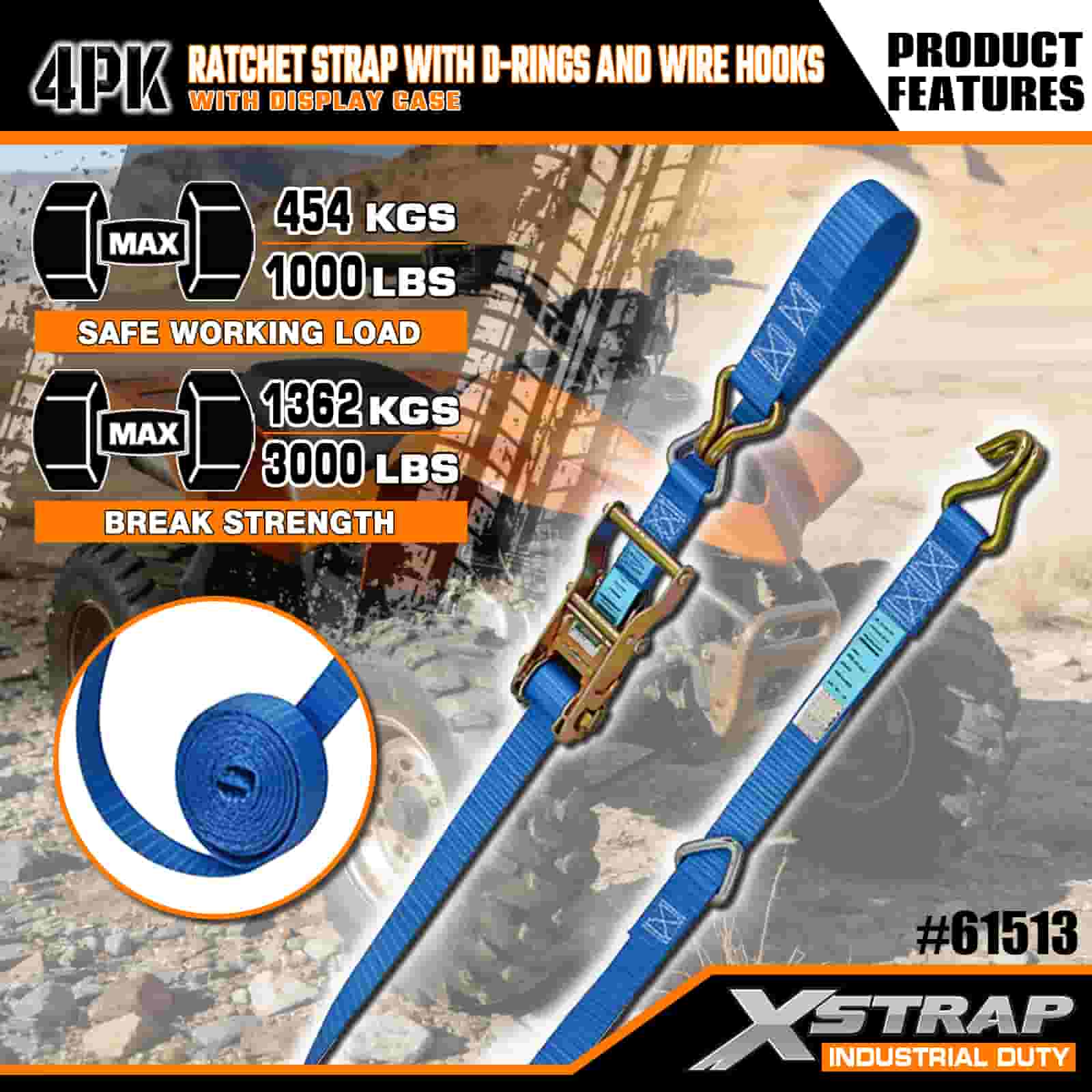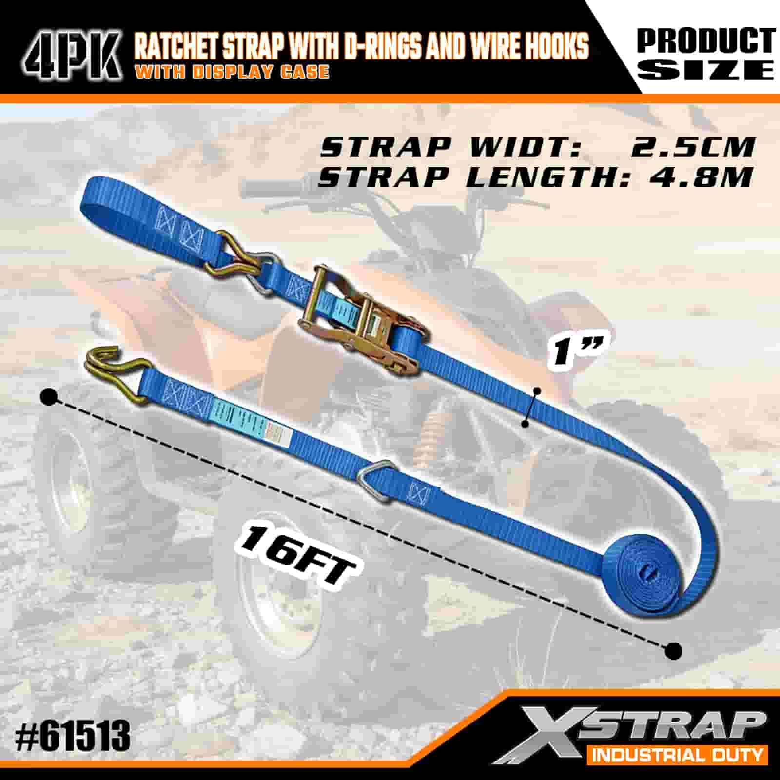 - Lungime de 16 ft cu ambalaj organizat: se vinde ca set cu 4 curele (în ambalaj pentru afișaj) cu bobine de depozitare încorporate; fiecare curea măsoară 1 inch lățime × 16 picioare lungime, ideală pentru asigurarea motocicletelor, a încărcăturii grele și a echipamentelor industriale.