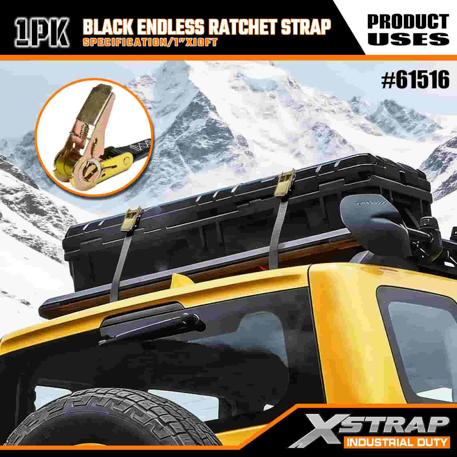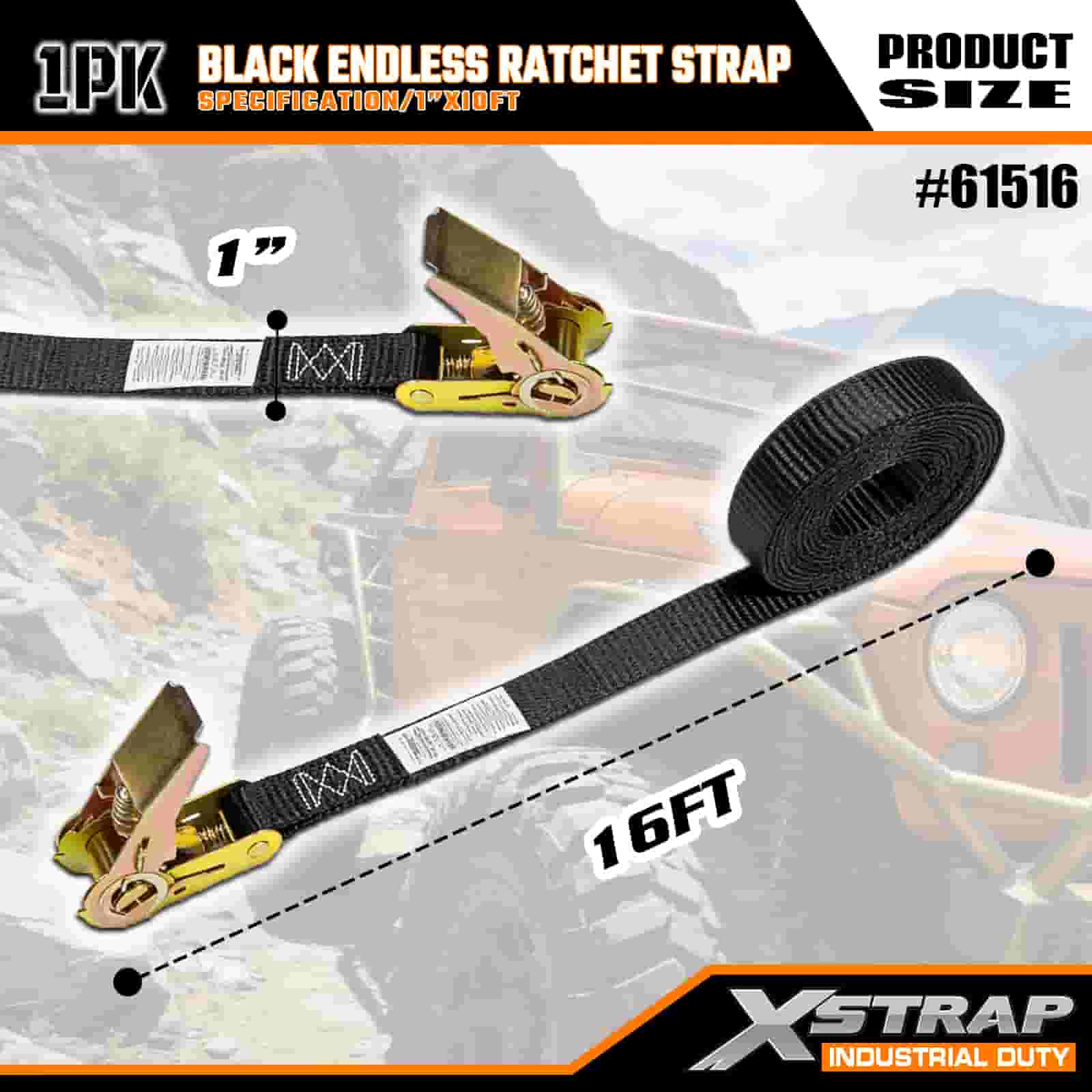- Lungime de 16 ft pentru utilizare versatilă: se vinde ca o singură curea (1 inch lățime × 16 picioare lungime) cu bobină de depozitare, ideală pentru securizarea boxelor de acoperiș, echipamentelor industriale și încărcăturii de dimensiuni ciudate în medii off-road sau la șantier.