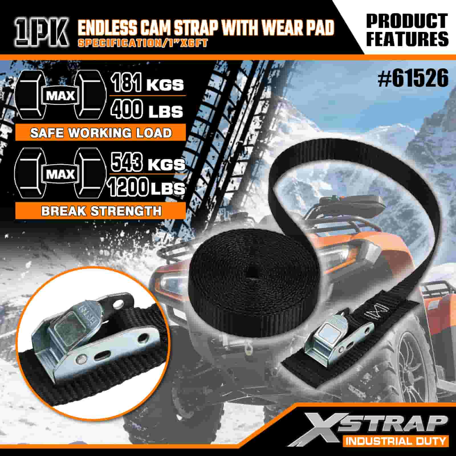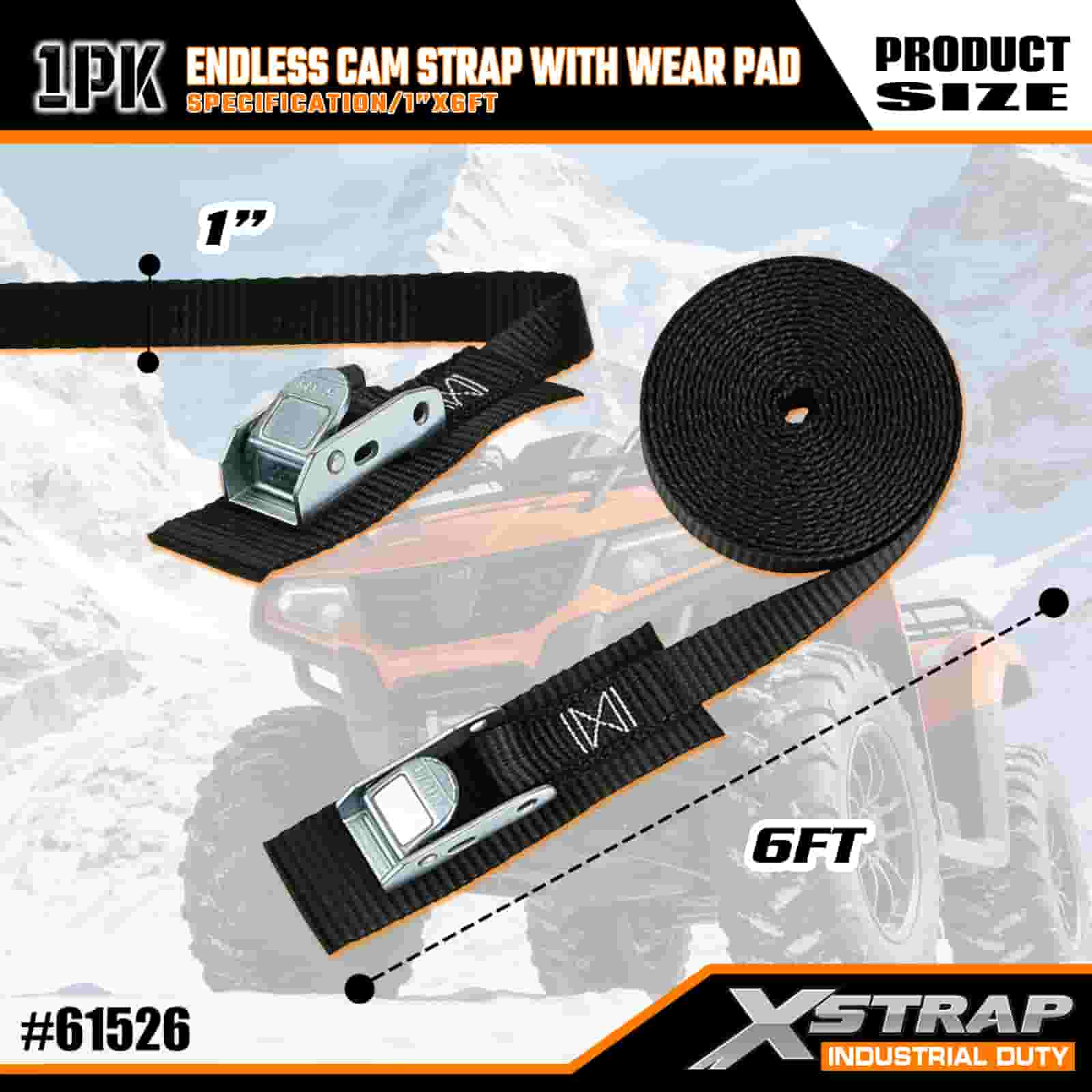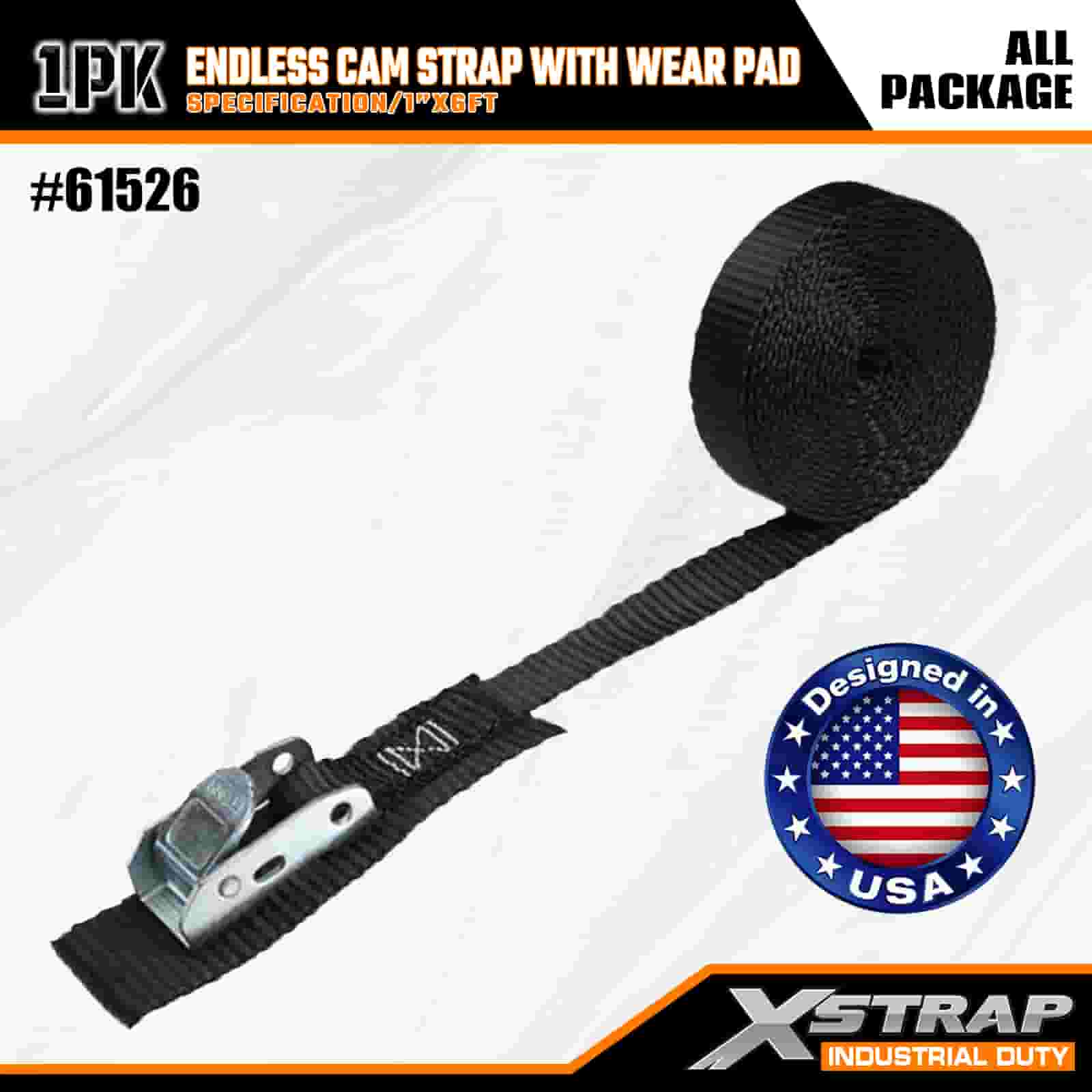 Curea Xstrap Endless Cam cu suport de uzură, 1” x 6’ Curea de prindere din poliester Cureaua cu cataramă cu came, 400 de livre de capacitate Curele de fixare pentru fixarea încărcăturii pentru profesioniștii serioși pentru a securiza remorca de marfă, remorca cu pat plat, barca de schi, mașina mică.