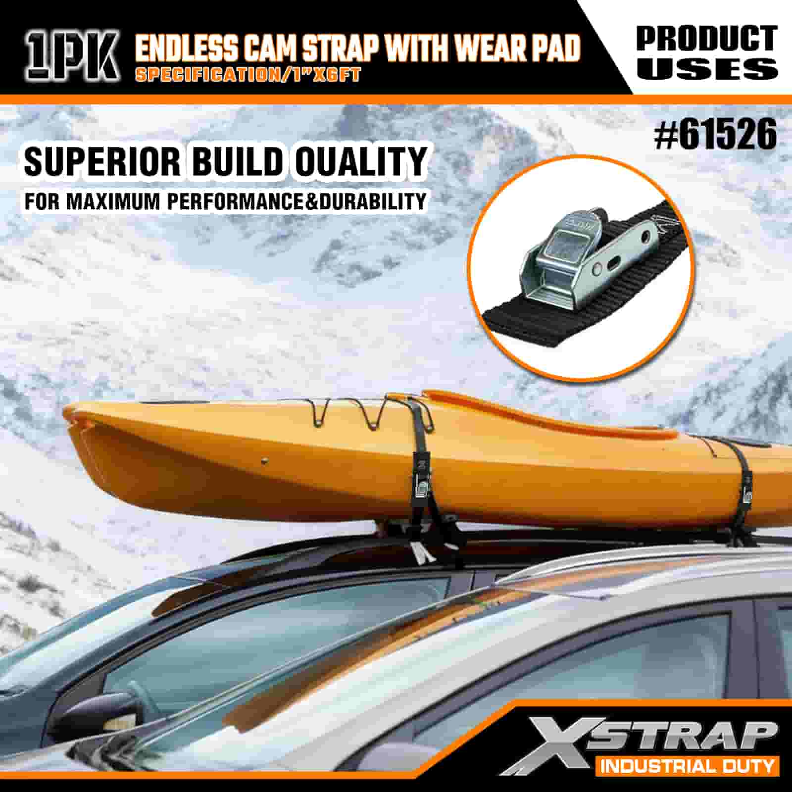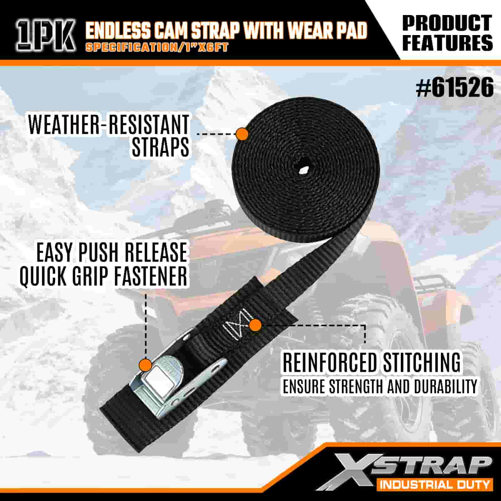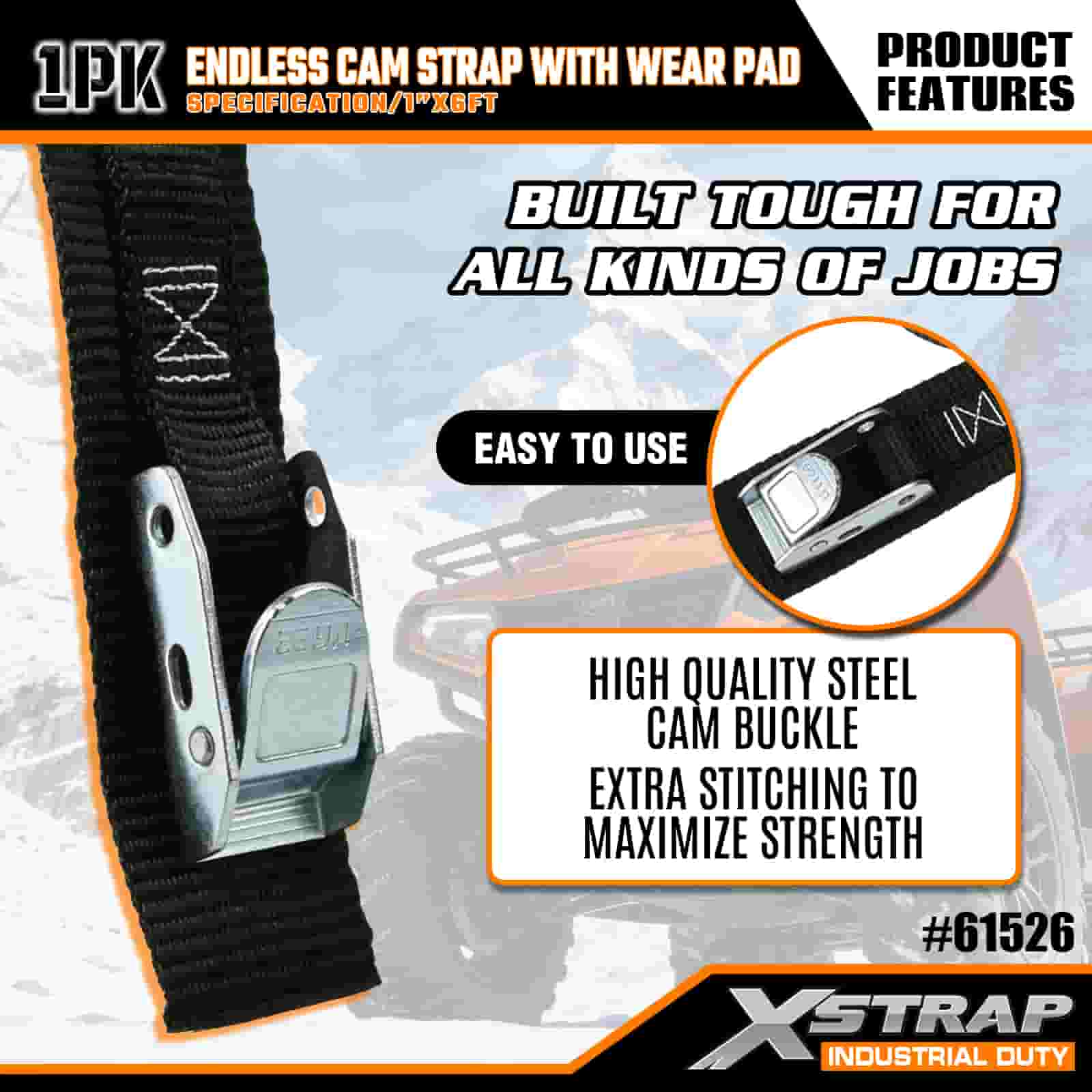 Curea Xstrap Endless Cam cu suport de uzură, 1” x 6’ Curea de prindere din poliester Cureaua cu cataramă cu came, 400 de livre de capacitate Curele de fixare pentru fixarea încărcăturii pentru profesioniștii serioși pentru a securiza remorca de marfă, remorca cu pat plat, barca de schi, mașina mică.