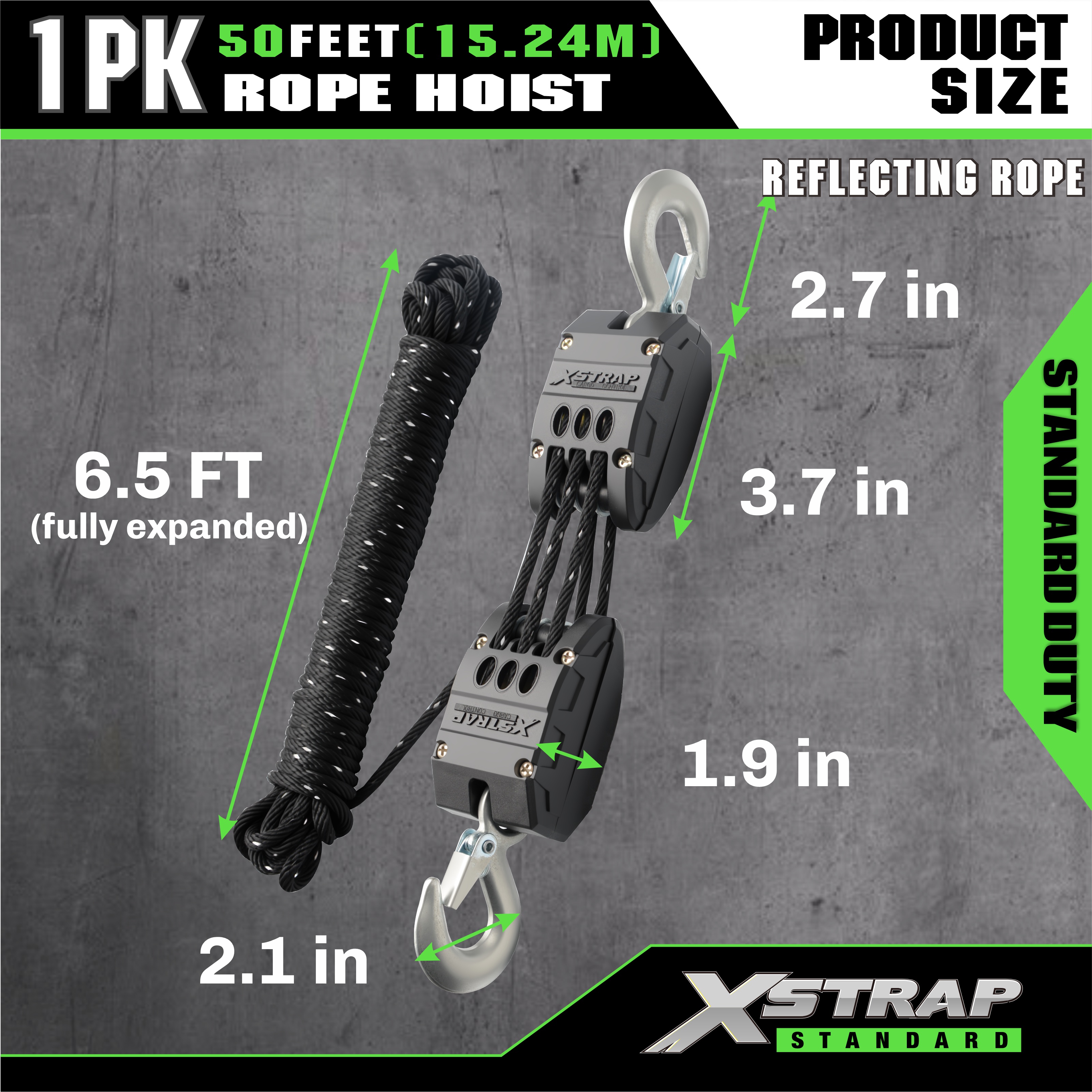 XSTRAP AHLT0003-negru reflectorizant Sistem de scripete de ridicare cu cablu 1000LB