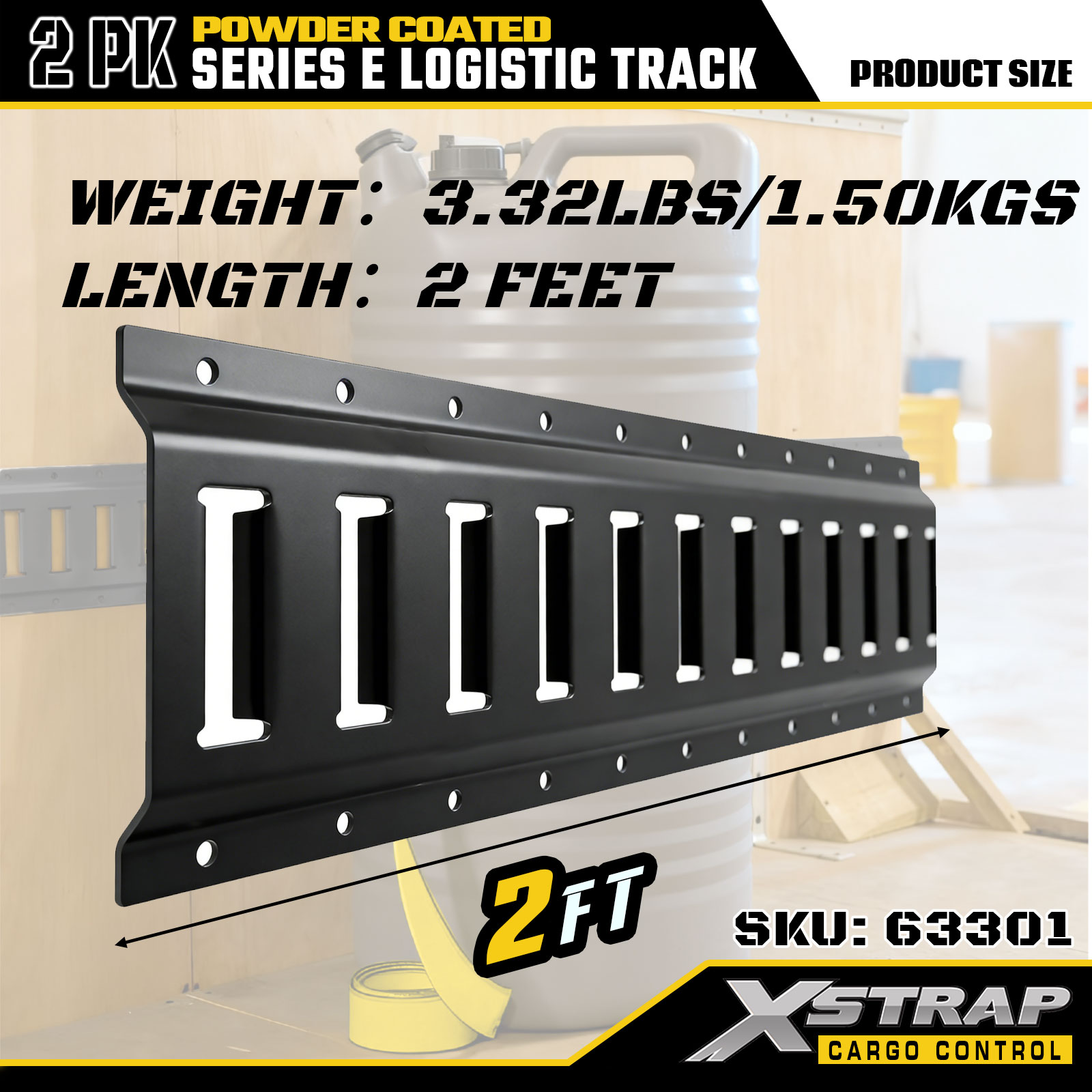 Xstrap 63301 seria 2 ft gri E șină logistică - oțel calibrul 12, capacitate 6000 lbs, 2 buc. pentru controlul încărcăturii, mutarea și transportul