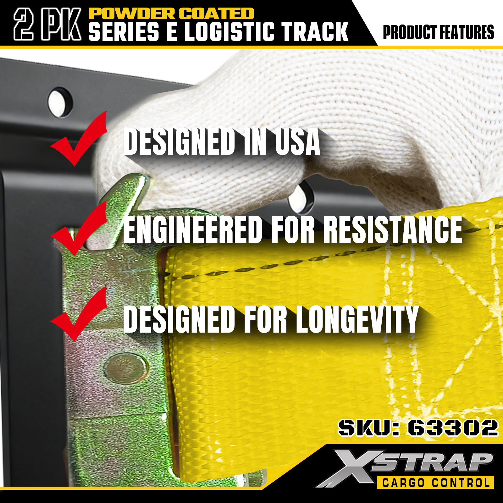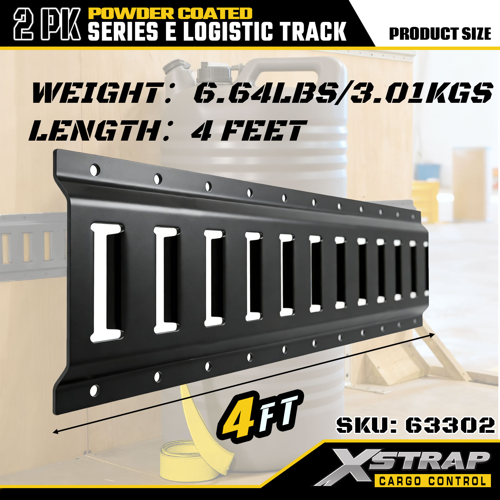 Xstrap 63302 4ft gri E șină logistică - oțel calibrul 12 cu strat de pulbere, capacitate 6000 lbs, 2 buc pentru controlul încărcăturii