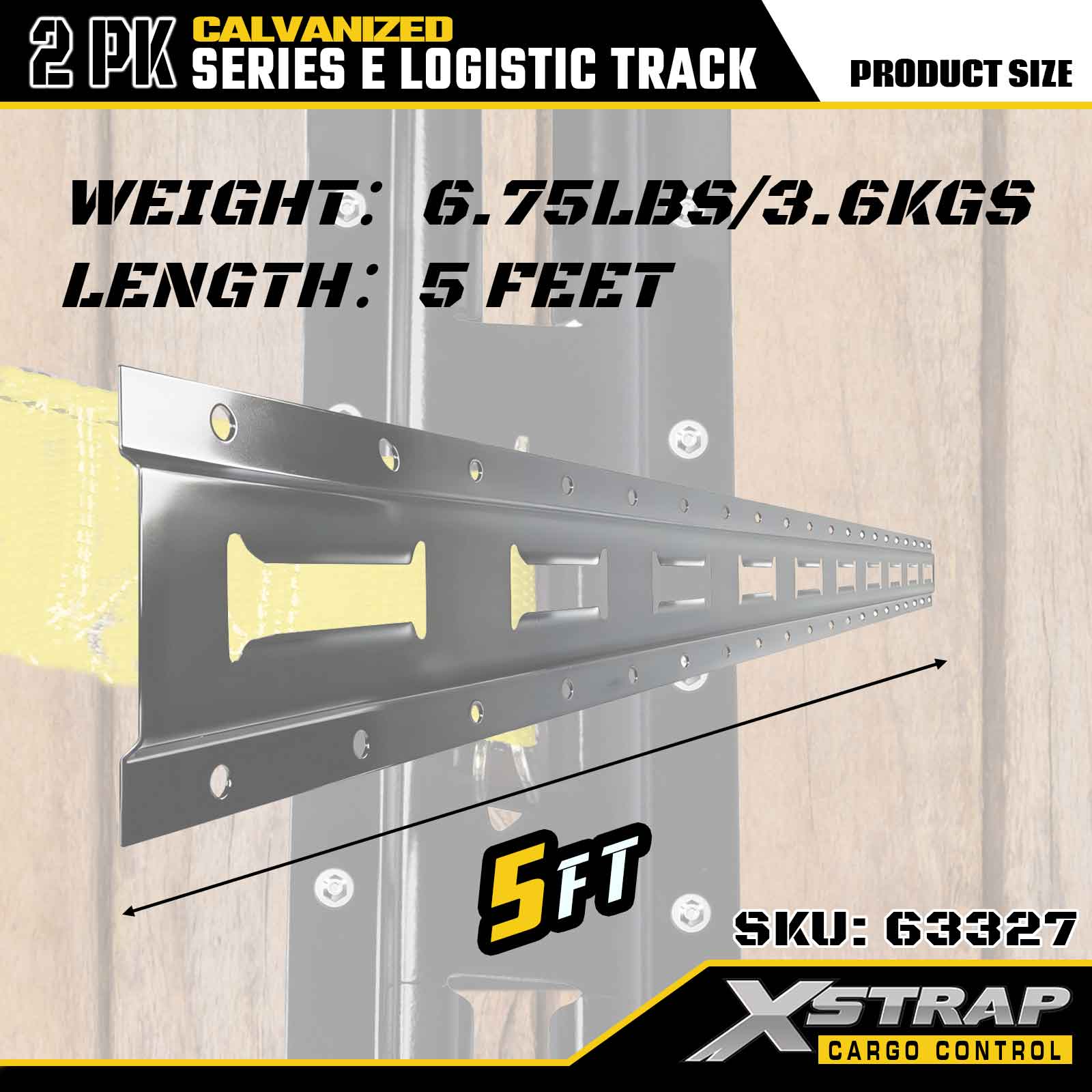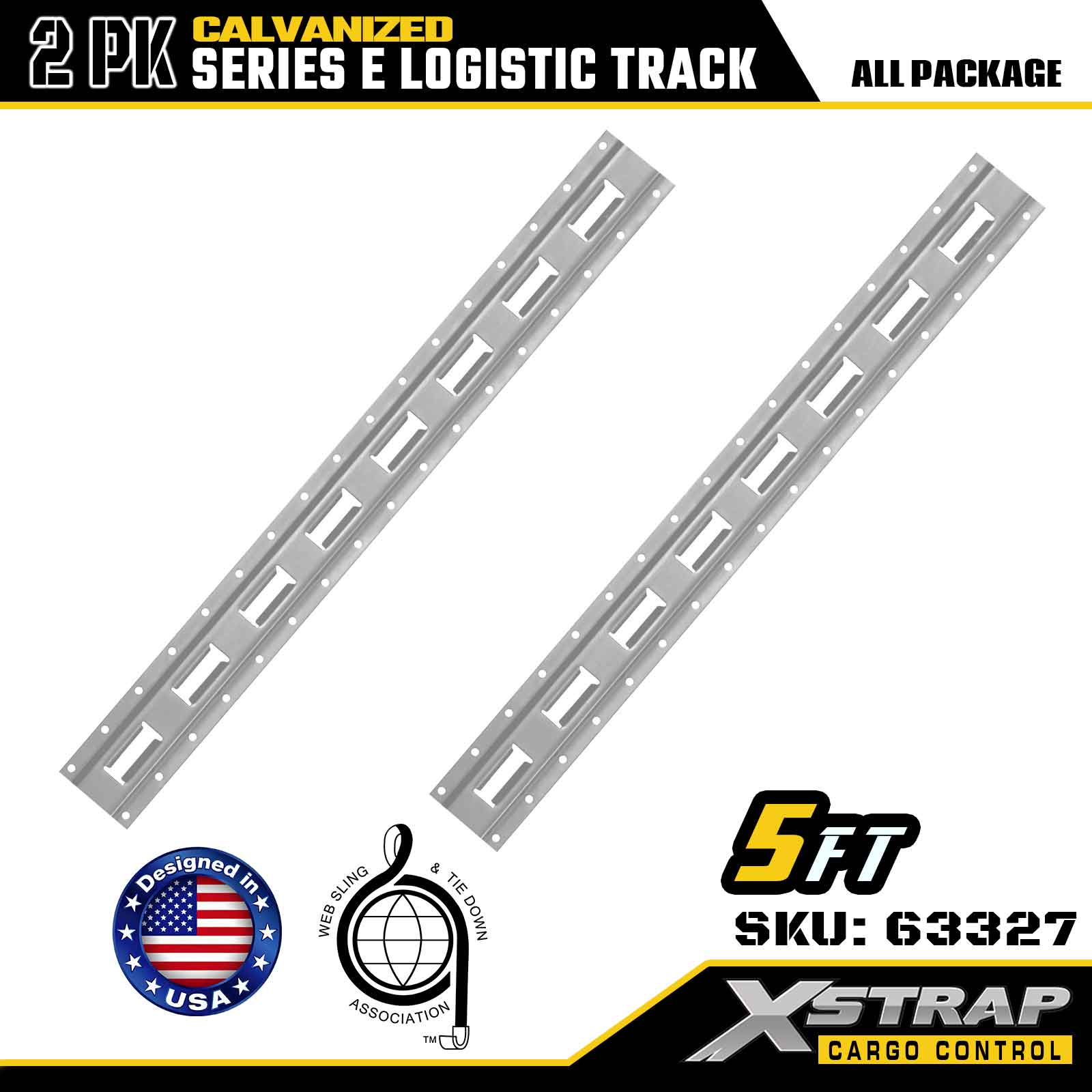 Xstrap 63327 Sină de ancorare pentru marfă E-Track, argintiu galvanizat de 5 ft - oțel de calibrul 12 cu galvanizare la cald, capacitate de greutate 6000 lbs, pachet de 2 pentru asigurarea încărcăturii