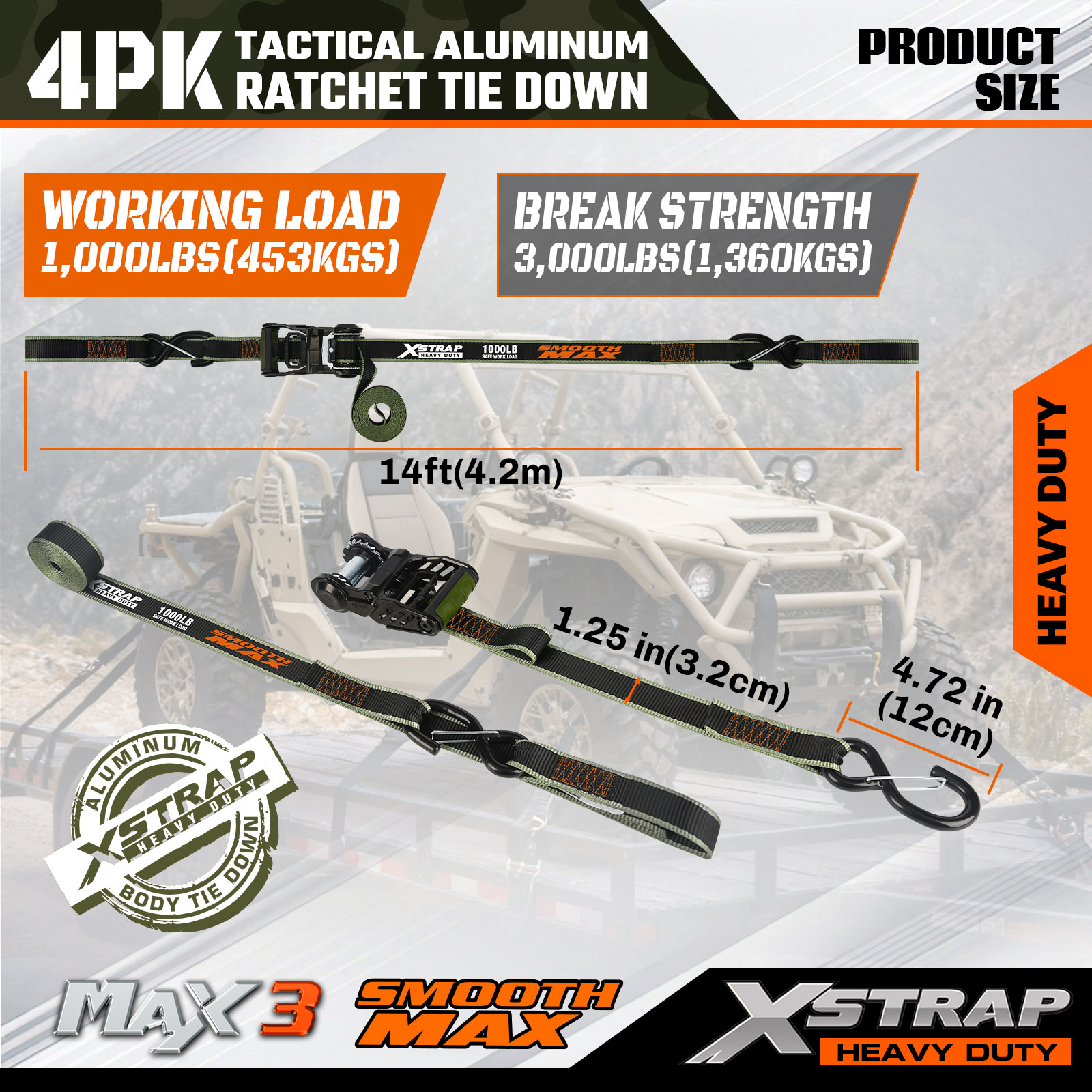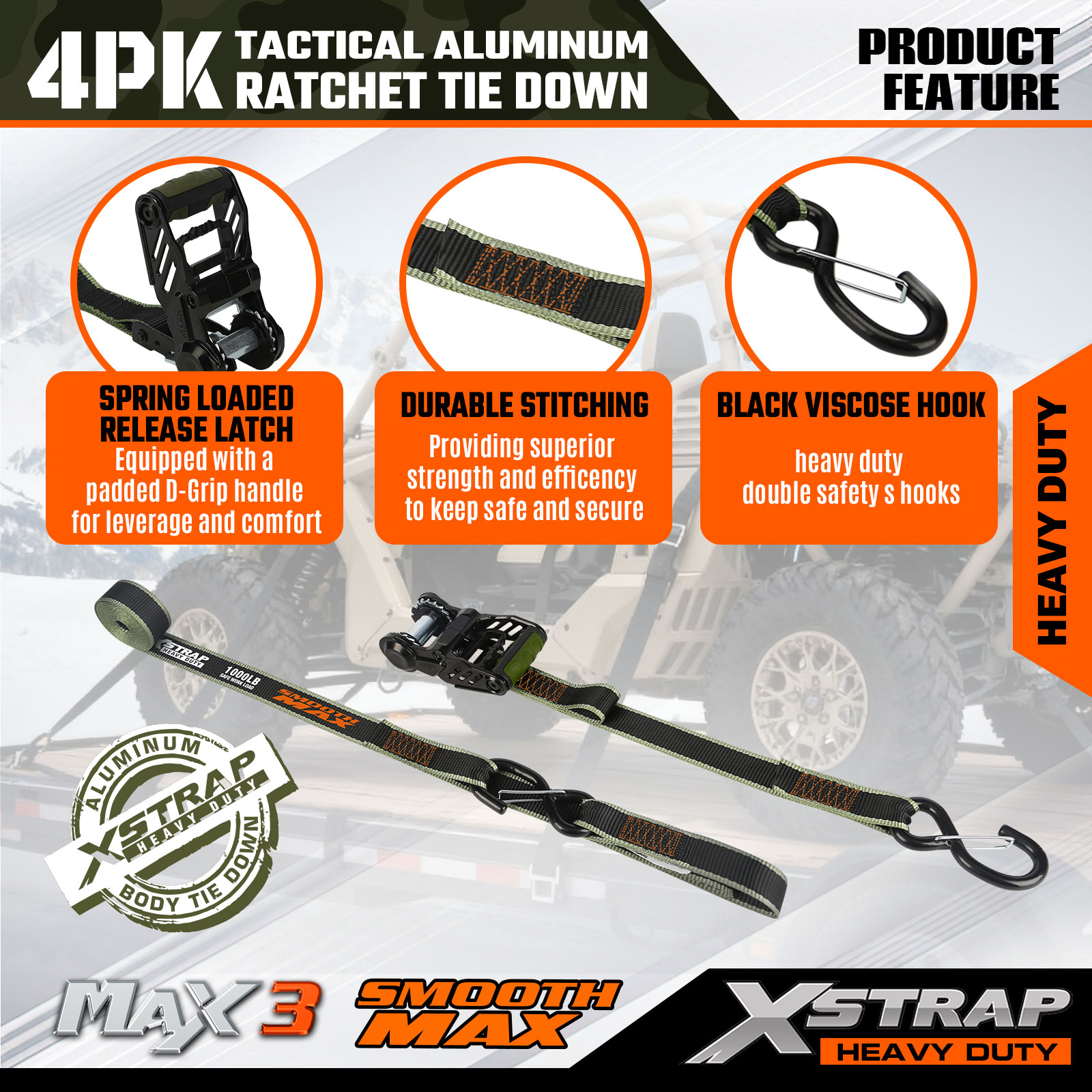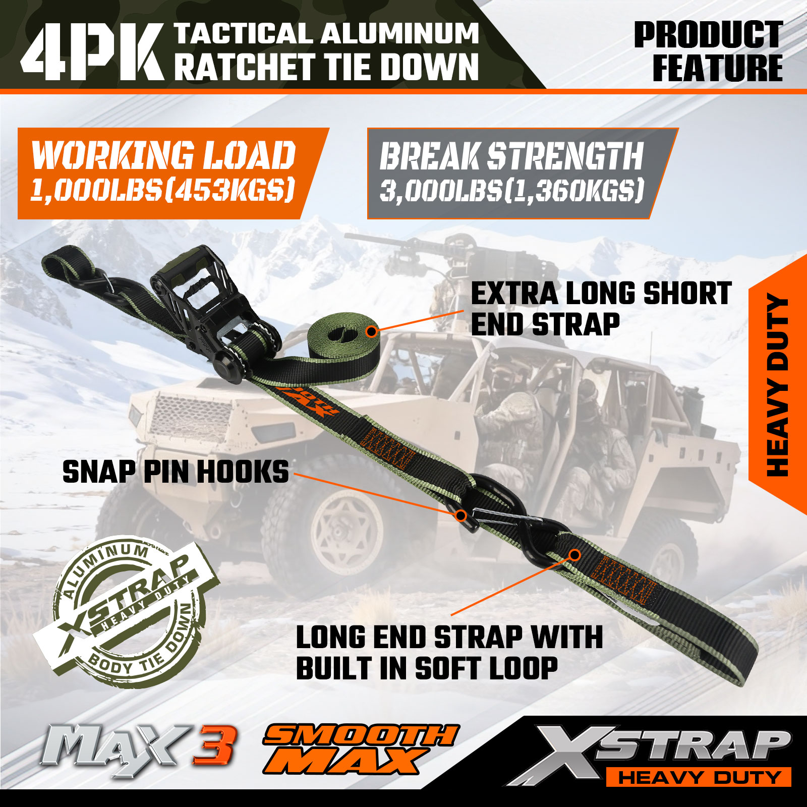 Xstrap 1,25" x 12ft Curele de prindere cu clichet tactic 1.000 lb SWL