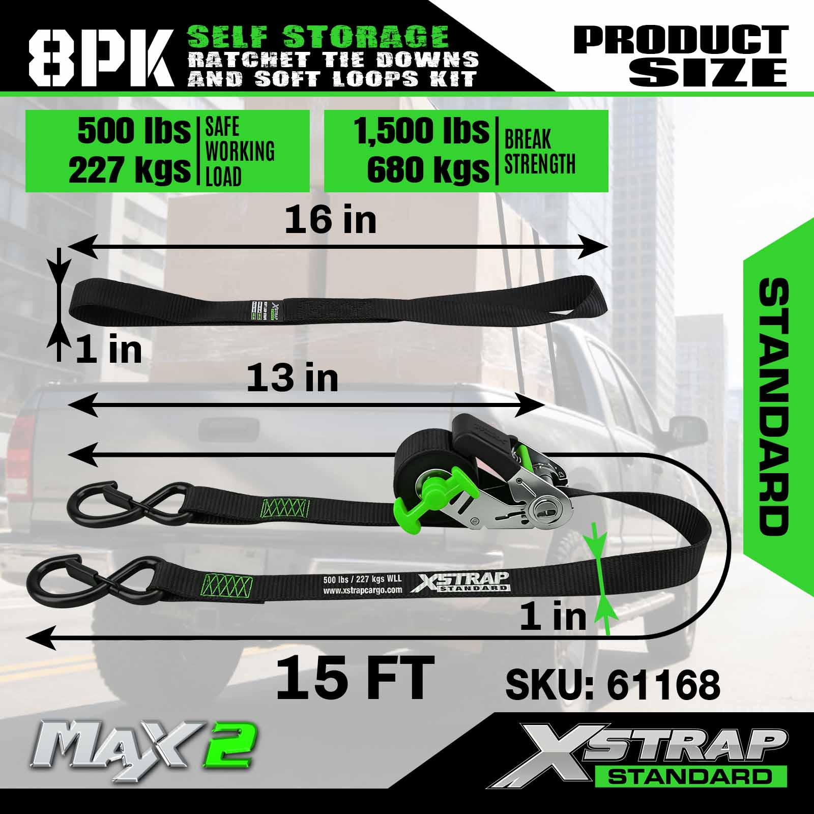 Xstrap 61168 1 inch 15ft auto-depozitare prindere cu clichet 500LB SWL