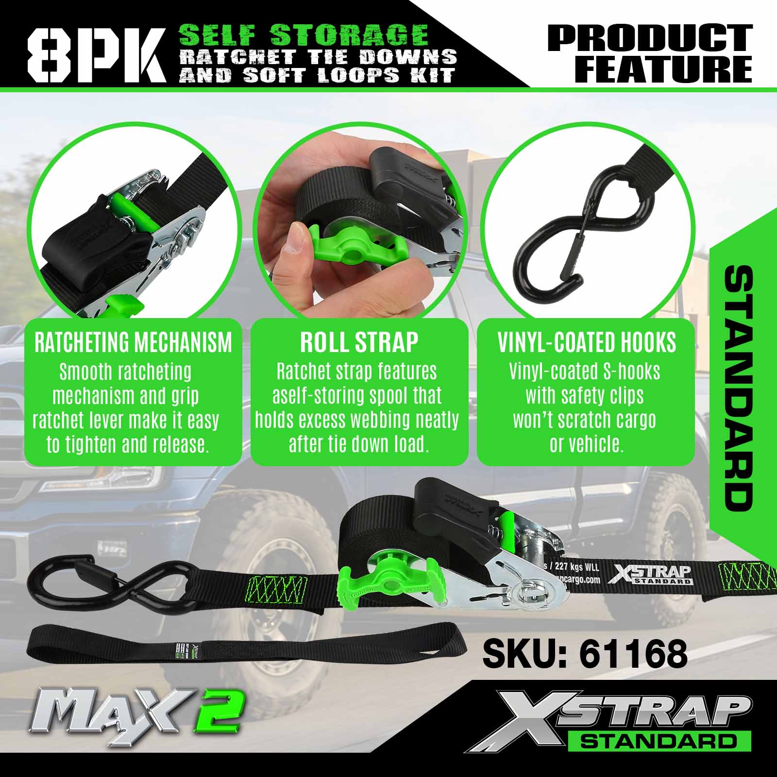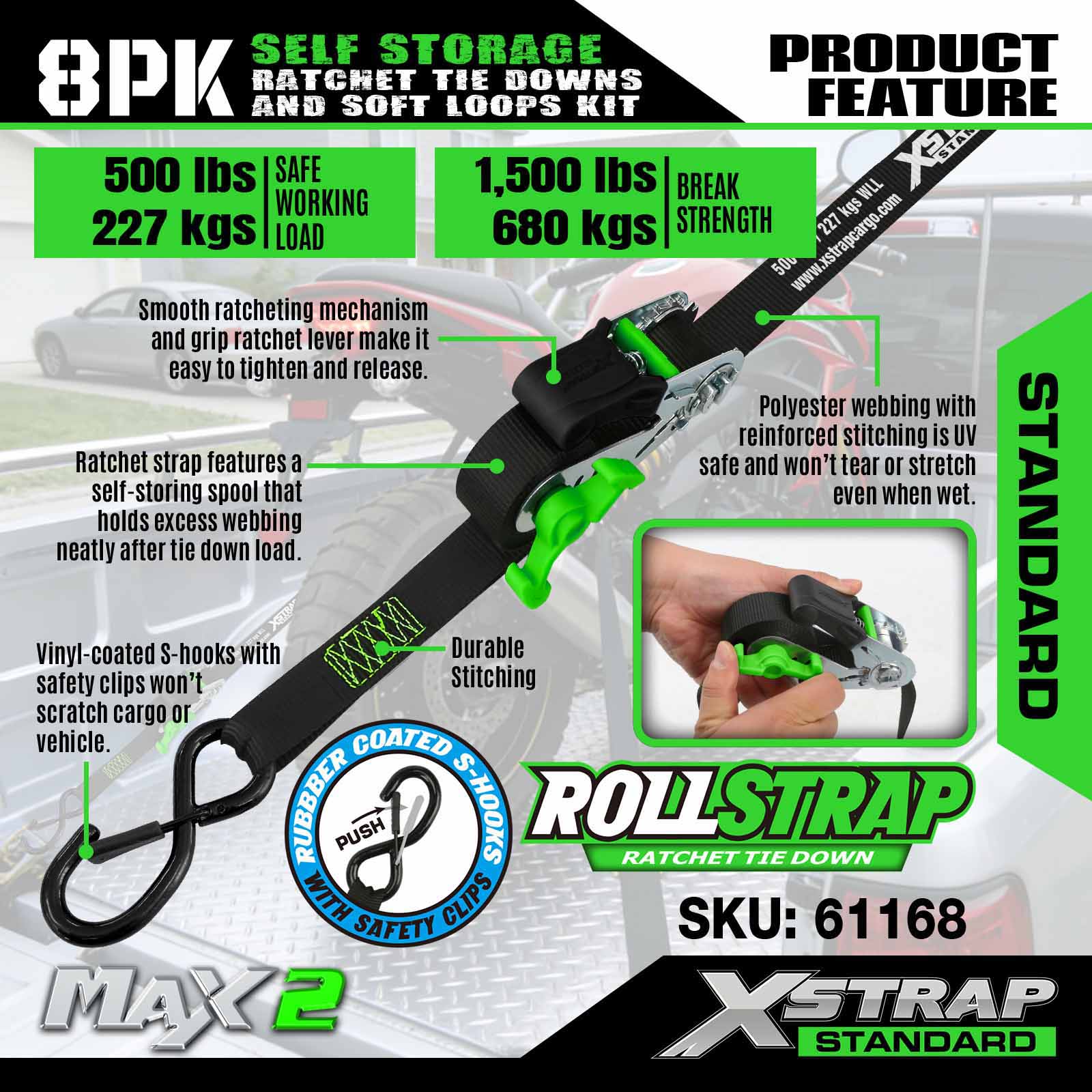 - Gata cu mizerii încurcate - În comparație cu alte curele cu clichet obișnuite, curelele cu clichet Xstrap cu depozitare automată pot ajuta la înfășurarea curelei pe bobină și atunci nu va fi dezordine.
