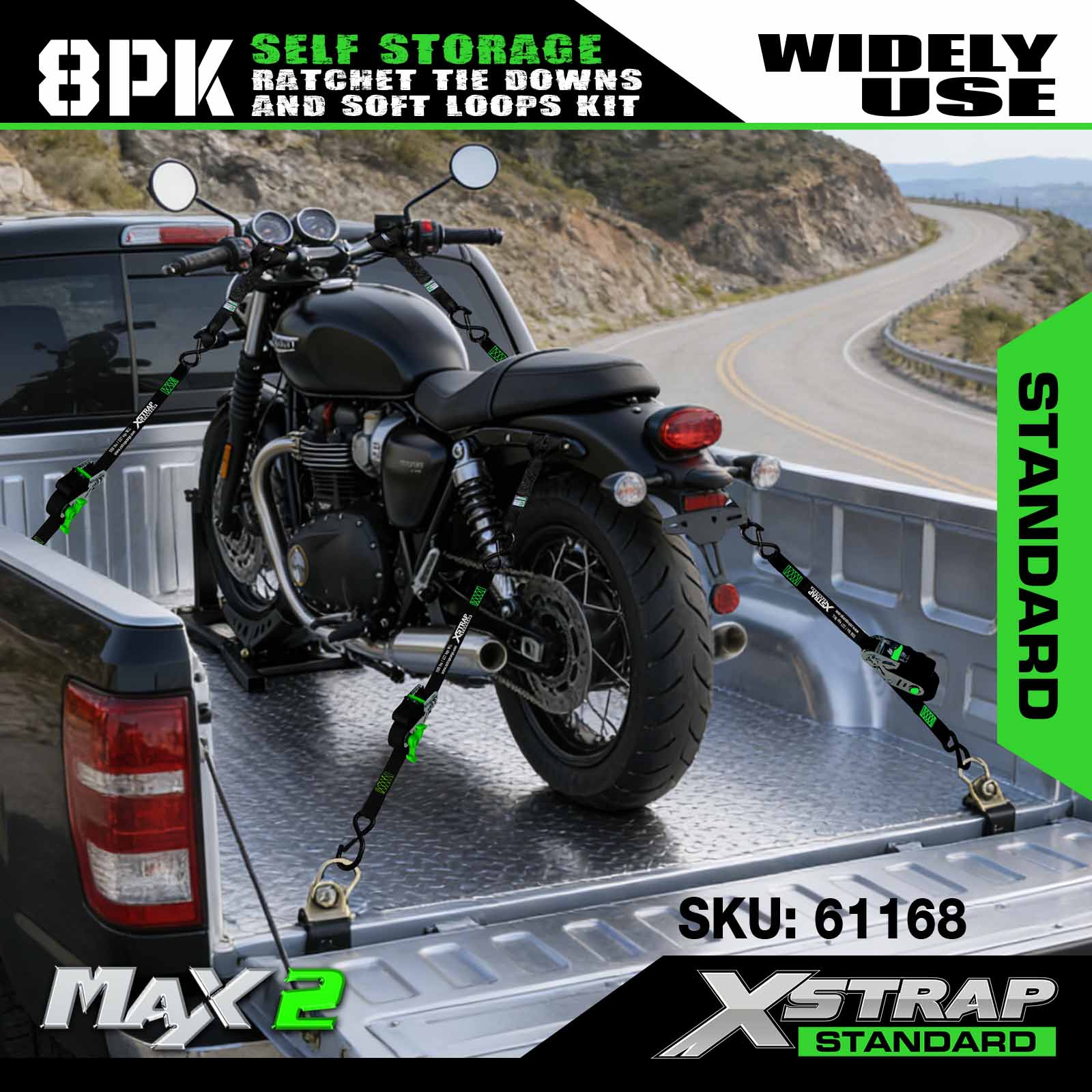 Acestea sunt curele de prindere cu clichet Xstrap de 1”×15’. Este un set de 4 bucăți. Curelele cu clichet sunt de obicei folosite pentru deplasări, electrocasnice și motociclete.