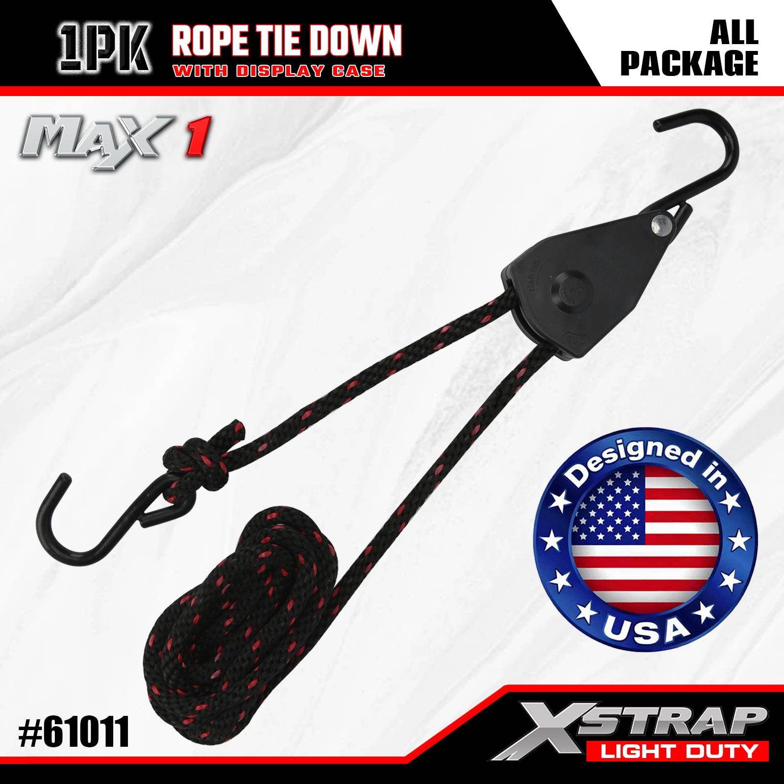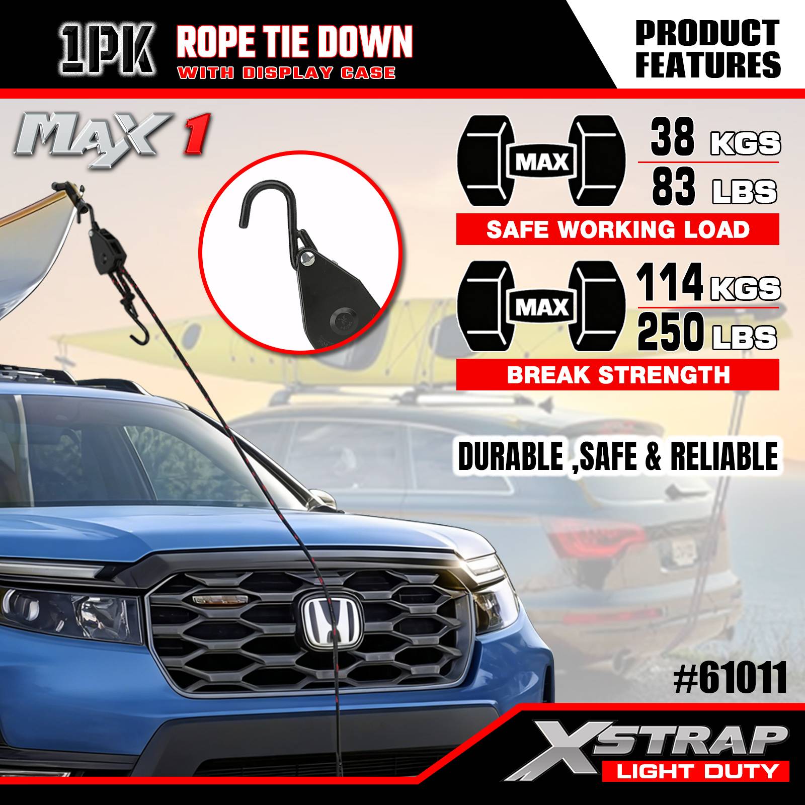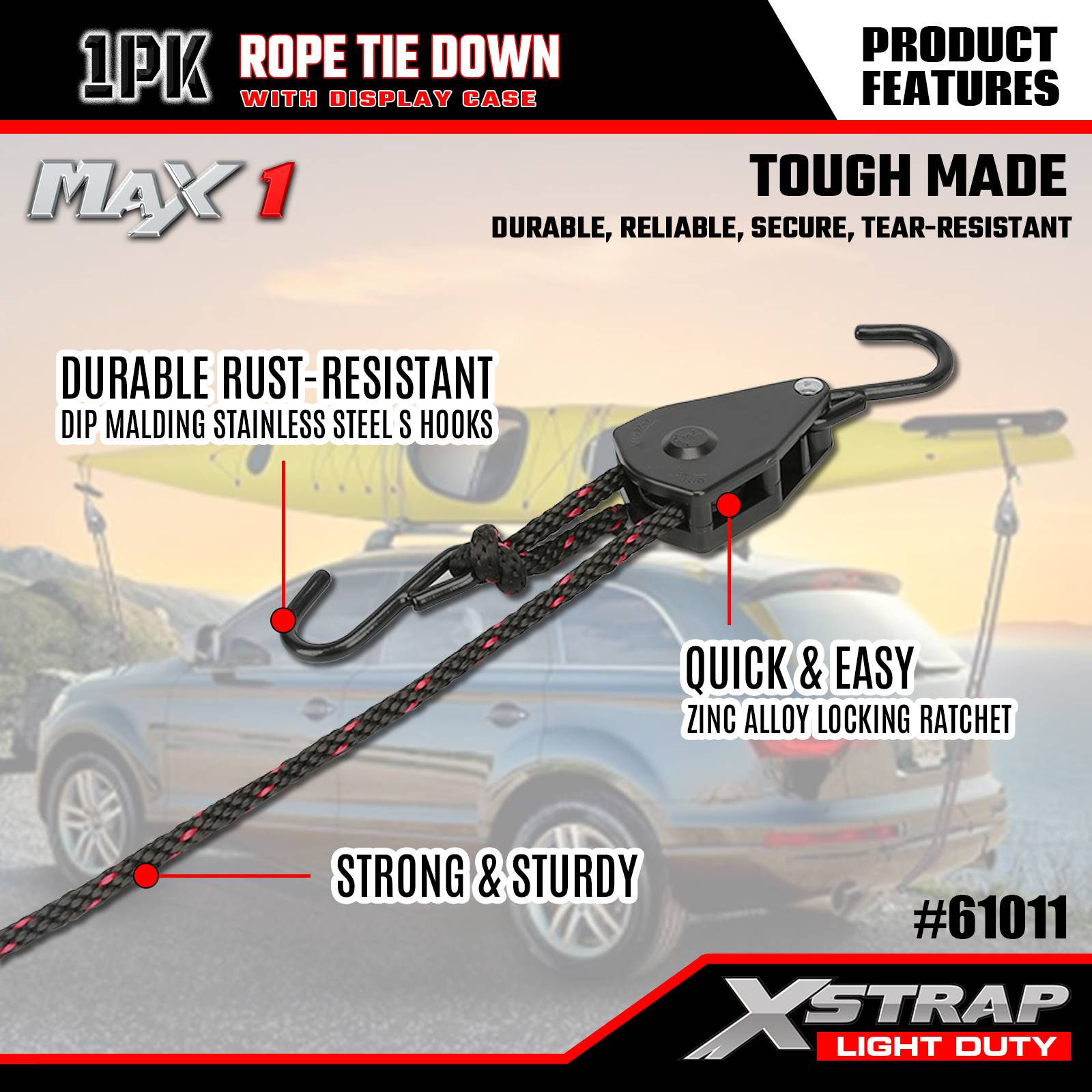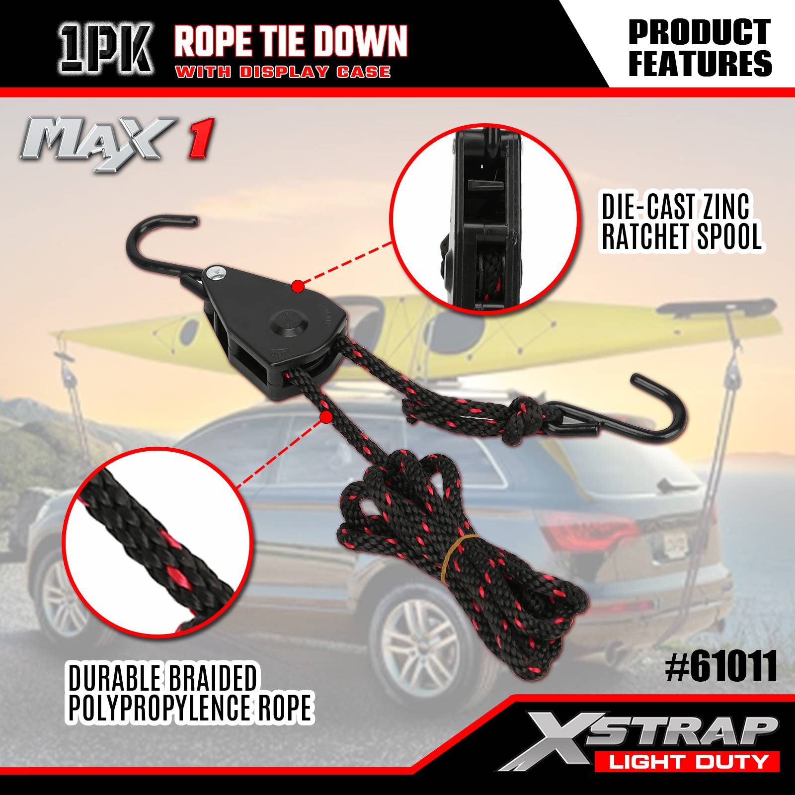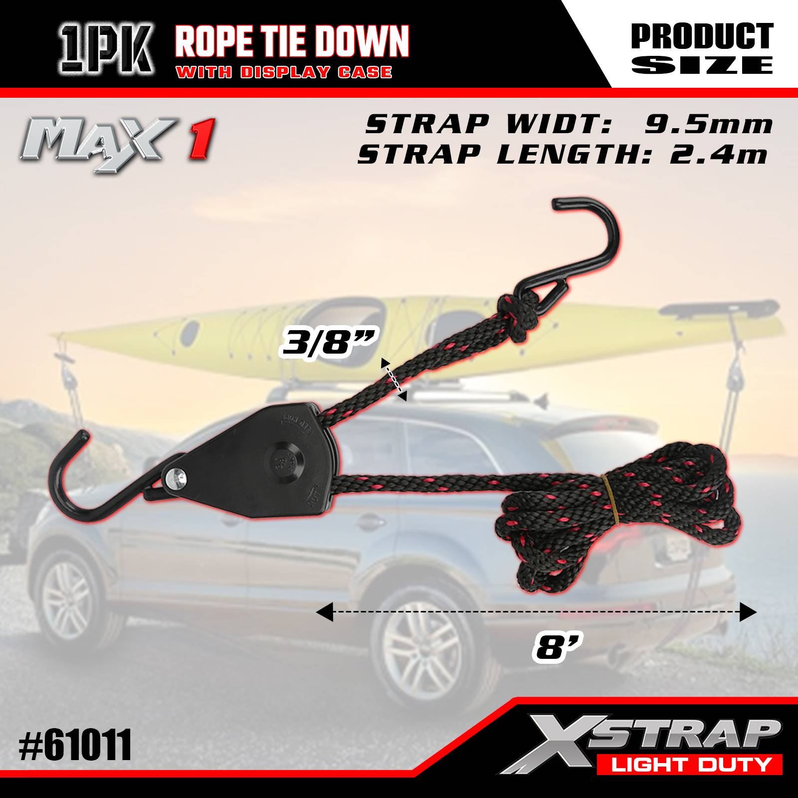 Xstrap 1 pachet chingi de prindere cu frânghie, 3/8” x 8’ - 83 lbs Cap de încărcare- 250 lbs rezistență la rupere - curele de marfă pentru fixarea încărcăturilor ușoare (caiacuri, echipamente, echipamente mici) la vehicule/raft