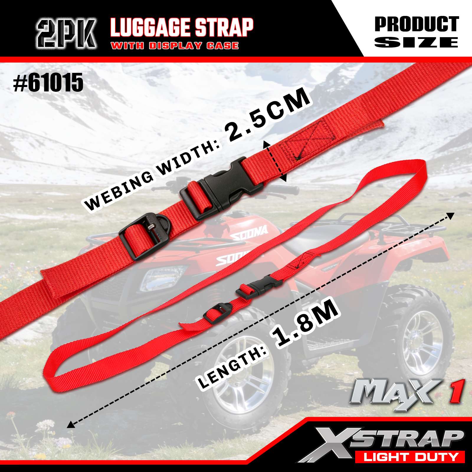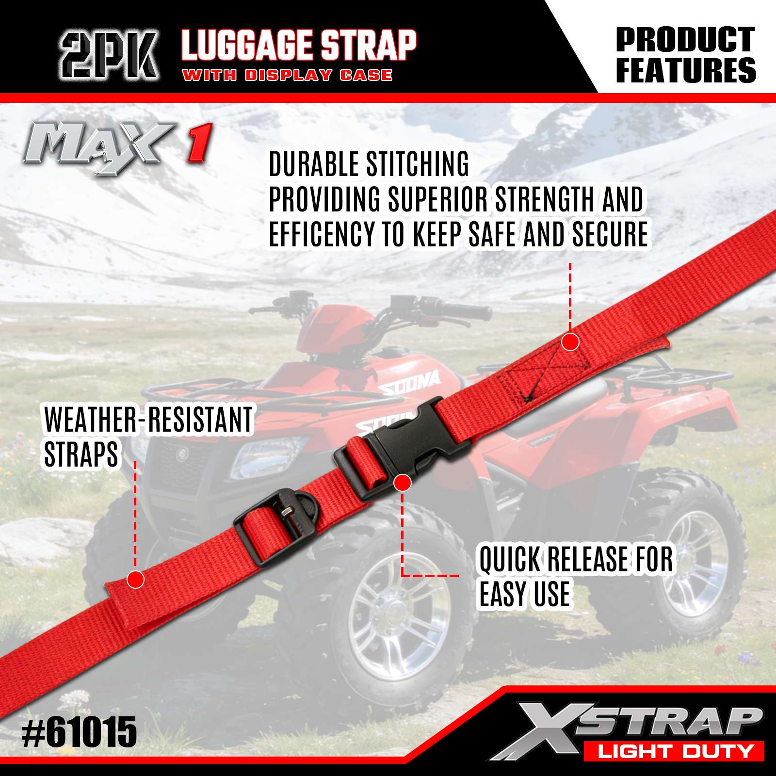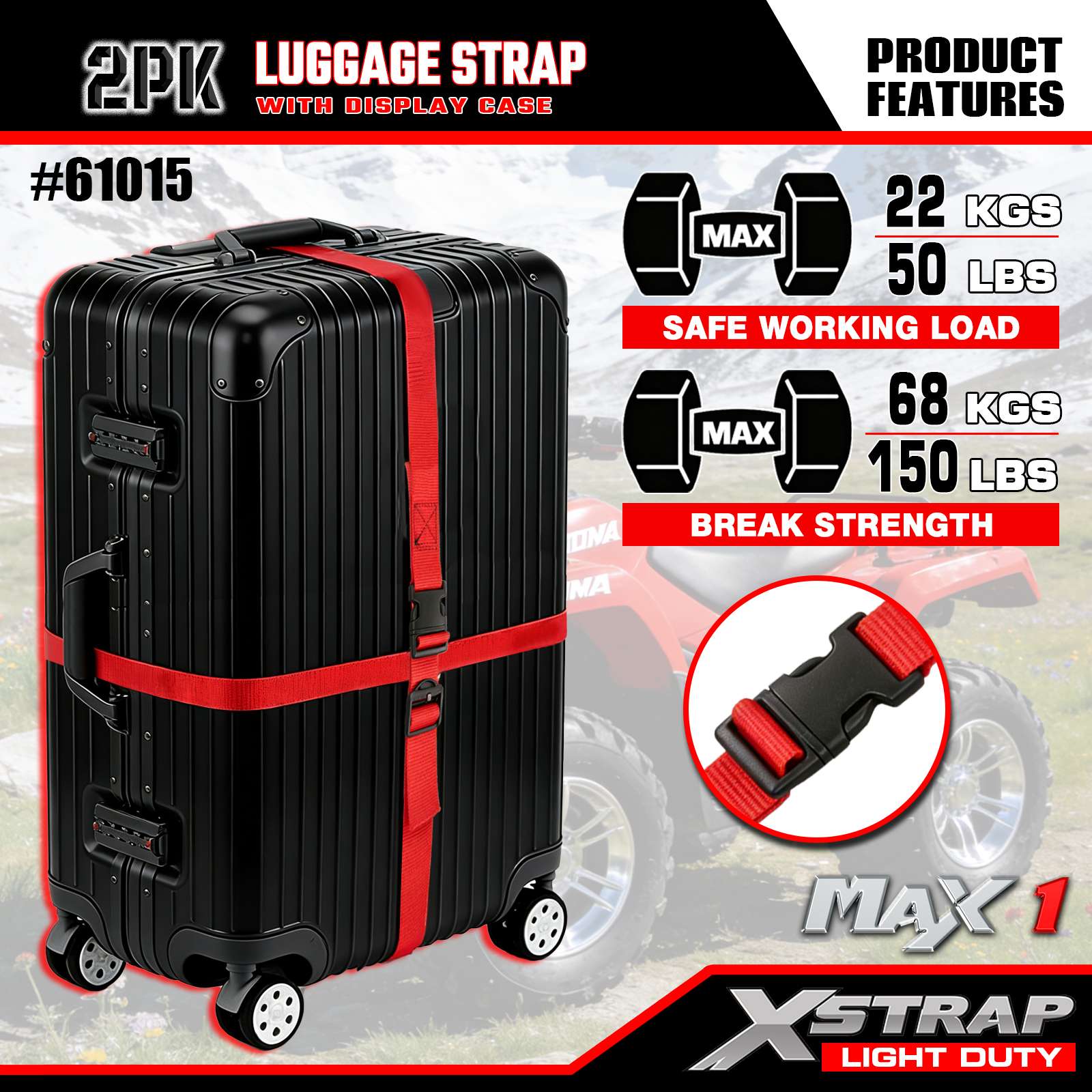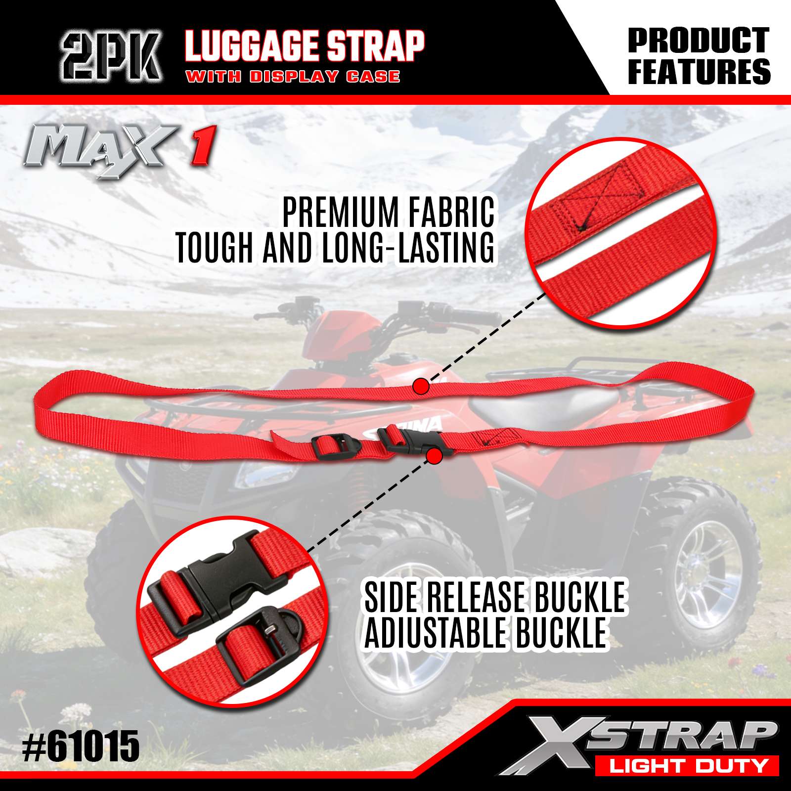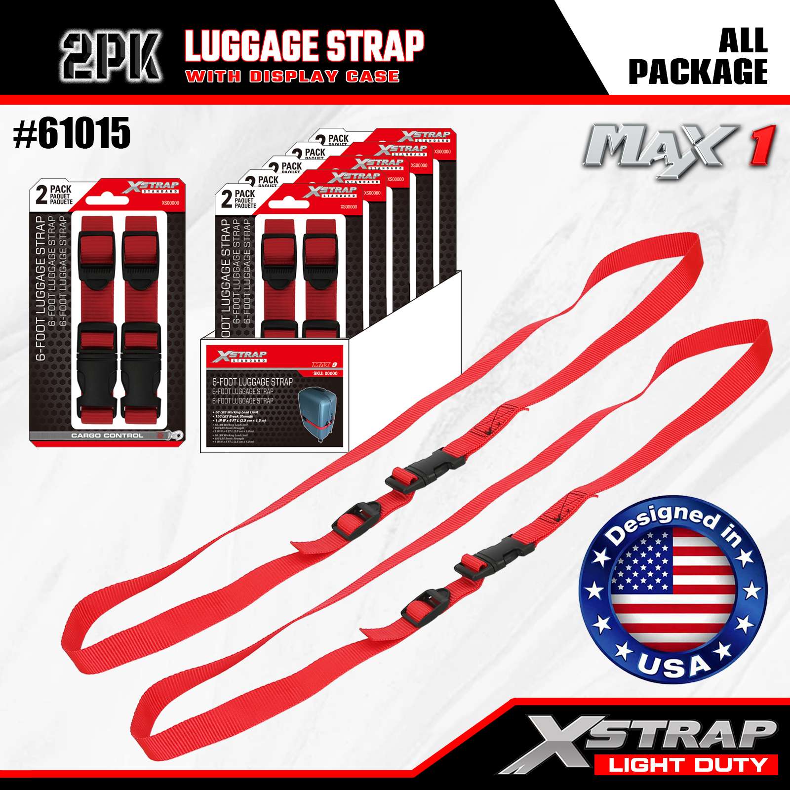 Xstrap 2 Pachet de curele pentru bagaje reglabile, 1” x 6’ - 50 lbs capac de încărcare- 150 lbs rezistență la rupere-curele de marfă pentru valize, ușor de identificat conectorul centurii de călătorie ține valiza împreună, prelungește durata de viață a genții, cureaua conectează două genți, roșu