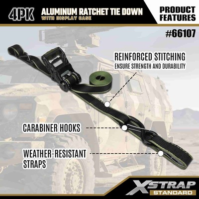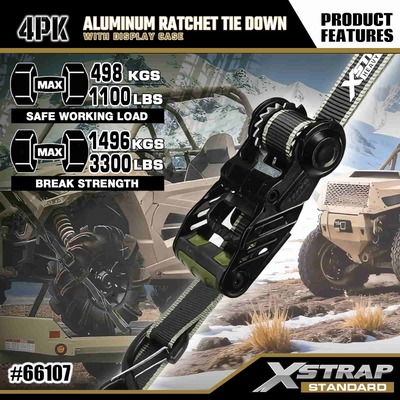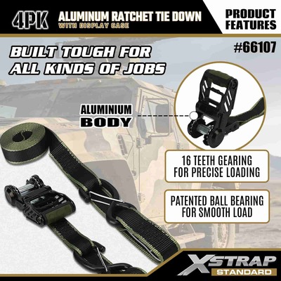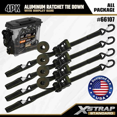 Xstrap 4 pachete de fixare cu clichet din aluminiu, curea de fixare din poliester de 1-1/4 inch x 14 pi cu cureaua de tragere cu buclă moale, curele de fixare de ancorare a încărcăturii cu o capacitate de 1000 lbs cu cârlige S de siguranță pentru controlul încărcăturii camionete, SUV, suporturi superioare auto motociclete.