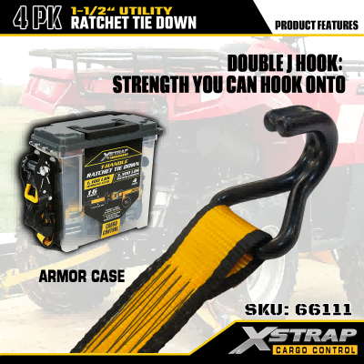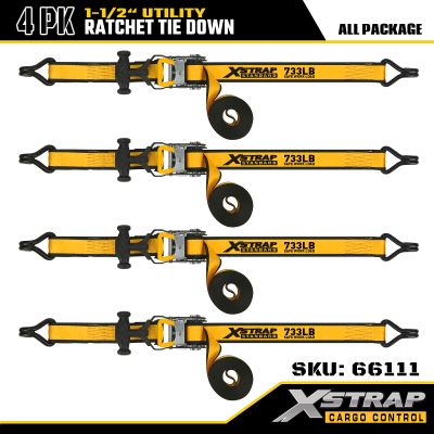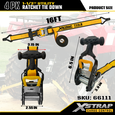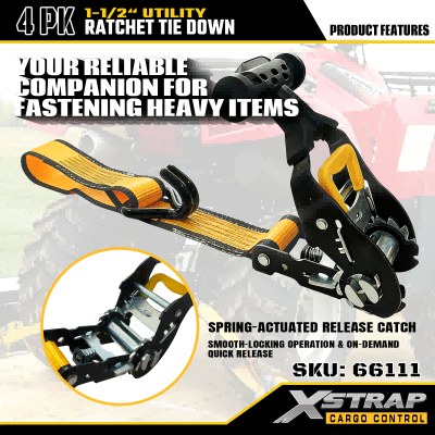 Pachet de 4 Xstrap cu mâner în T cu clichet, 1-1/2 inch x 16 pi cureaua de prindere din poliester, curea cu clichet de tragere, curele de fixare pentru ancorare de încărcătură cu o capacitate de 1100 lbs cu cârlige dublu J pentru camionetă de control al încărcăturii, SUV, suporturi superioare pentru motociclete.