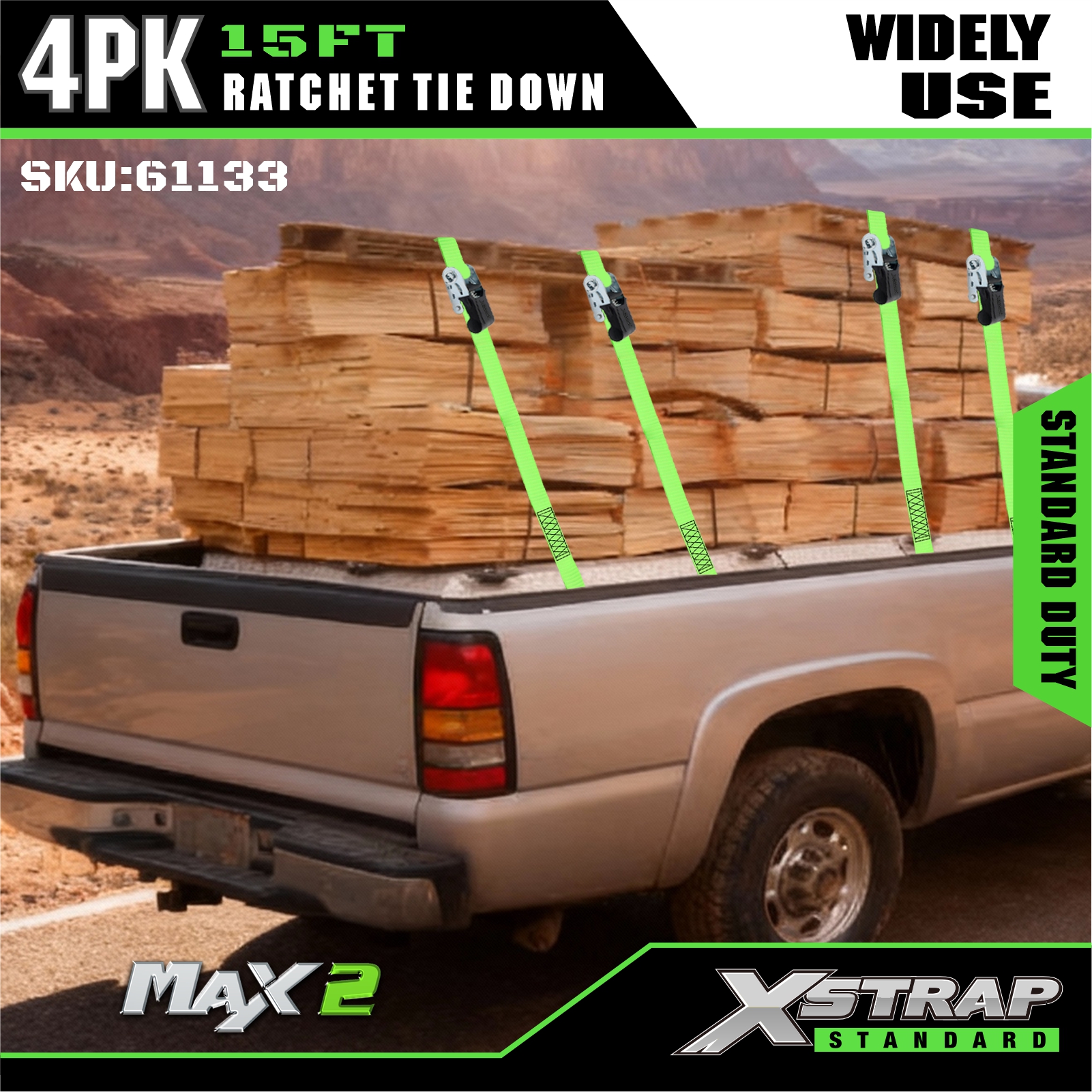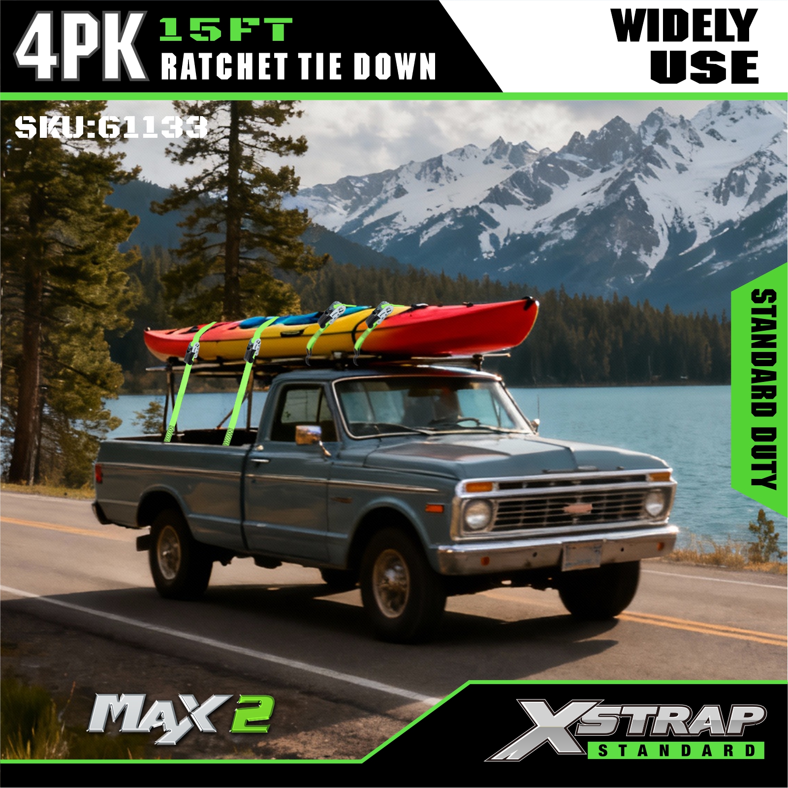 - Etichetare clară a capacității de încărcare: fiecare legare este marcată în mod clar cu o sarcină de lucru sigură de 227 kg / 500 lbs (SWL) și rezistență la rupere de 680 kg / 1500 lbs, oferind îndrumări simple de siguranță pentru a asigura o sarcină adecvată și fără riscuri.