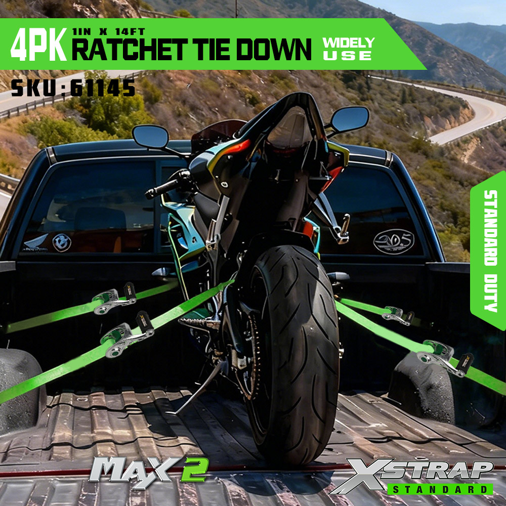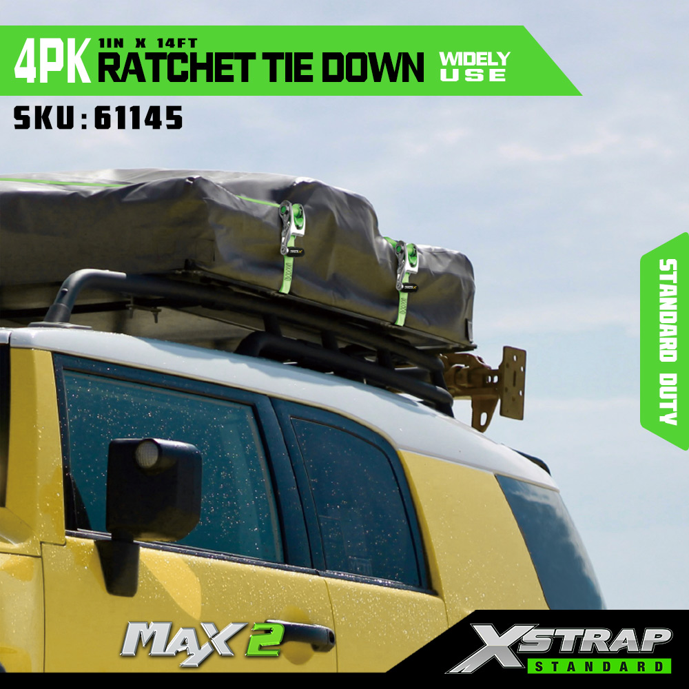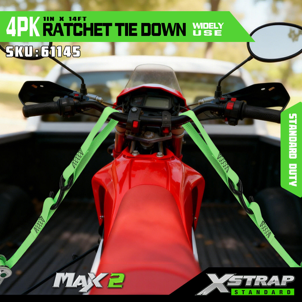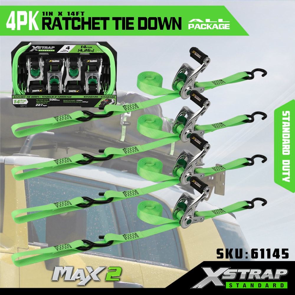 Xstrap 4 pachete de prindere cu clichet cu buclă moale, curea de prindere din poliester de 1 inch x 14 pi Curea cu clichet de tragere, curele de fixare pentru încărcătură cu o capacitate de 1000 lbs cu cârlige în S pentru camion, SUV, rafturi superioare auto motociclete.