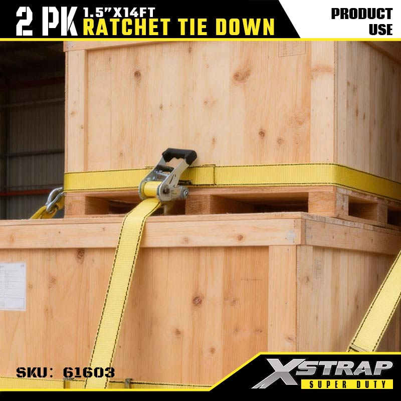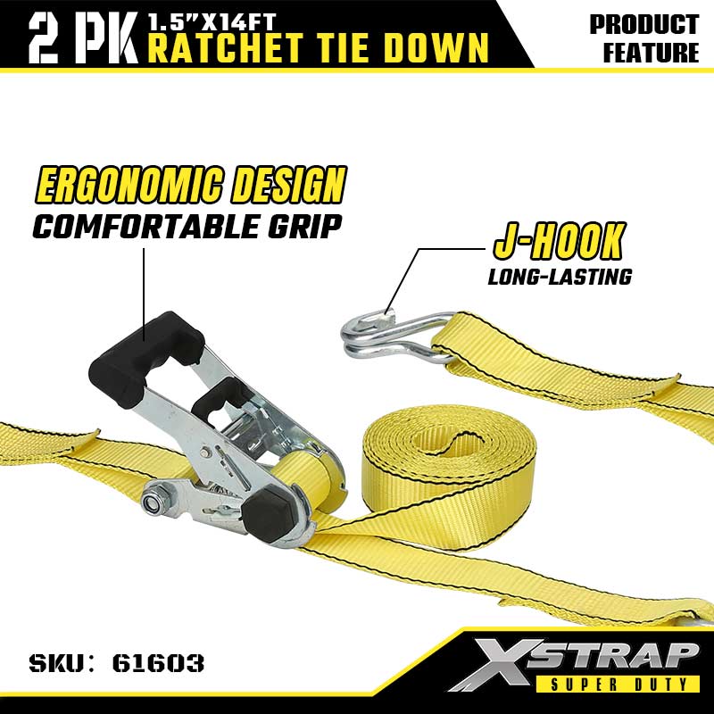 - Curele din nailon cu rezistență ridicată (5000LBS rezistență la rupere): Construită cu curele din nailon galben de înaltă rezistență (lățime de 1,5 inchi) - oferă o rezistență excepțională la tracțiune (sarcina la rupere de 5000LBS) și rezistență la abraziune, ideală pentru transport greu sau sarcini industriale de fixare.l
