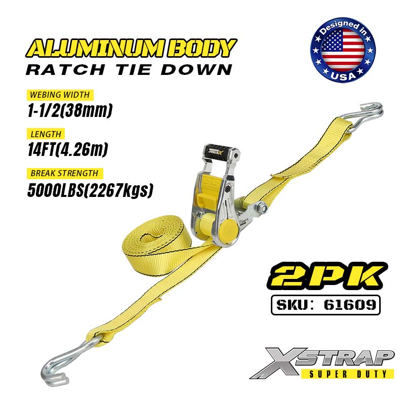 - Pachet de 2 14FT Dimensiune: lățimea de 1,5 inchi împrăștie tensiunea uniform pentru a evita deteriorarea. Lungimea de 14 picioare se potrivește cu remorci de paturi de camioane sau portbagaj de acoperiș. Pachetul de 2 vă oferă suficiente curele pentru a asigura echipamentul mare sau neregulat.