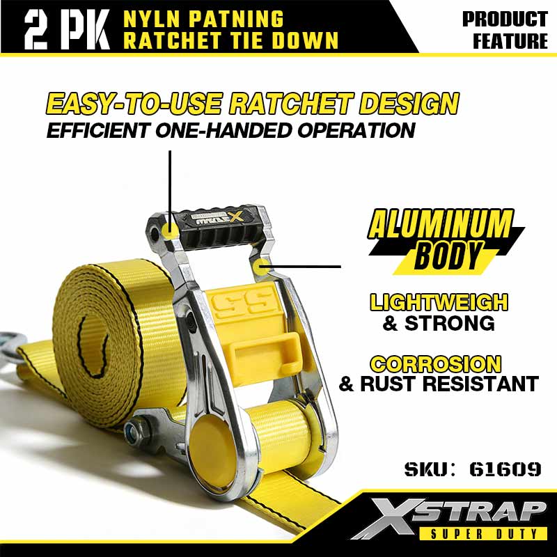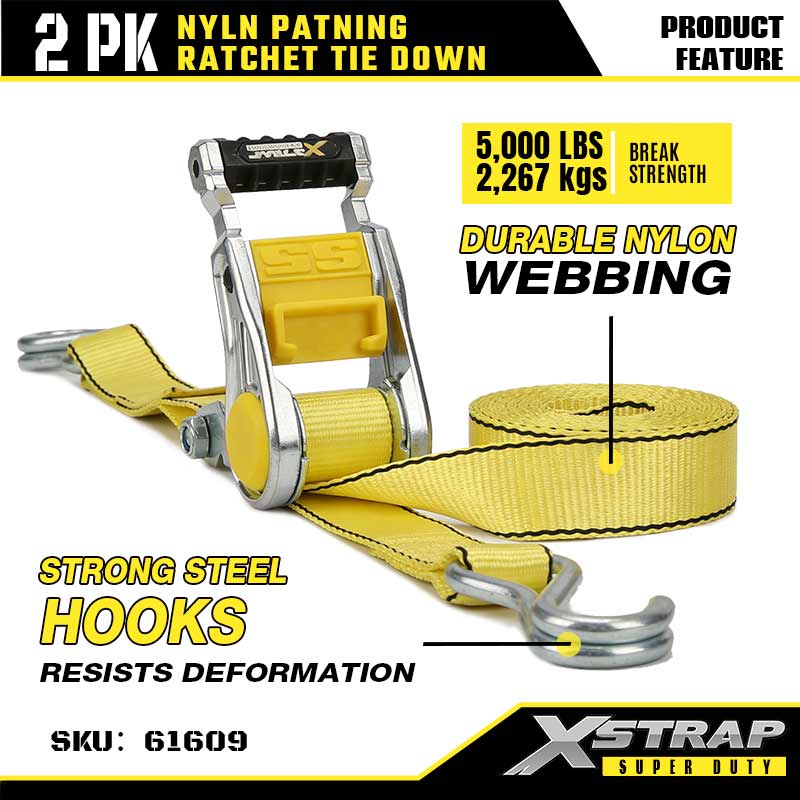 Xstrap 2PK cu cârlige dublu J, 2” x 3,6 pi curea din poliester cu clichet, capacitate de 1667 lbs Curele de fixare pentru ancorare pentru încărcătură cu cârlige dublu J pentru remorcă rezistentă, remorcă cu pat plat, barcă de schi, mașină mică, echipament greu.