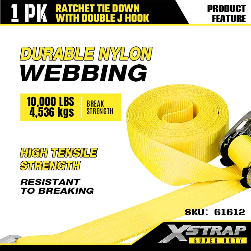 - Cenile de nailon de înaltă rezistență: chinga de nailon lățime de 2 inchi folosește cusături întărite pentru a rezista la uzură și întindere. Are o rezistență la rupere de 10.000 LBS, astfel încât poate face față echipamentelor grele și încărcăturii supradimensionate.
