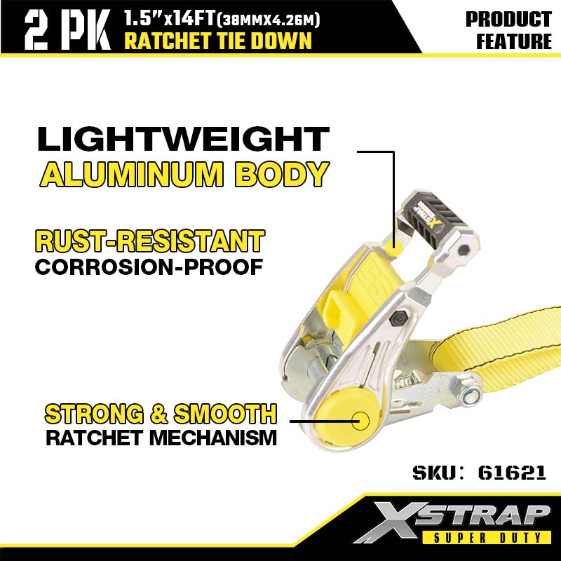 - Clichet ergonomic din aluminiu: Corpul din aluminiu rezistent la rugină menține clichetul ușor și ușor de manevrat, în timp ce mecanismul neted vă permite să tensionați și să blocați sarcinile în câteva secunde cu o singură mână. Nu mai efortați pentru a obține o strânsă strânsă — chiar și utilizatorii noi îl pot stăpâni de la prima încercare.