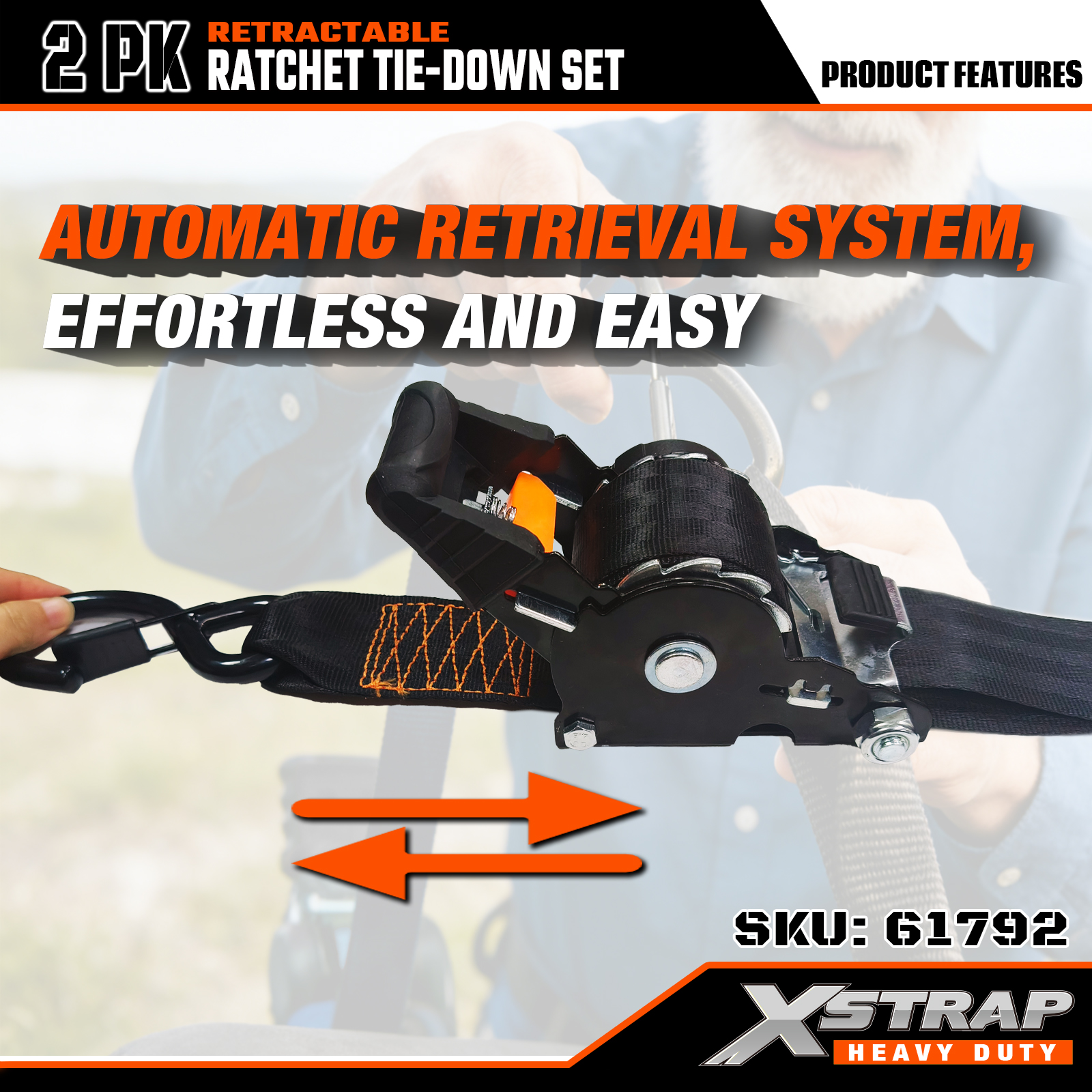 - Retragere automată cu un singur clic: V-ați săturat de curele dezordonate și încurcate? Sistemul de retractare automată trage excesul de cureaua înapoi în carcasă cu un singur clic - rapid, îngrijit și perfect pentru șantierele aglomerate sau călătoriile rapide de weekend.